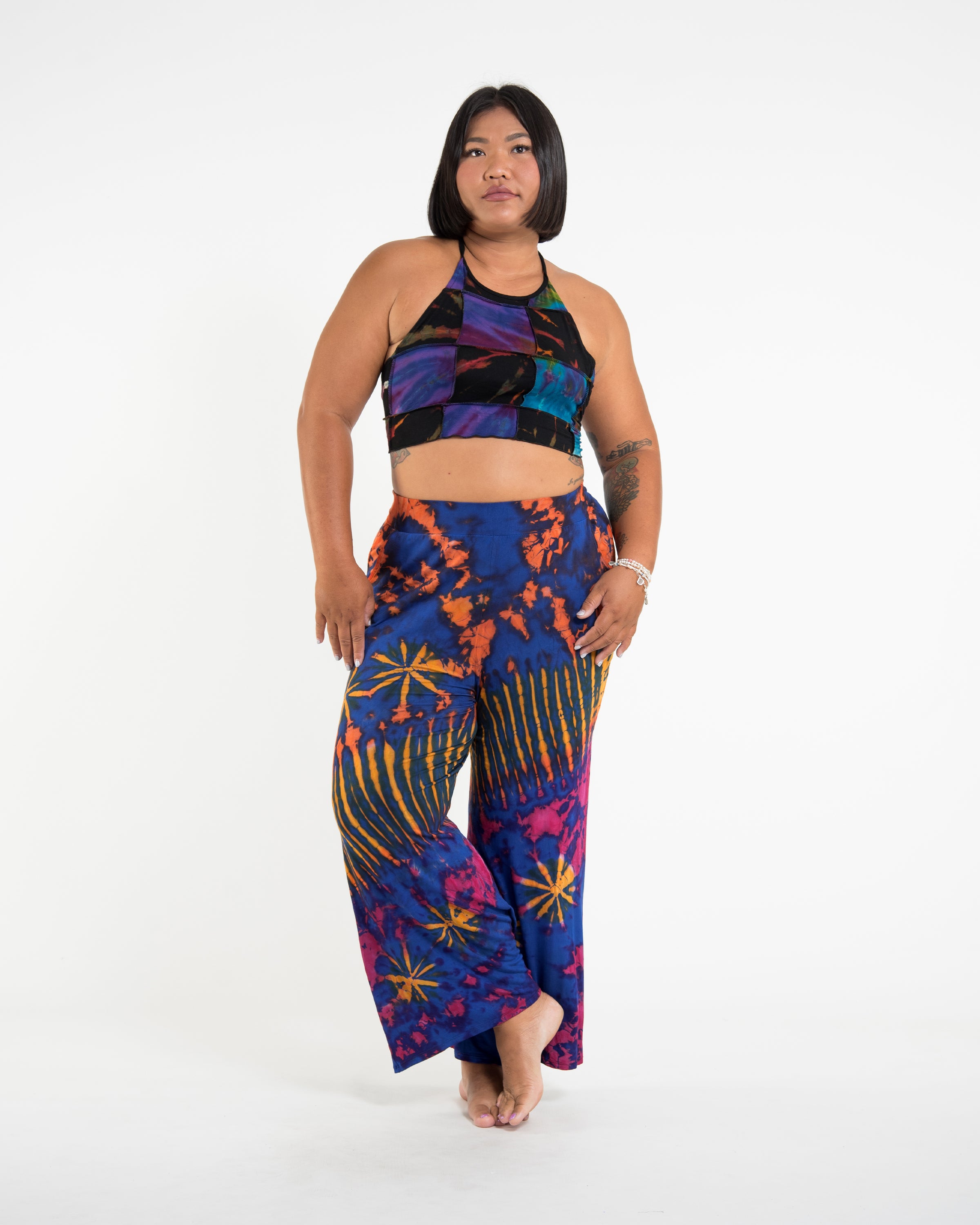 Tie Dye Wide Leg Palazzo Harem Pants Cotton in Royal Blue