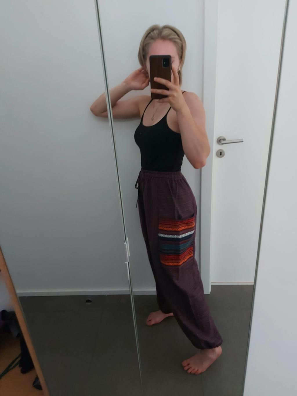 These pants are sooo beautiful, I love the colour and the pockets are very pretty! Fits just fine :)