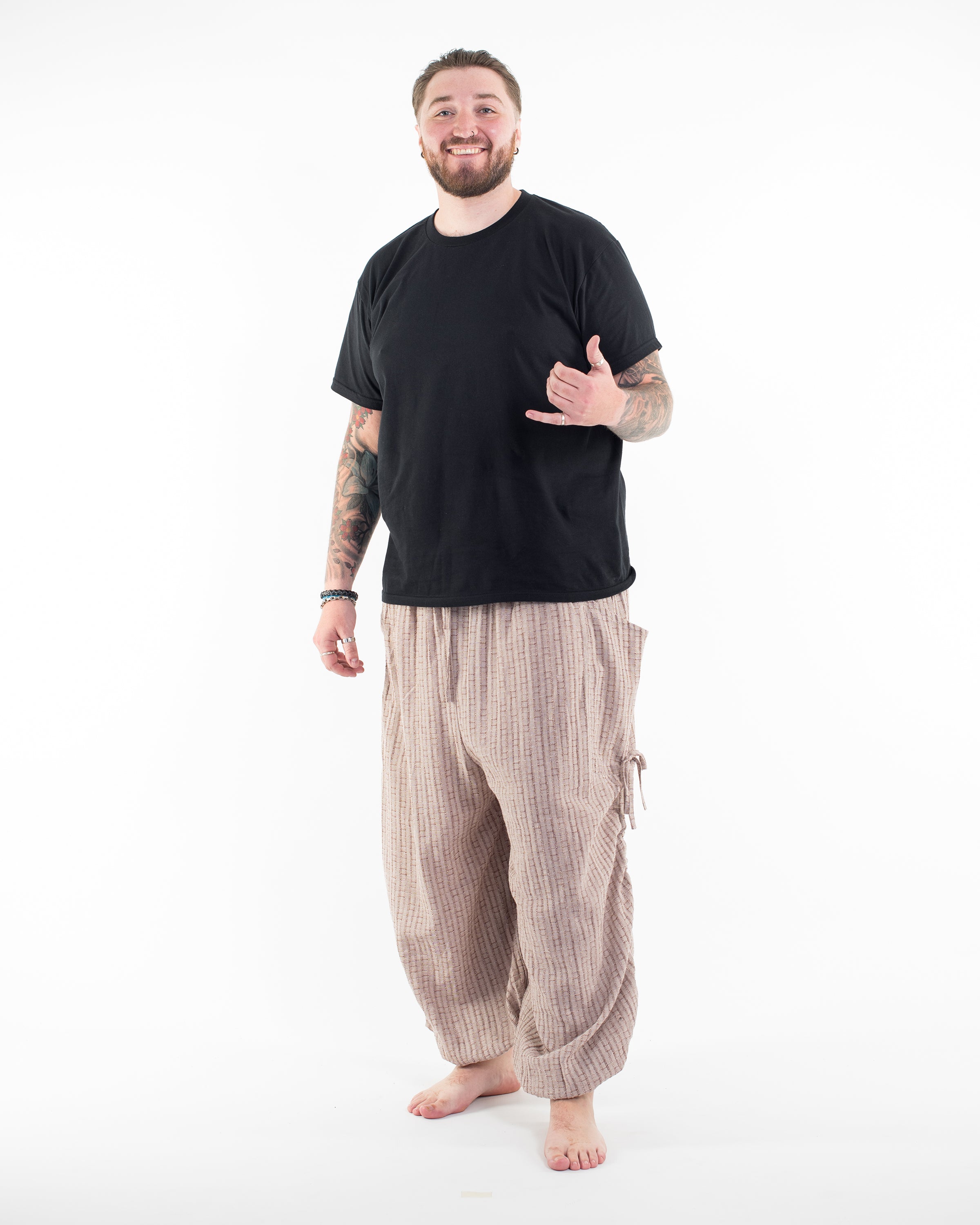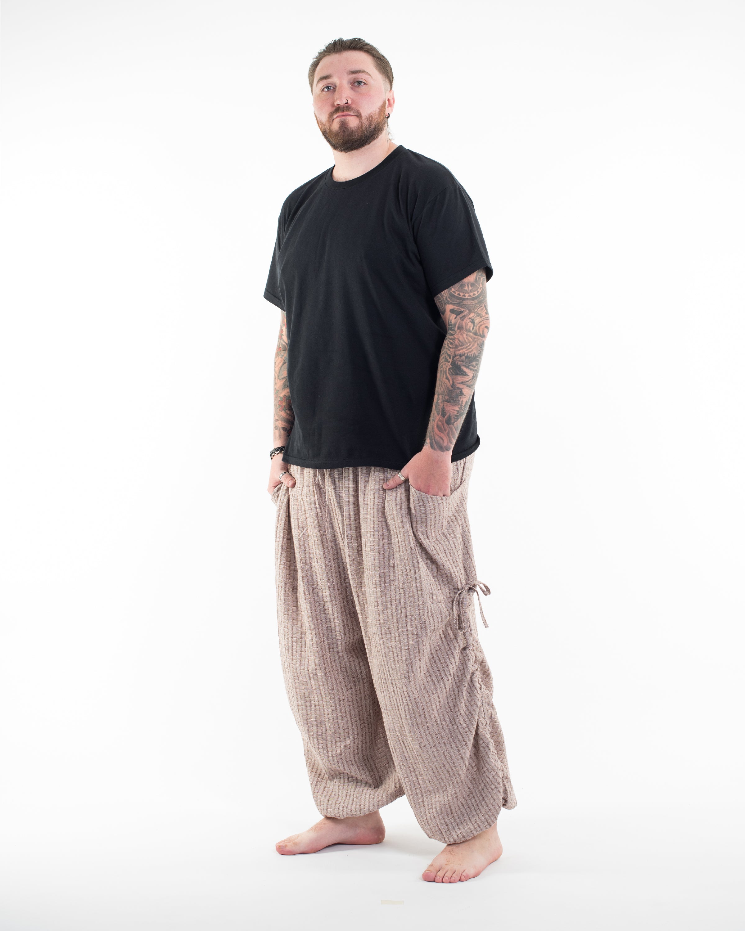 Perfectly handcrafted Tencel Cotton Blend pants made with a perfect fabric blend cotton fabric. The delicate ribbed woven pattern gives the pants a unique look and feel. Maximum comfort with elastic drawstring waist and 2 large side-pockets.