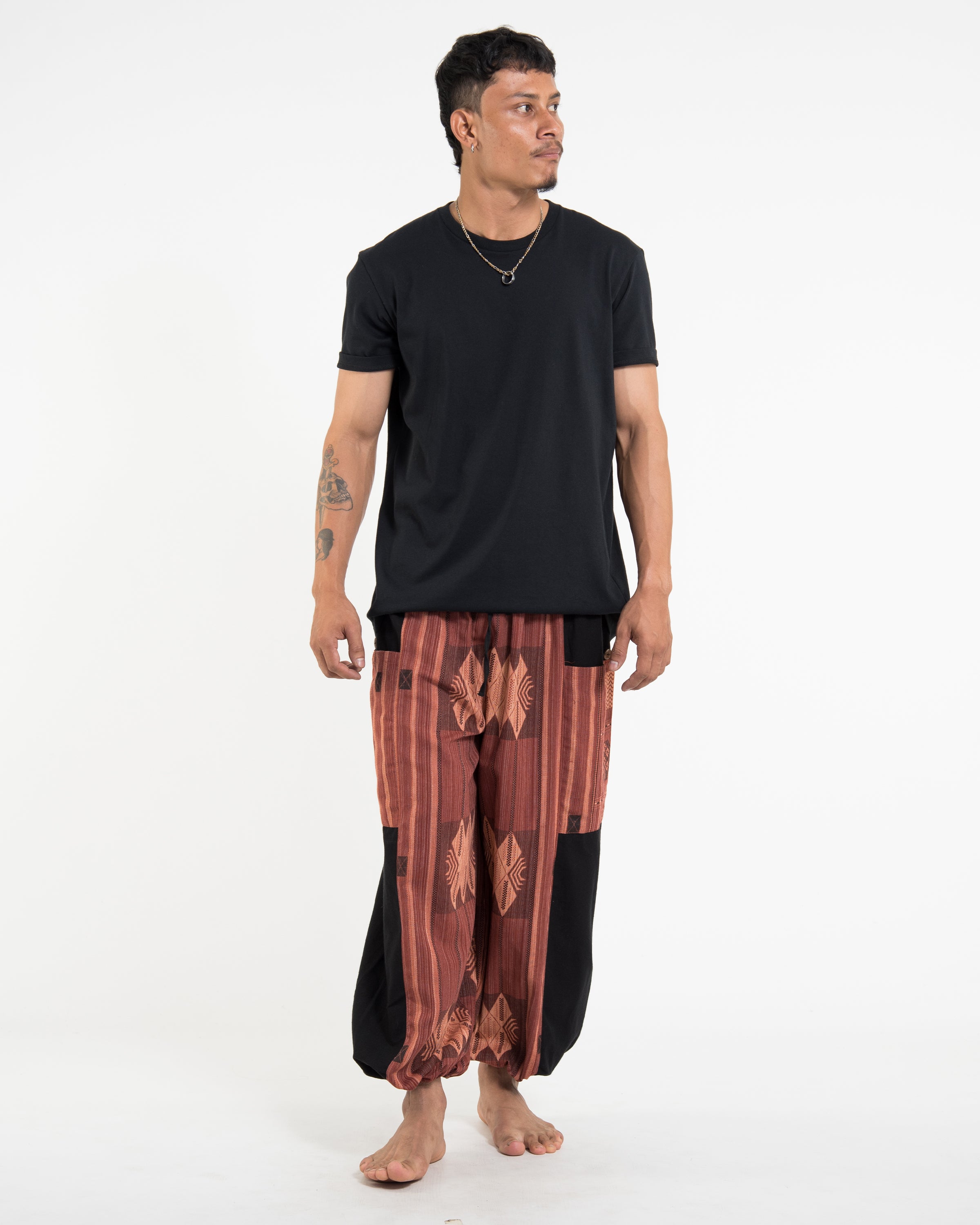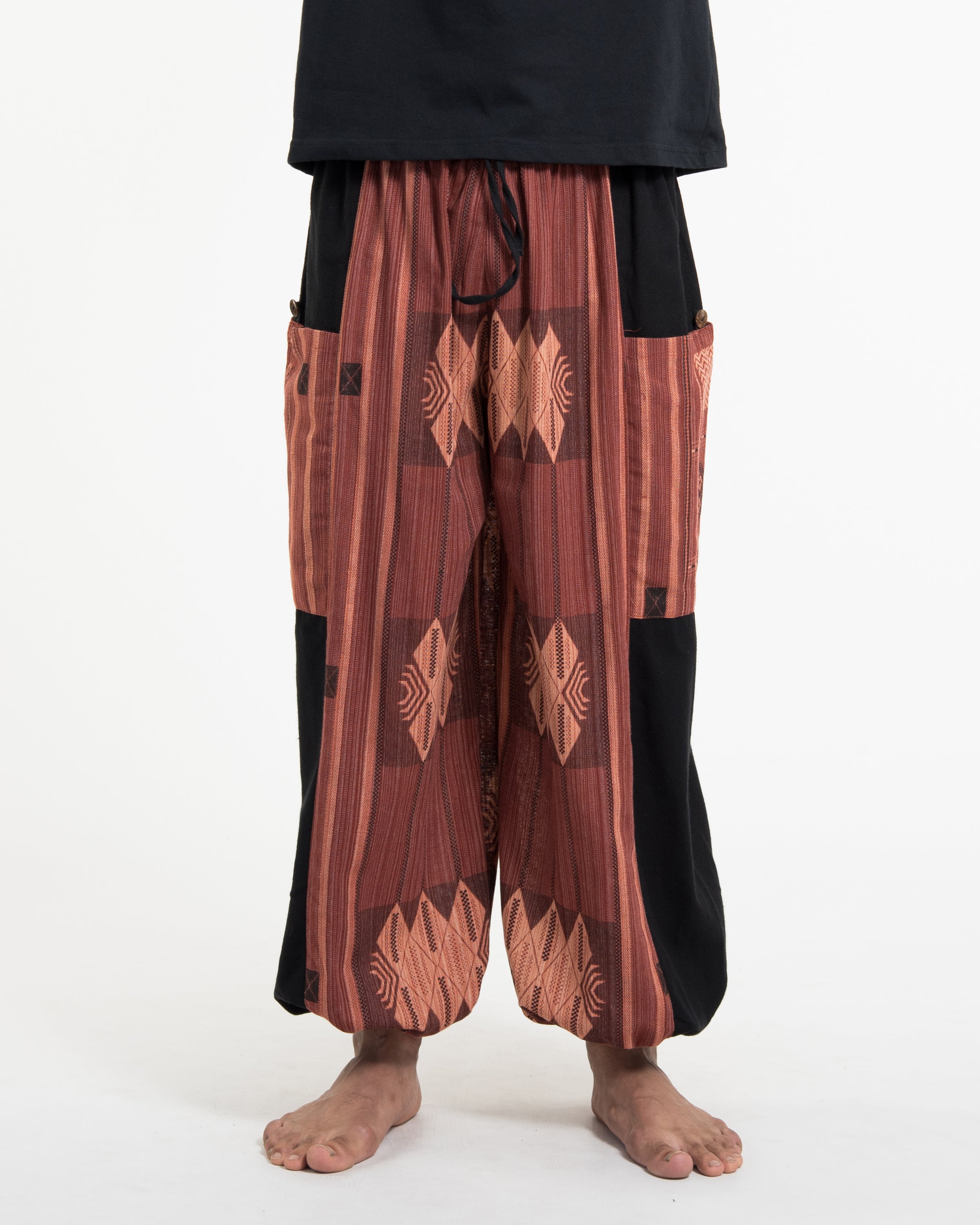 Two Tone Thai Hill Tribe Fabric Men's Cotton Pants in Brick