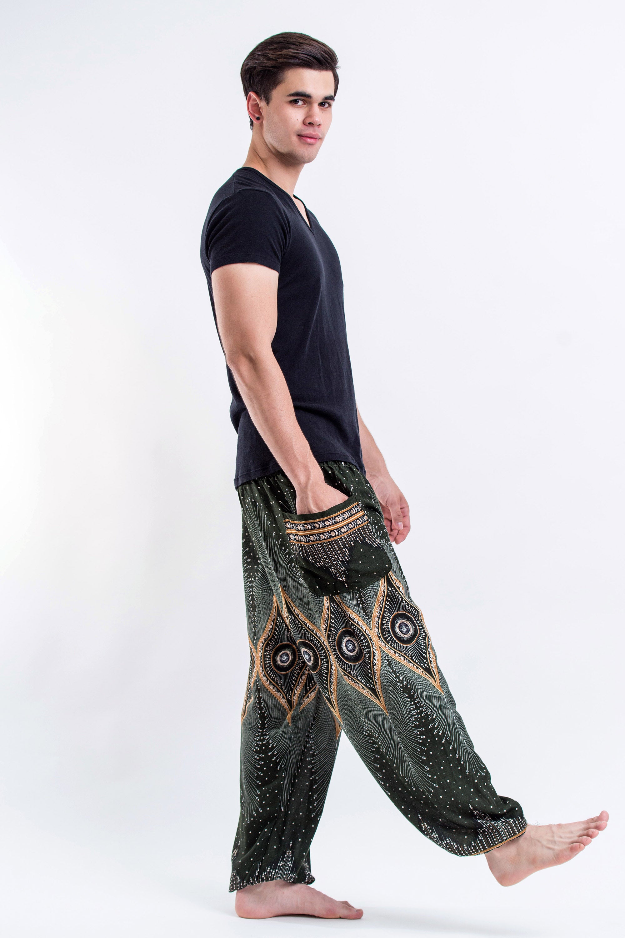 Diamond Peacock Men's Harem Pants in Green