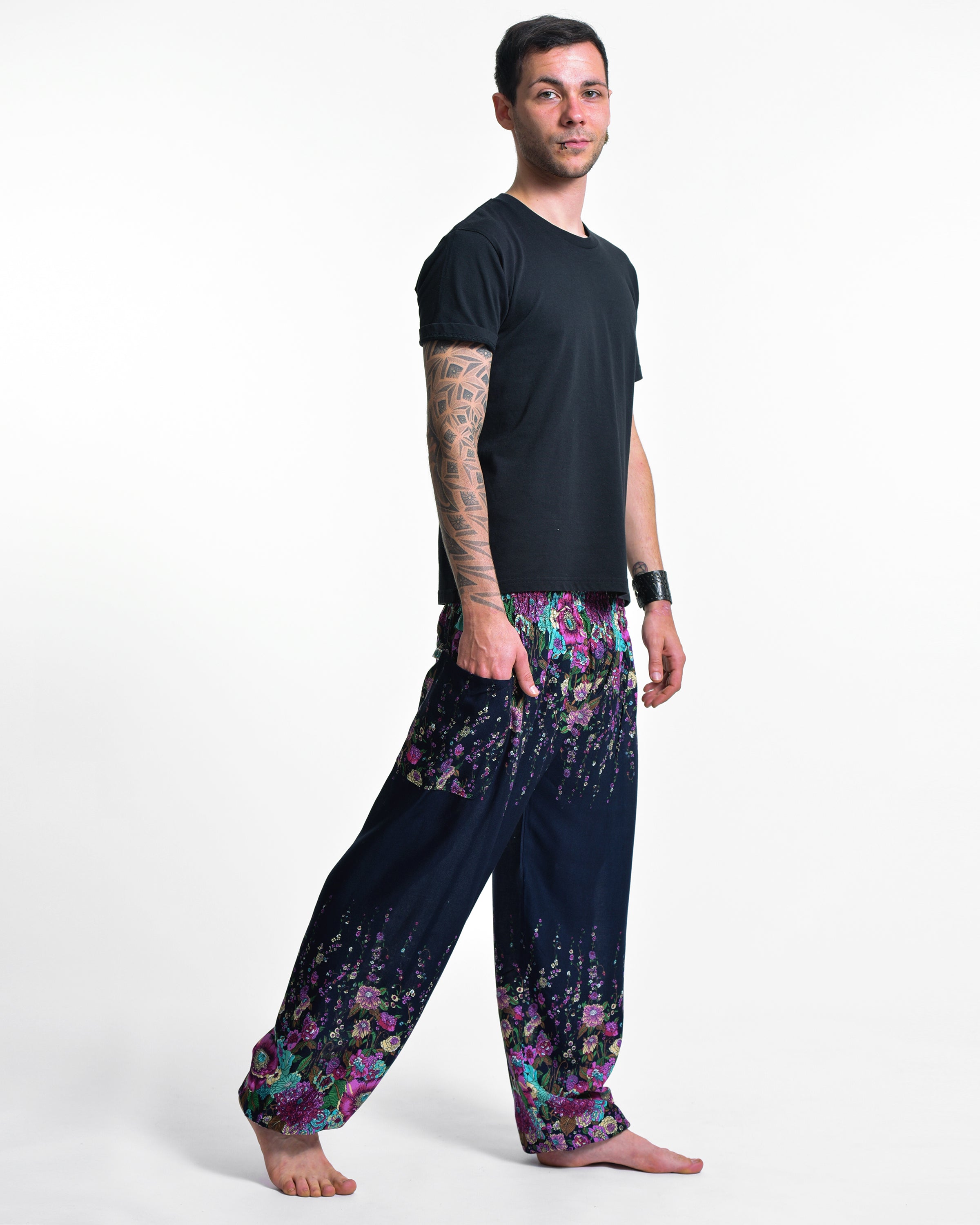 All these high cut gender neutral harem pants have comfy smocked waist and one side-pocket.