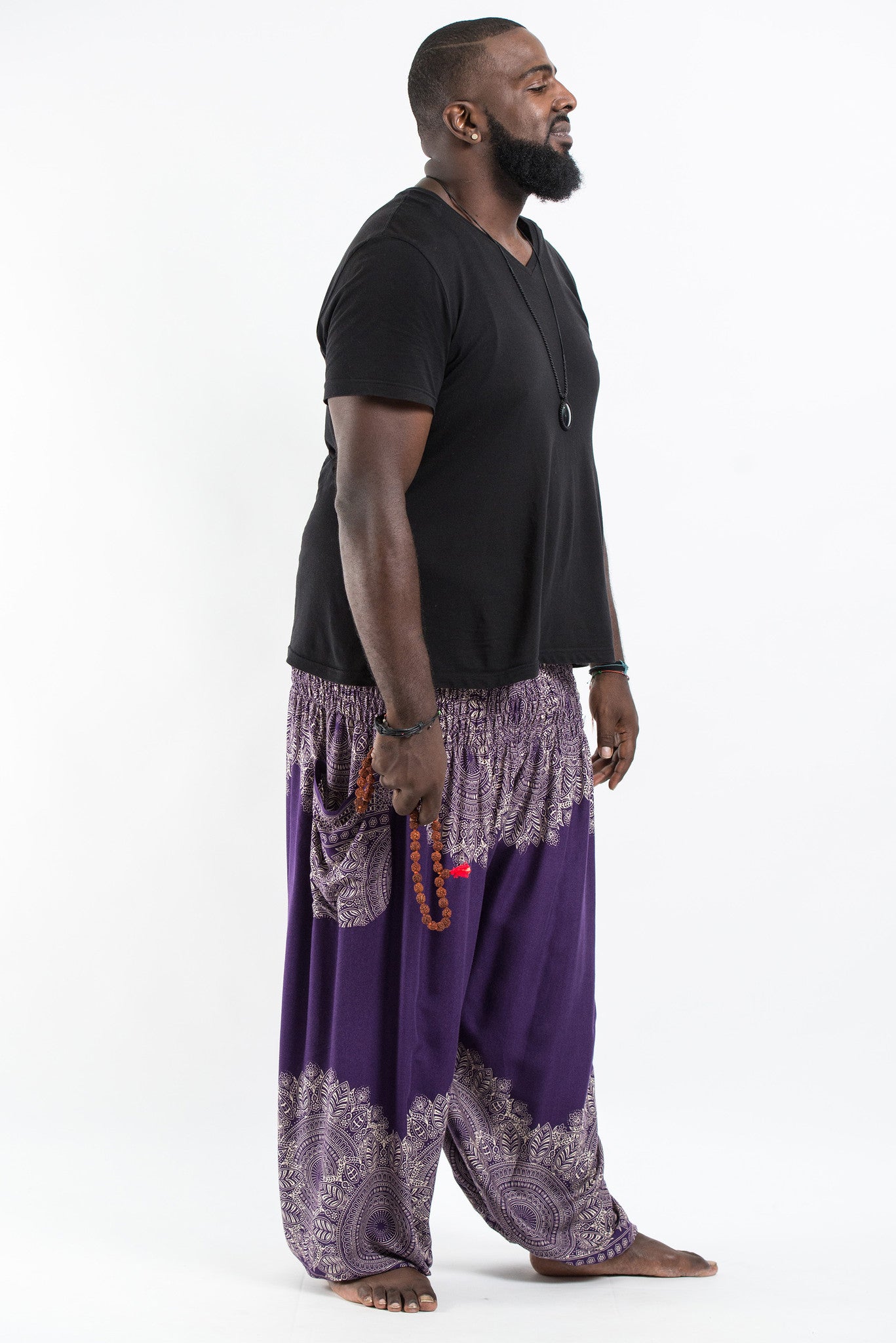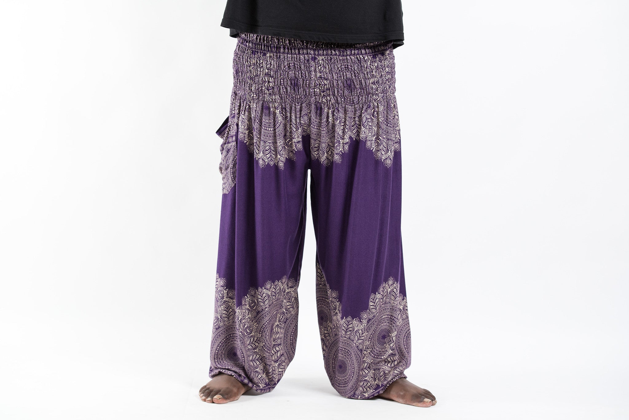 Plus Size Floral Mandalas Men's Harem Pants in Purple