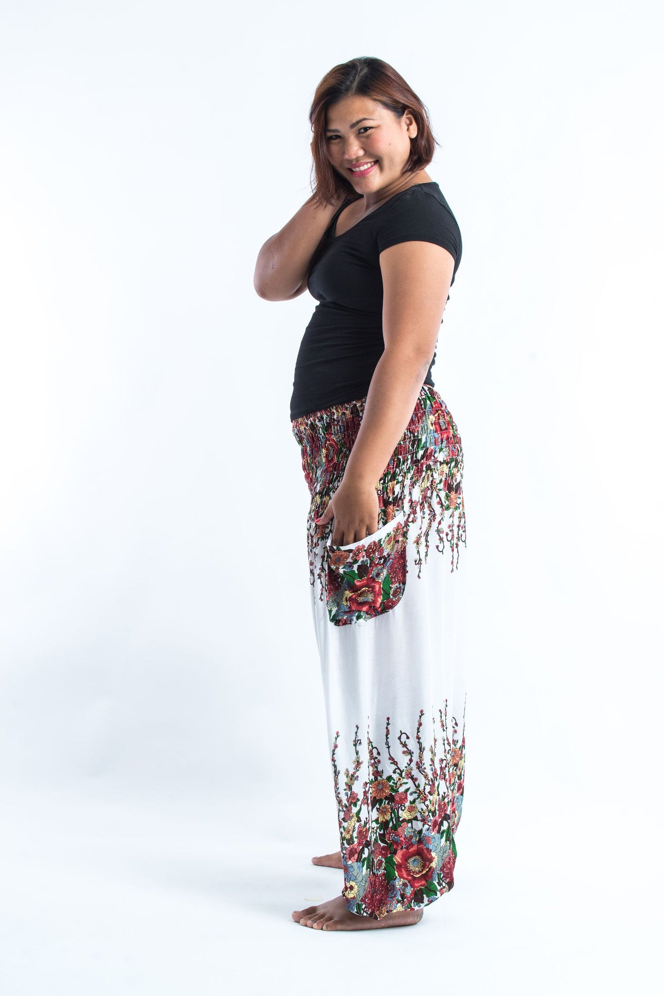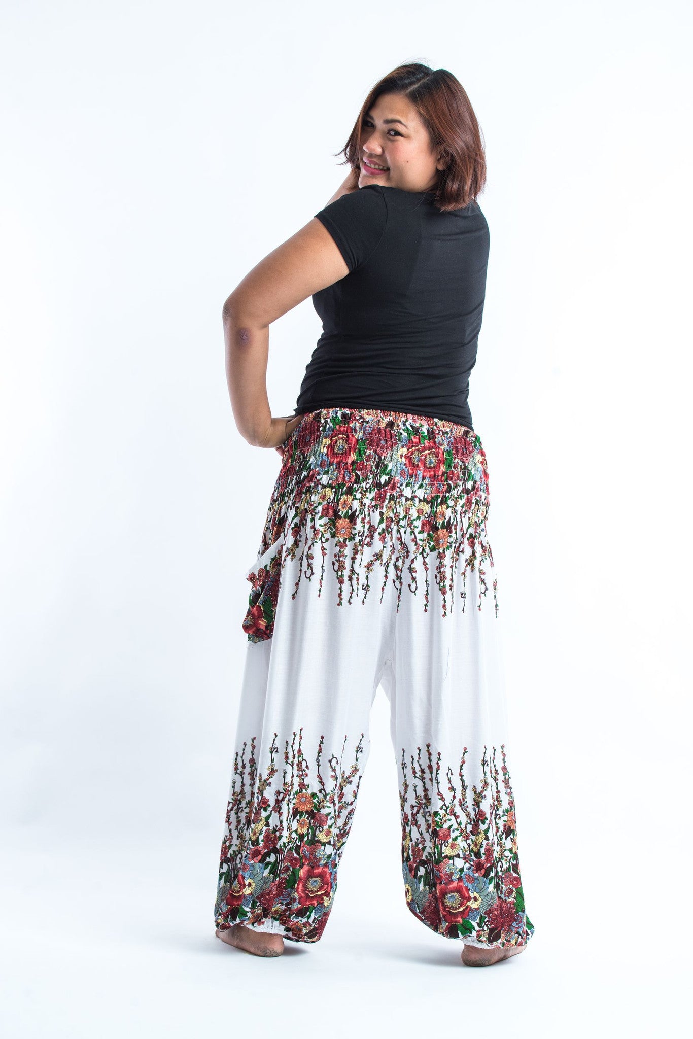 Plus Size Floral Women's Harem Pants in White