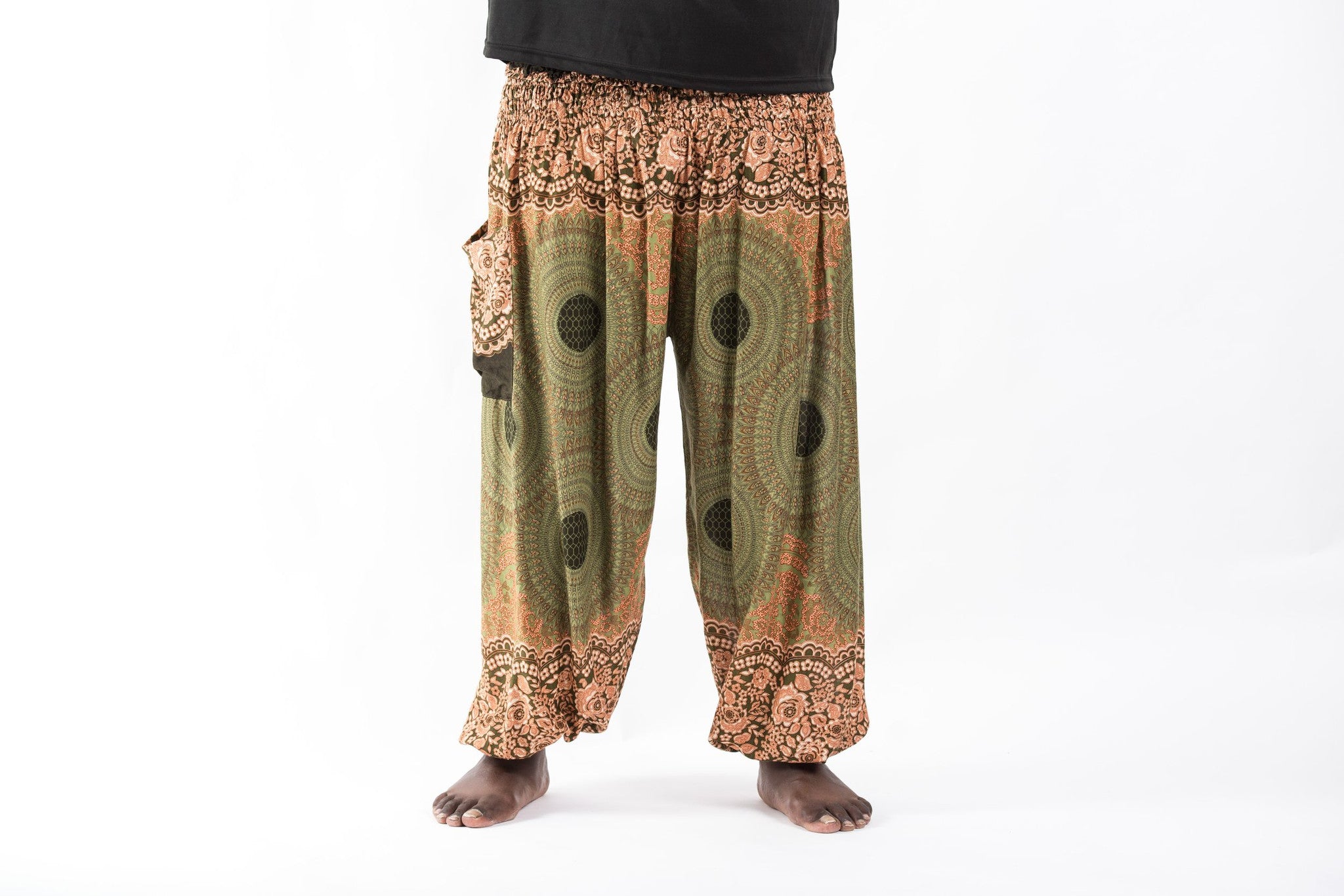 Plus Size Geometric Mandalas Men's Harem Pants in Olive