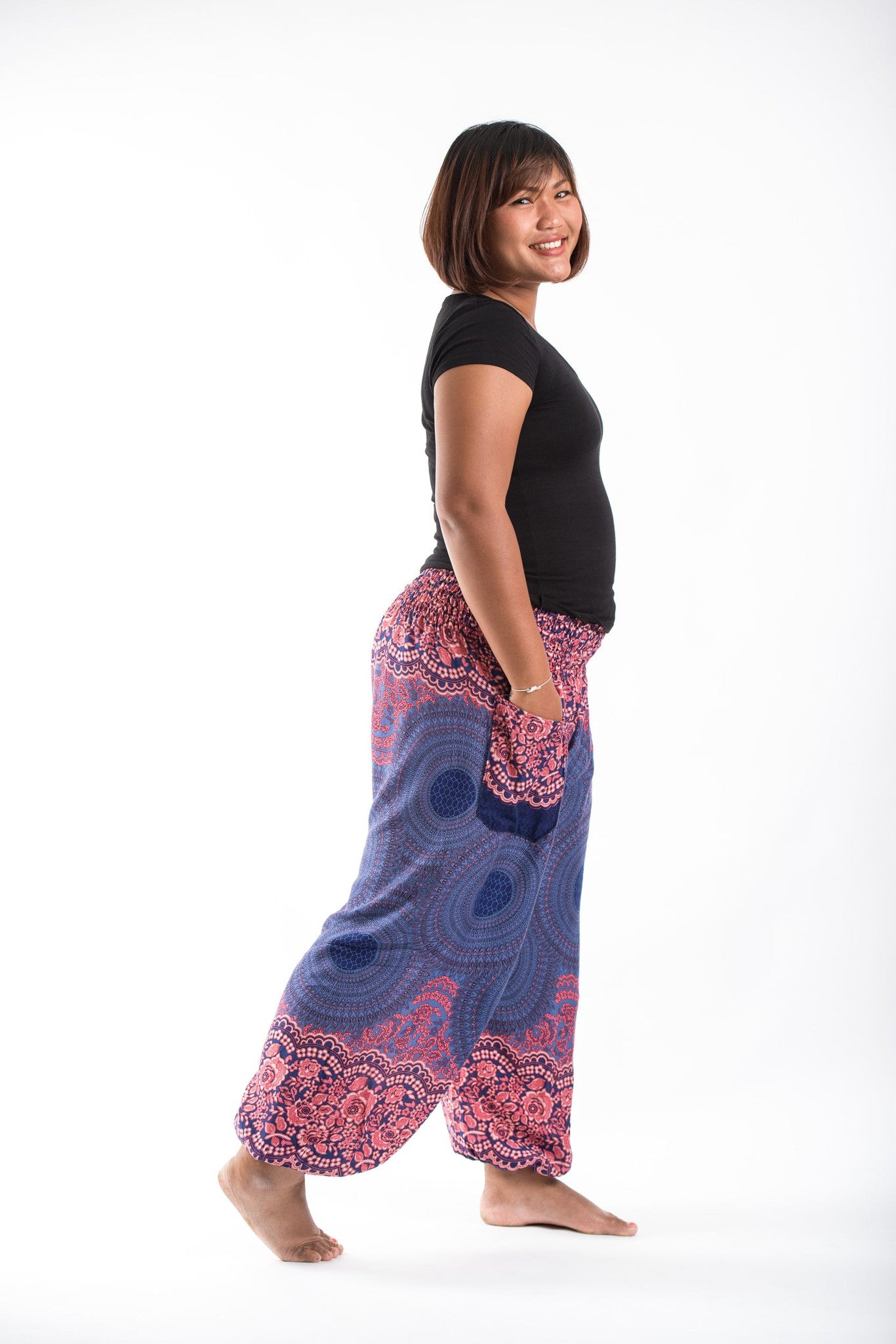Plus Size Geometric Mandalas Women's Harem Pants in Blue