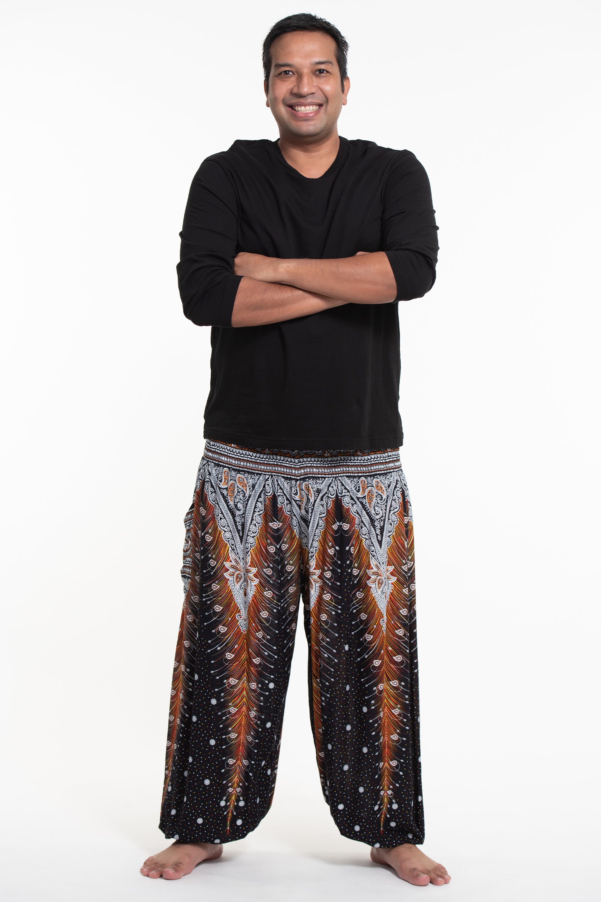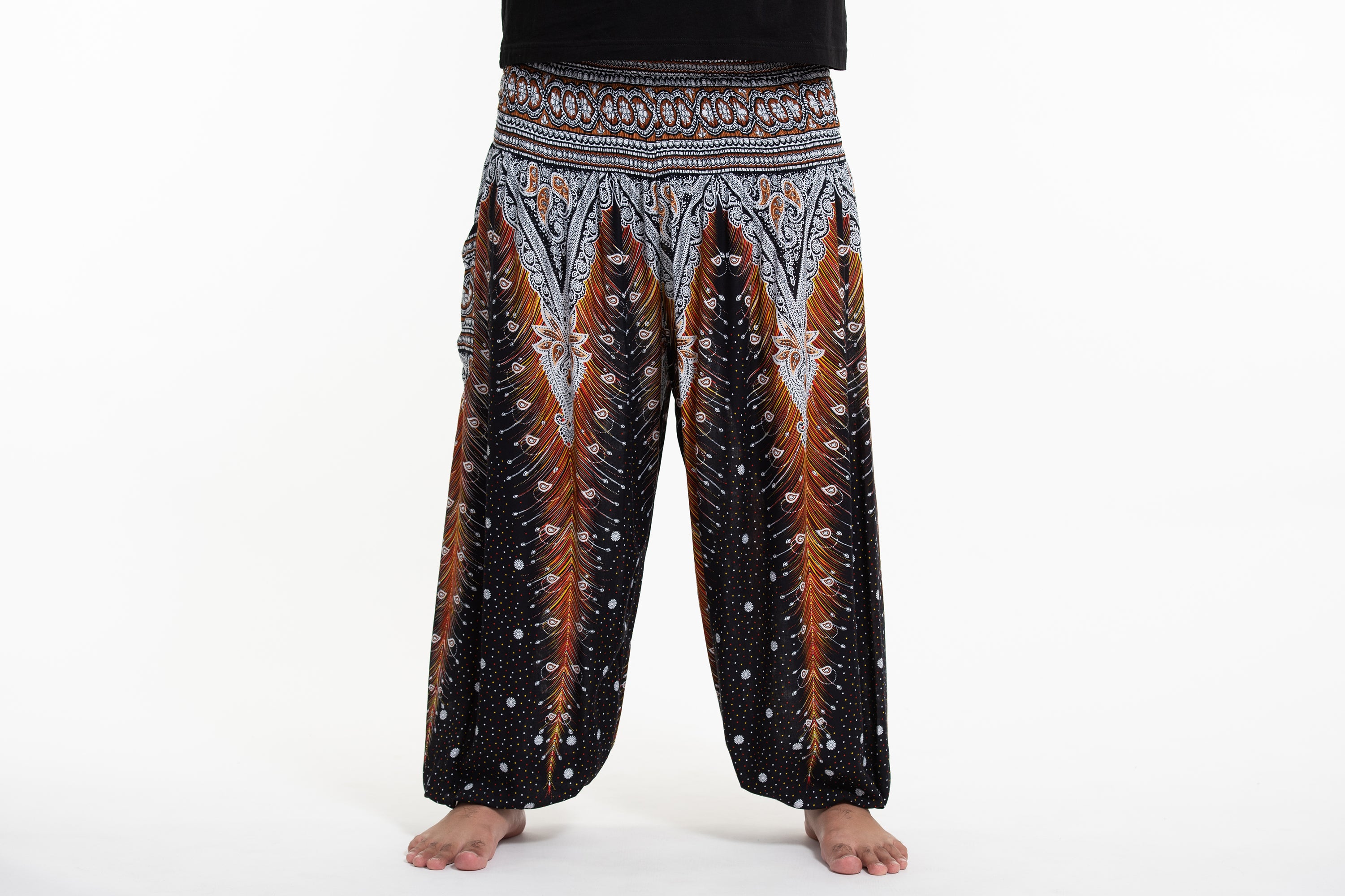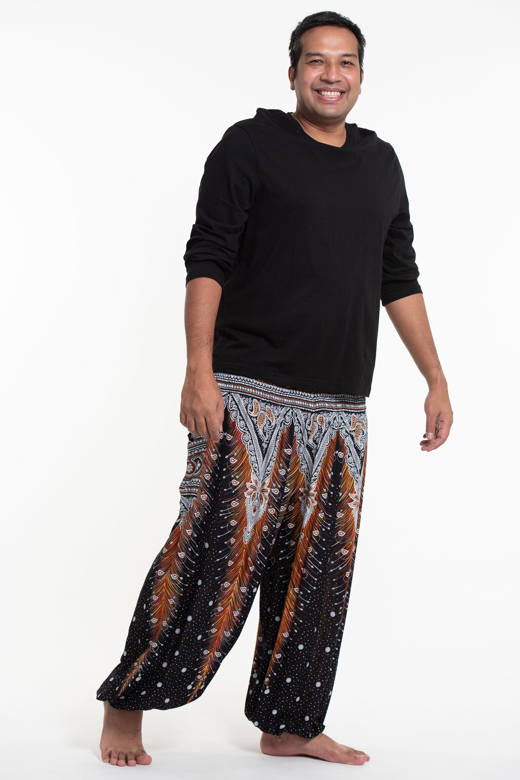 Plus Size Peacock Feathers Men's Harem Pants in Black