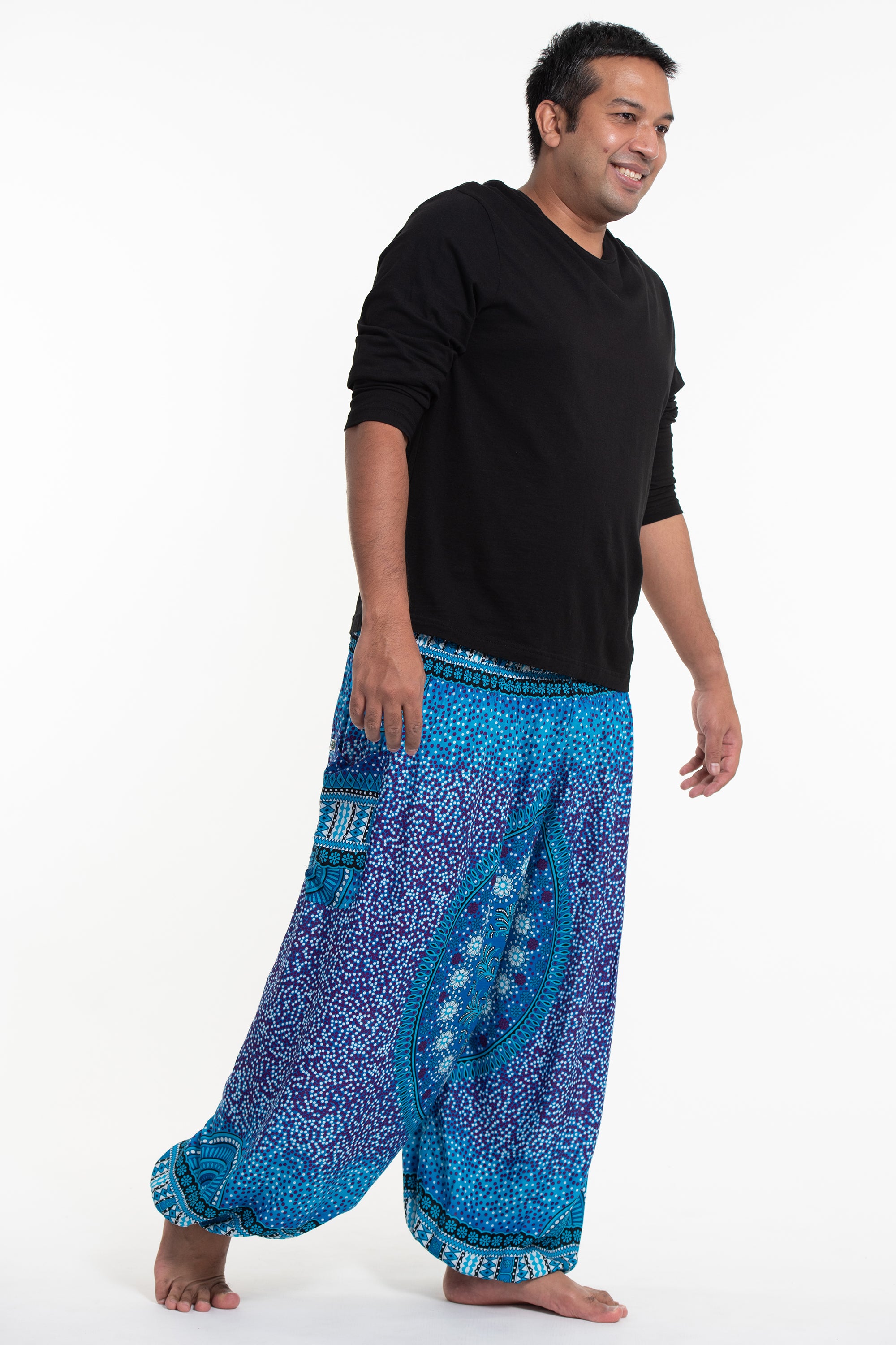 Plus Size Tribal Chakras Men's Harem Pants in Blue