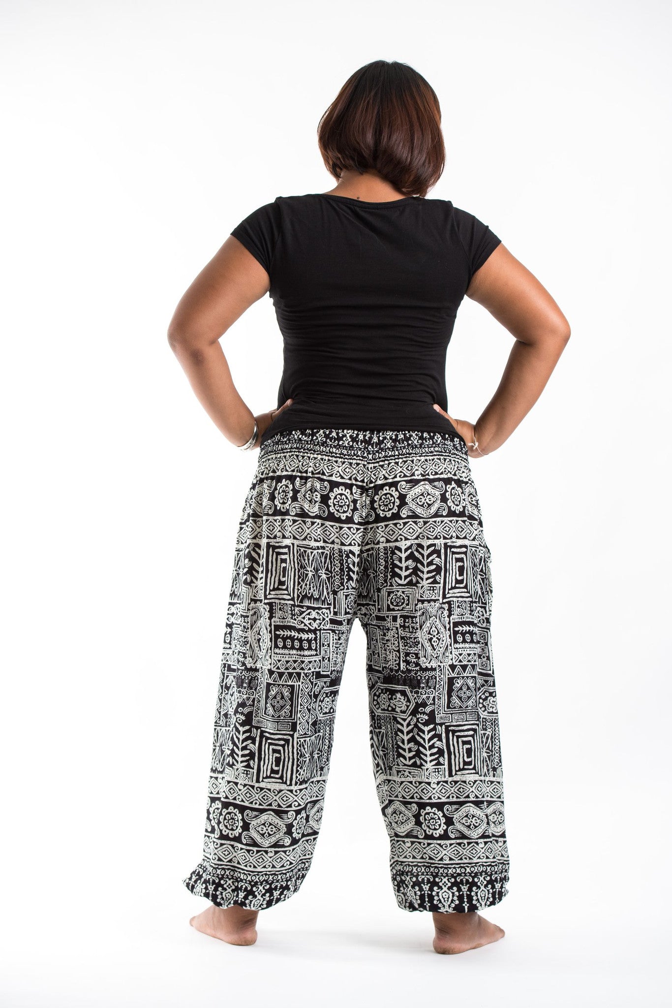 Plus Size Tribal Prints Women's Harem Pants in Black