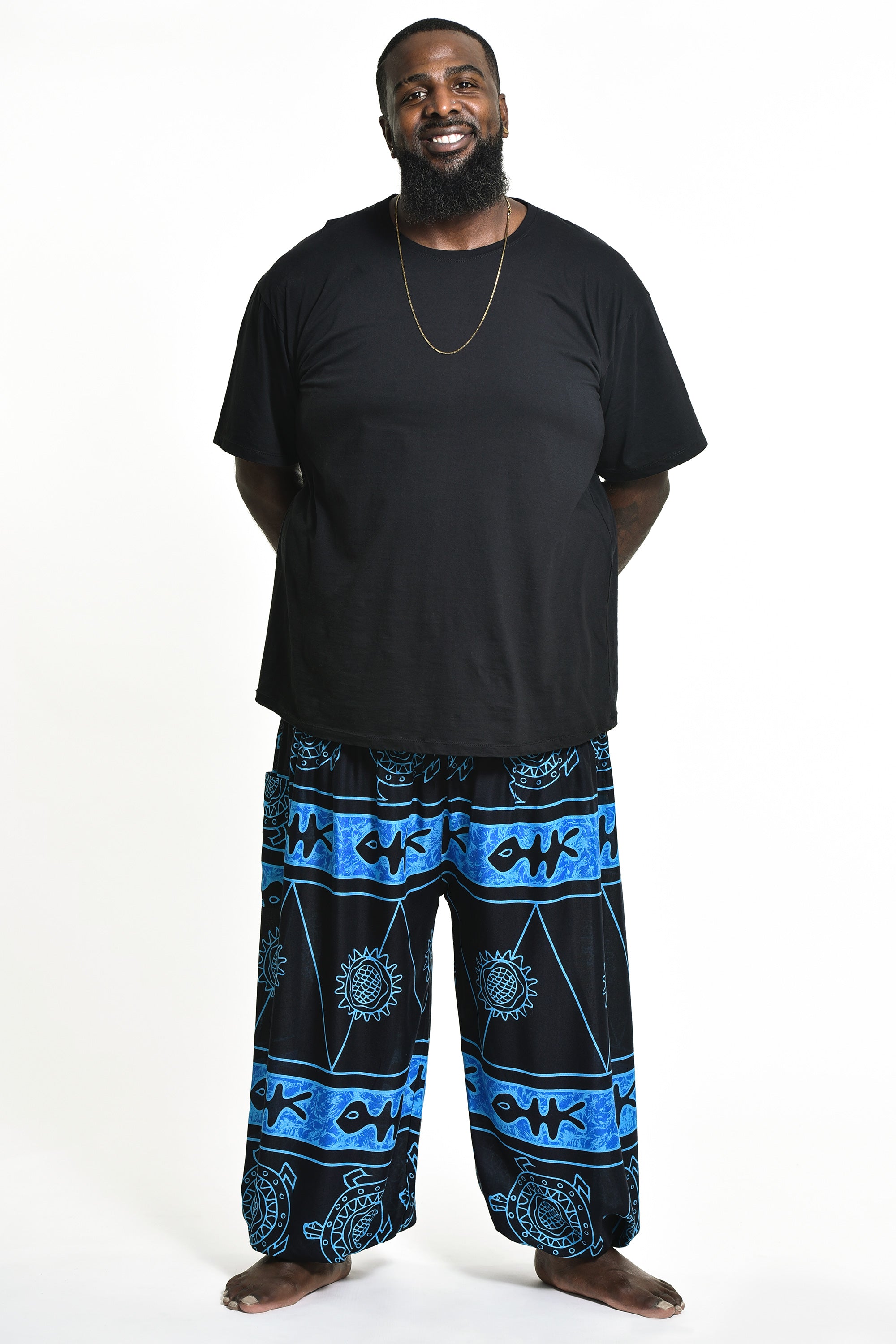 Plus Size Turtle Print Men's Harem Pants in Blue