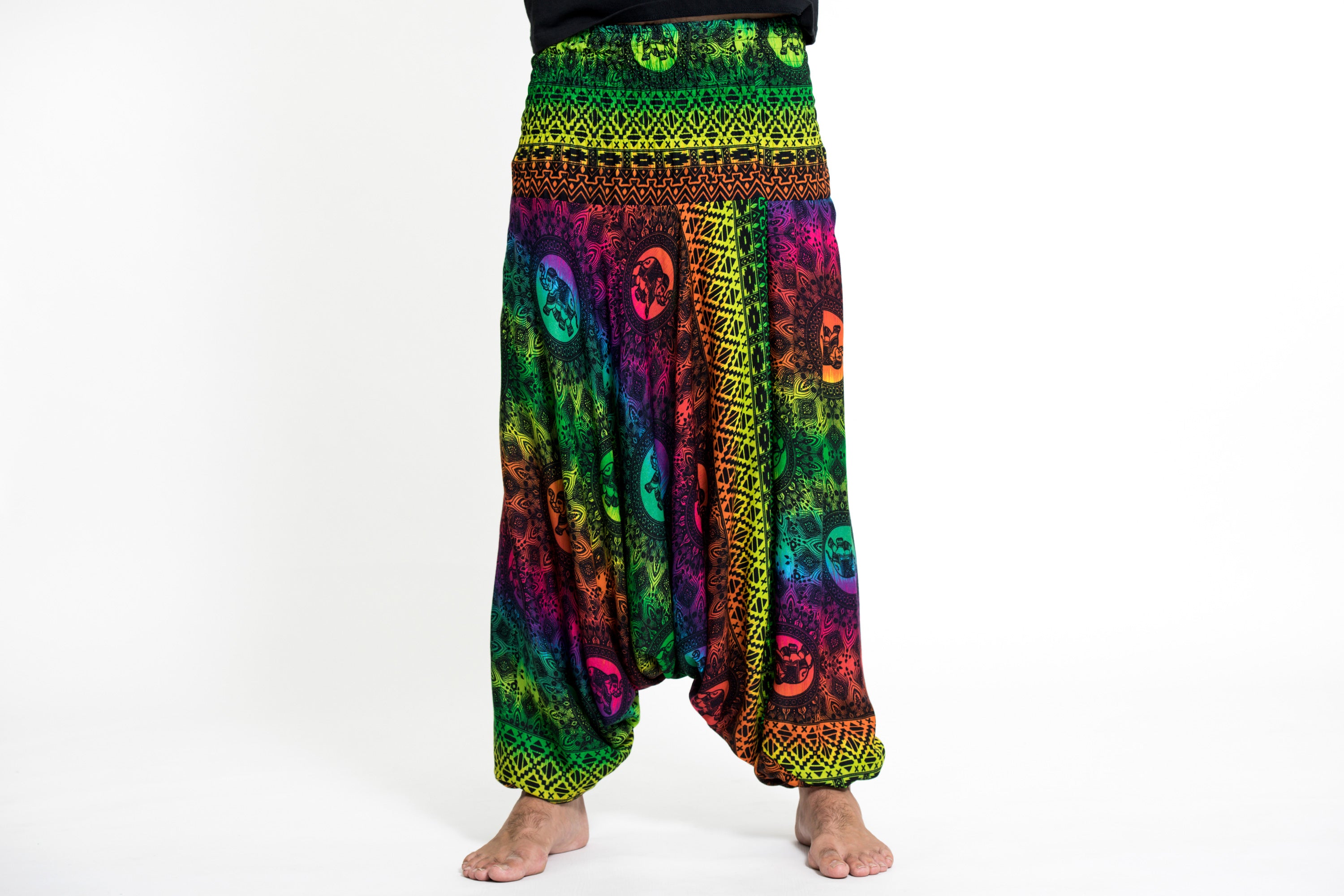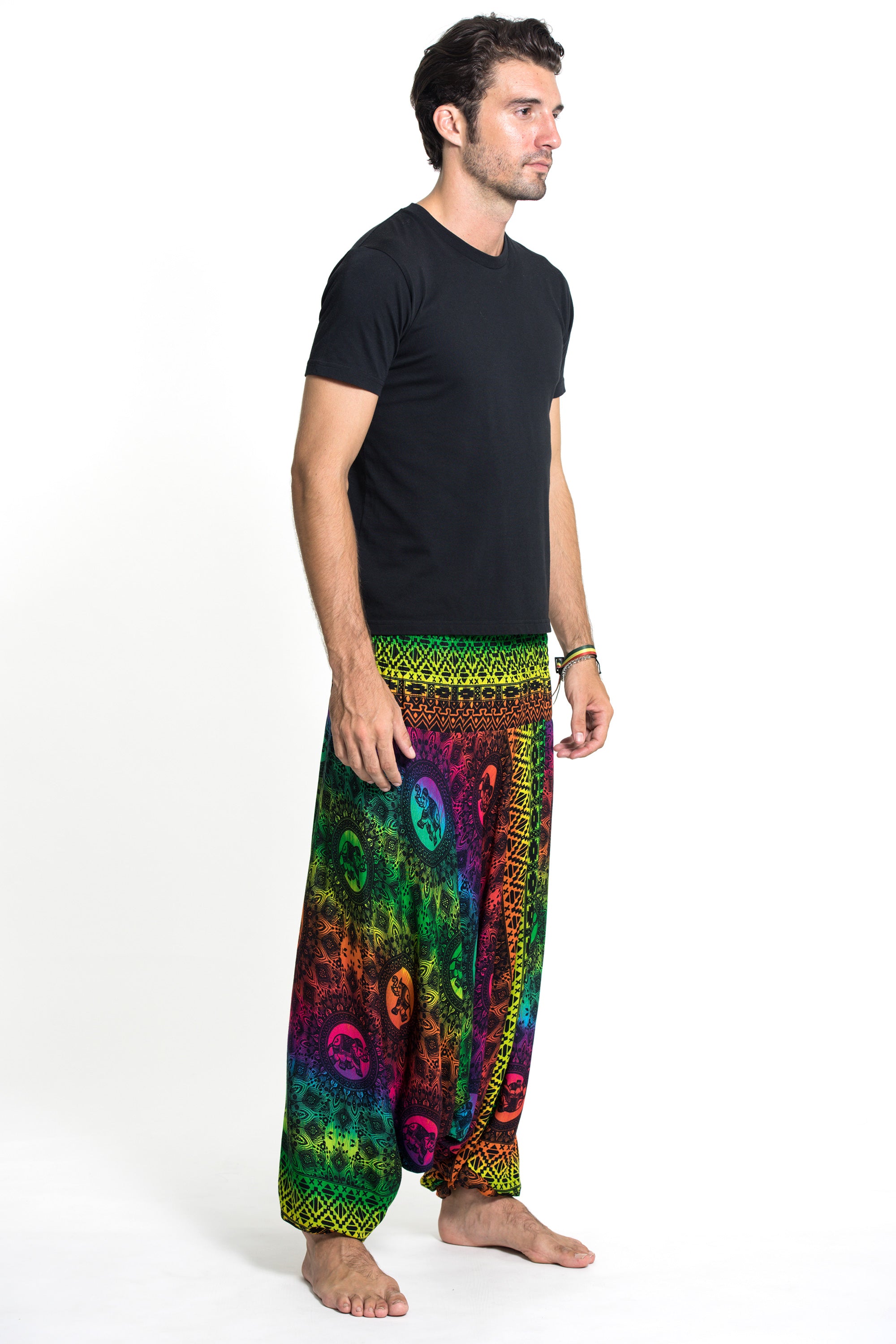 Rainbow Elephant Drop Crotch Men's Elephant Pants in Green