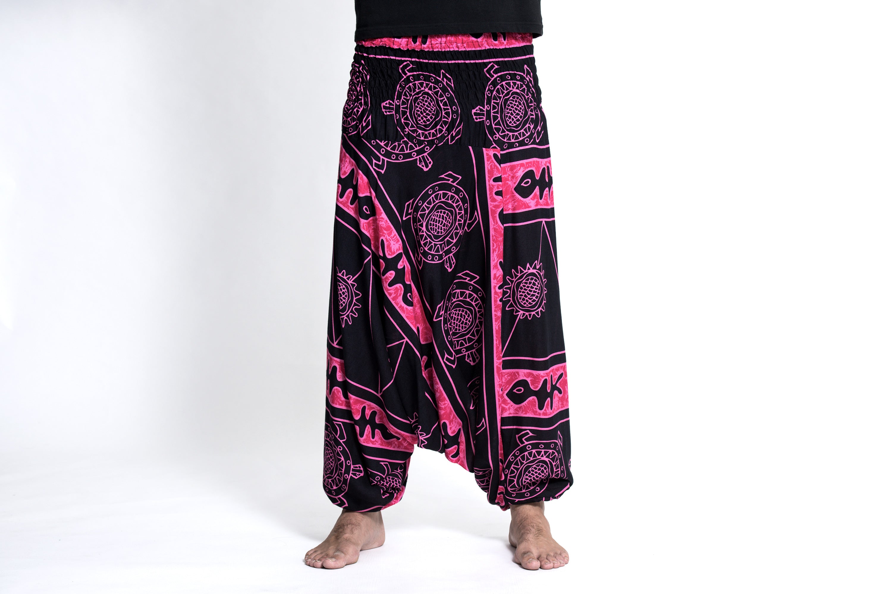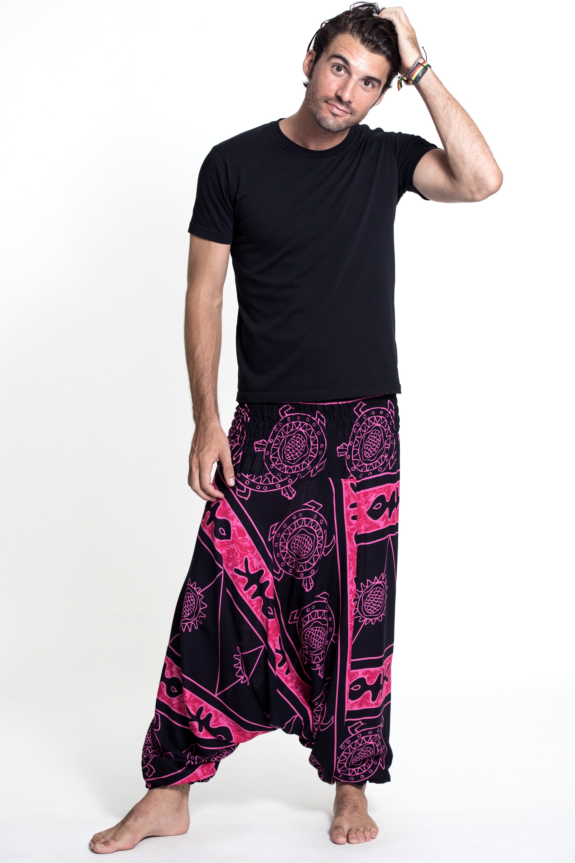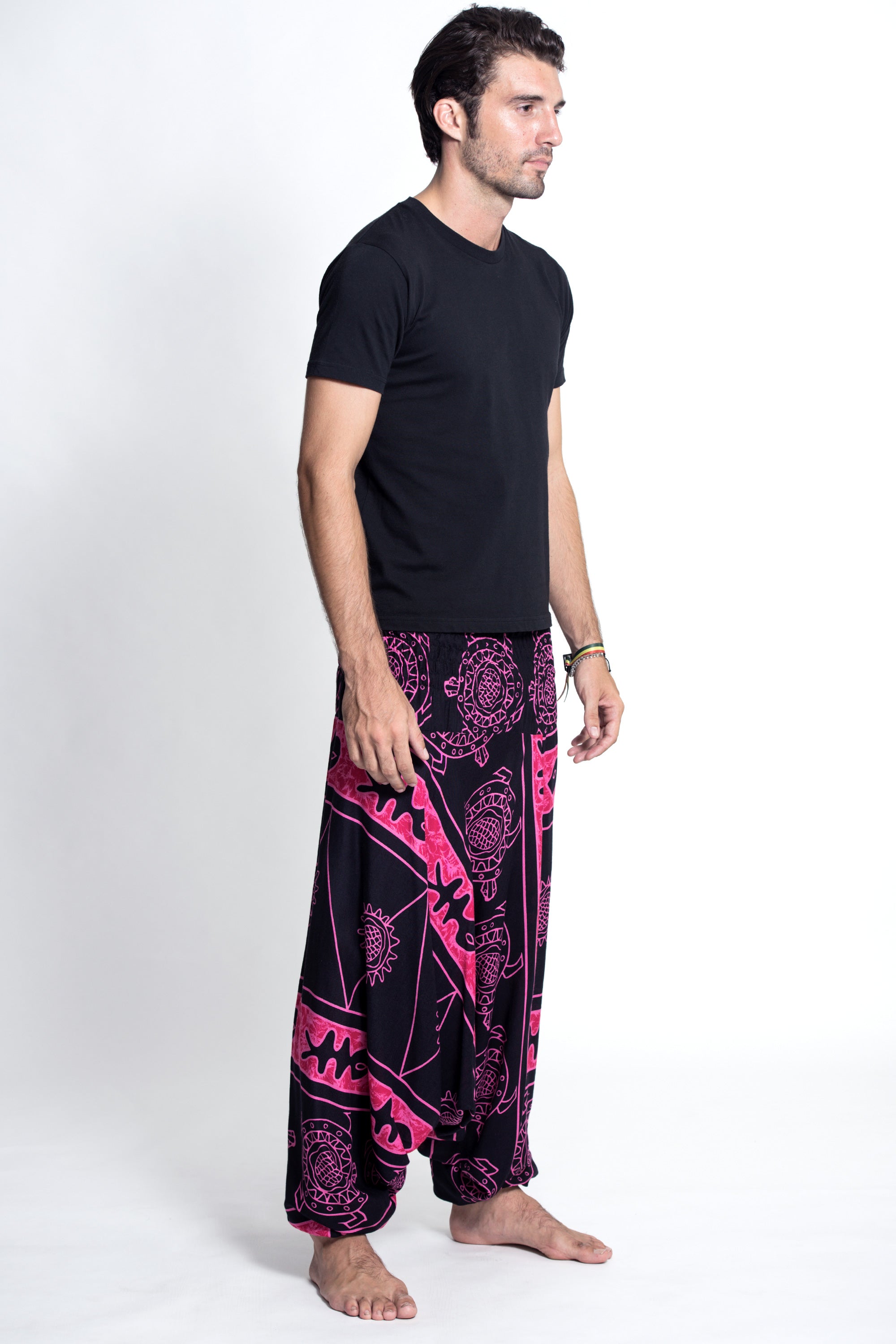 Turtle Print Drop Crotch Men's Harem Pants in Pink