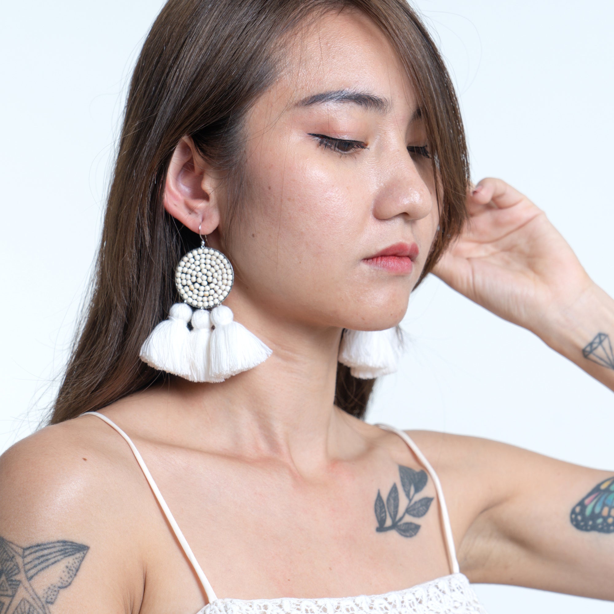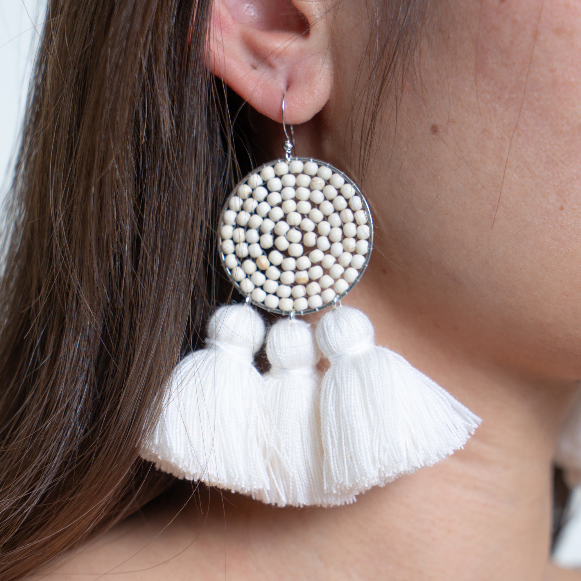 Lovely boho handmade wired beads hoop dangle earrings with tassels.