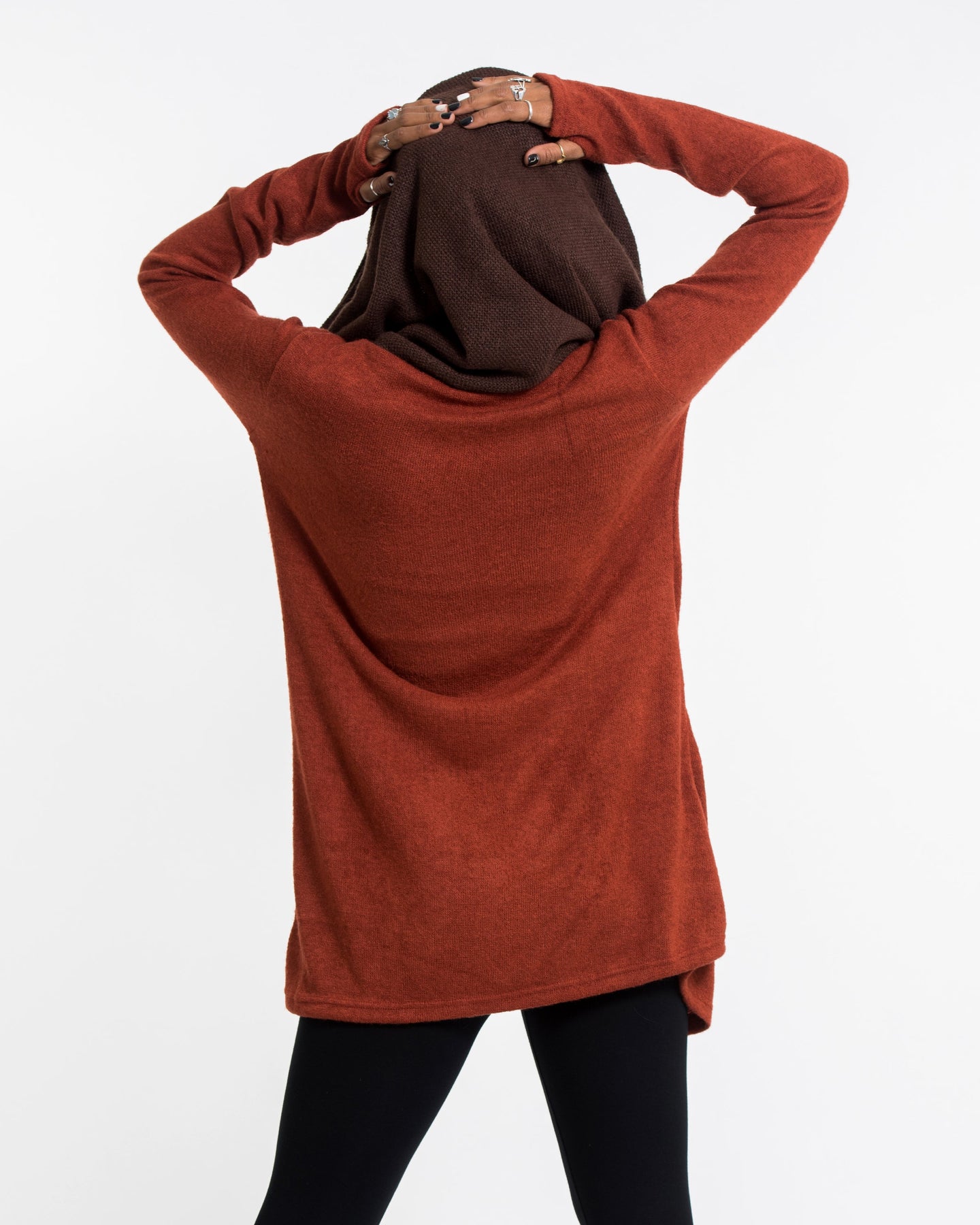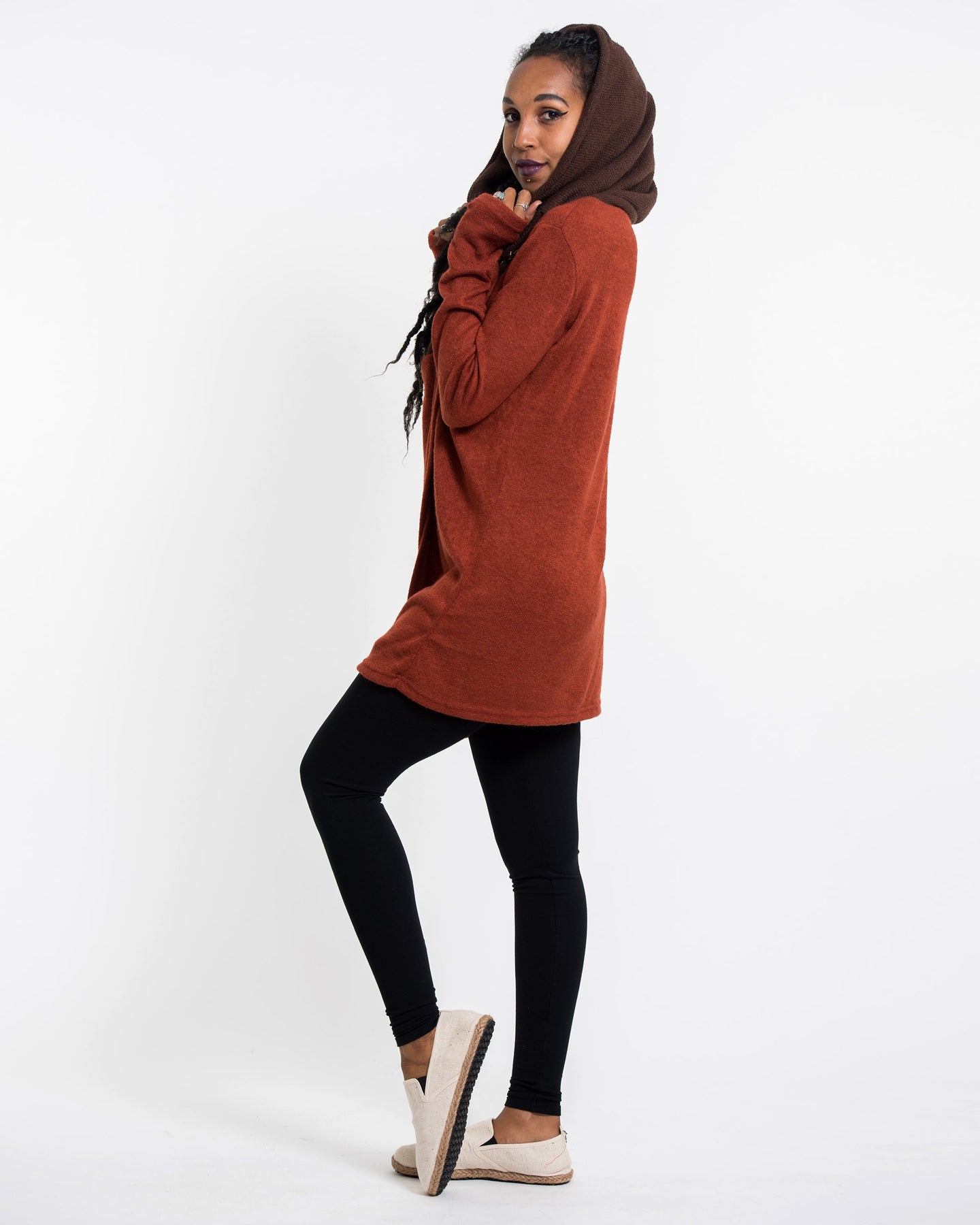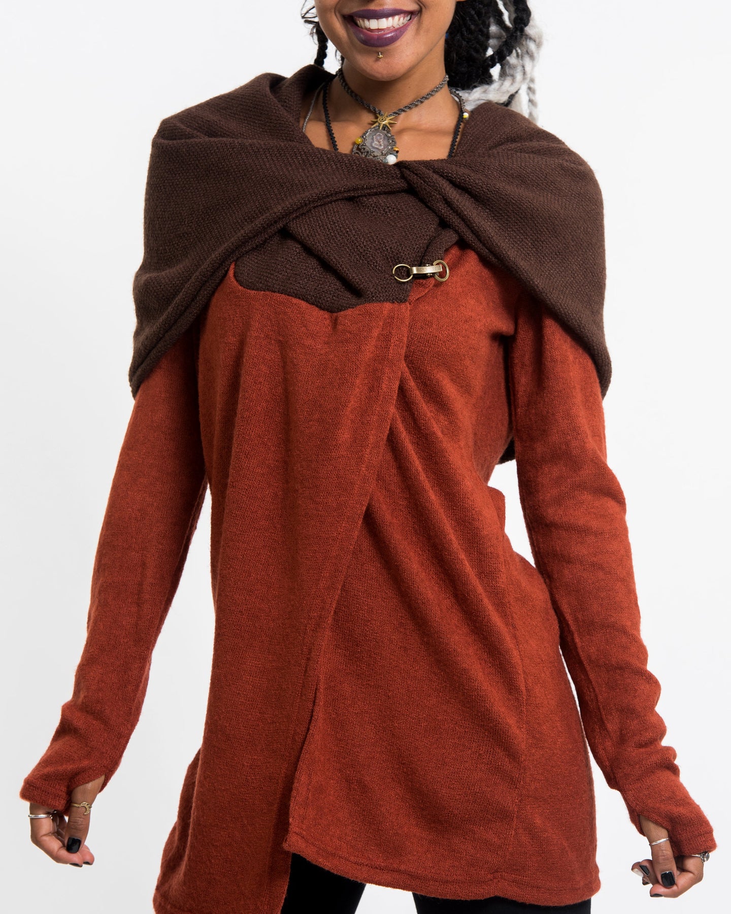 Hoodie Shawl Jacket with Metal Clasp in Brick