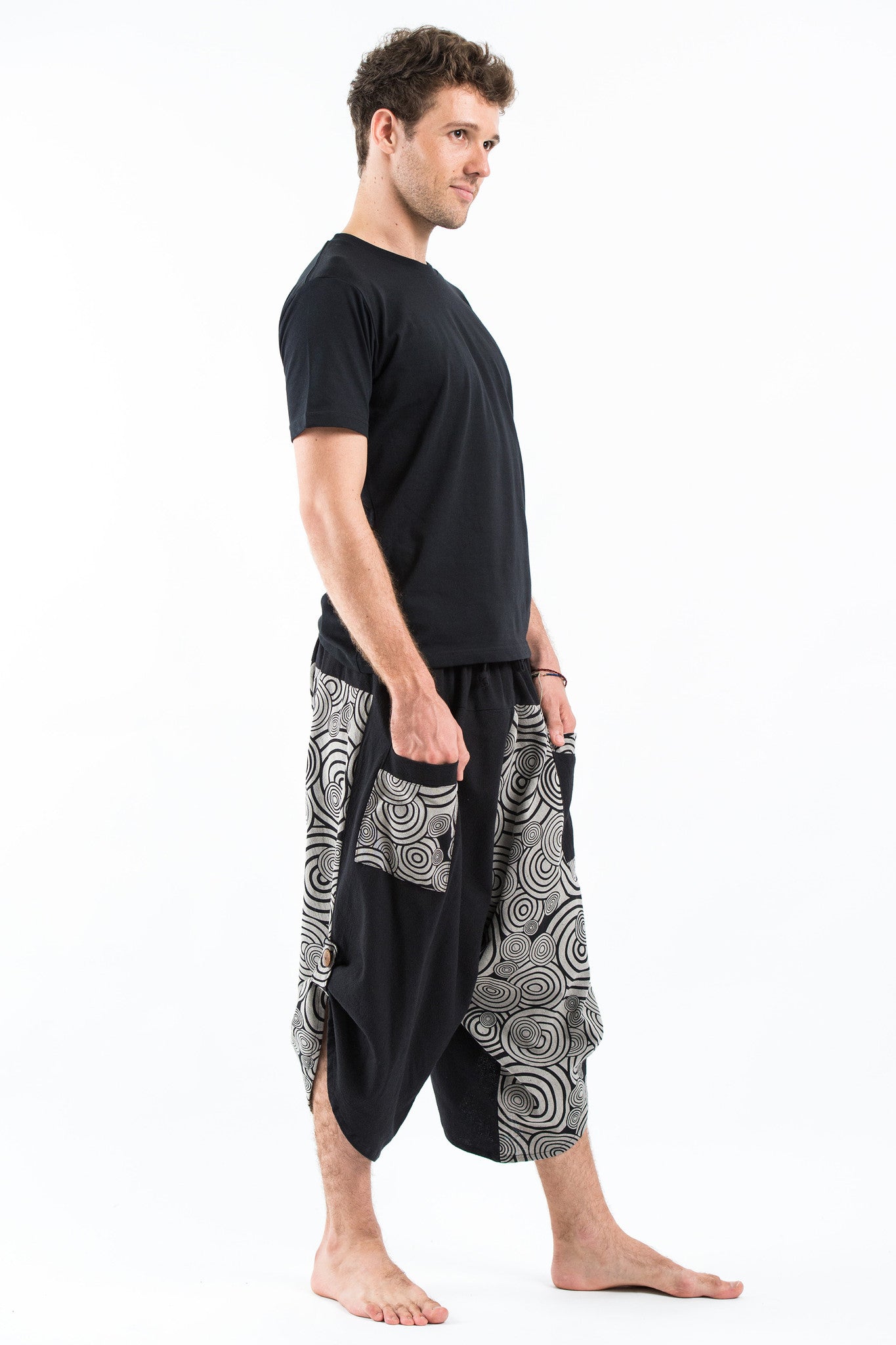 Two Tone Swirls Prints Men's Three Quarter Pants in Black