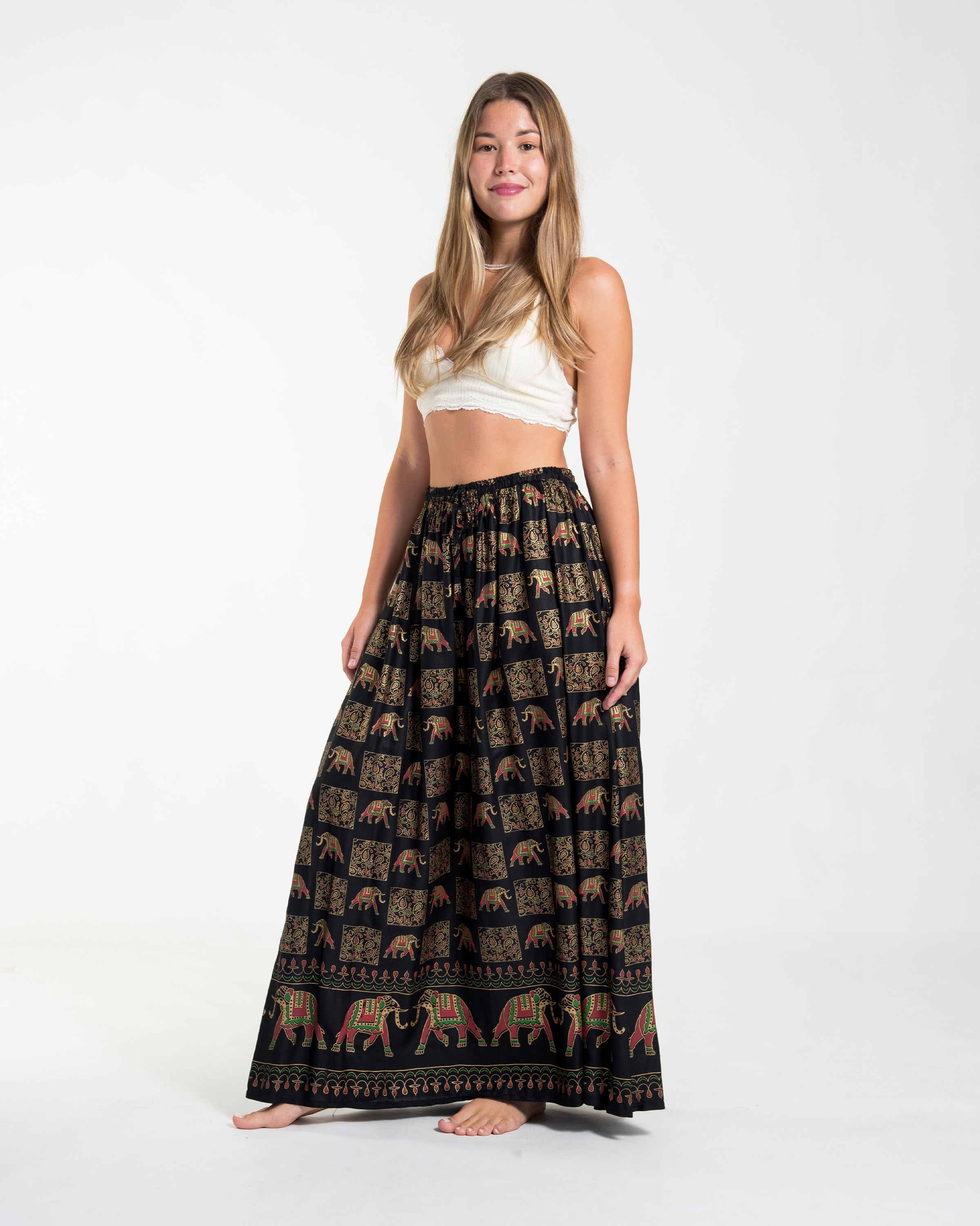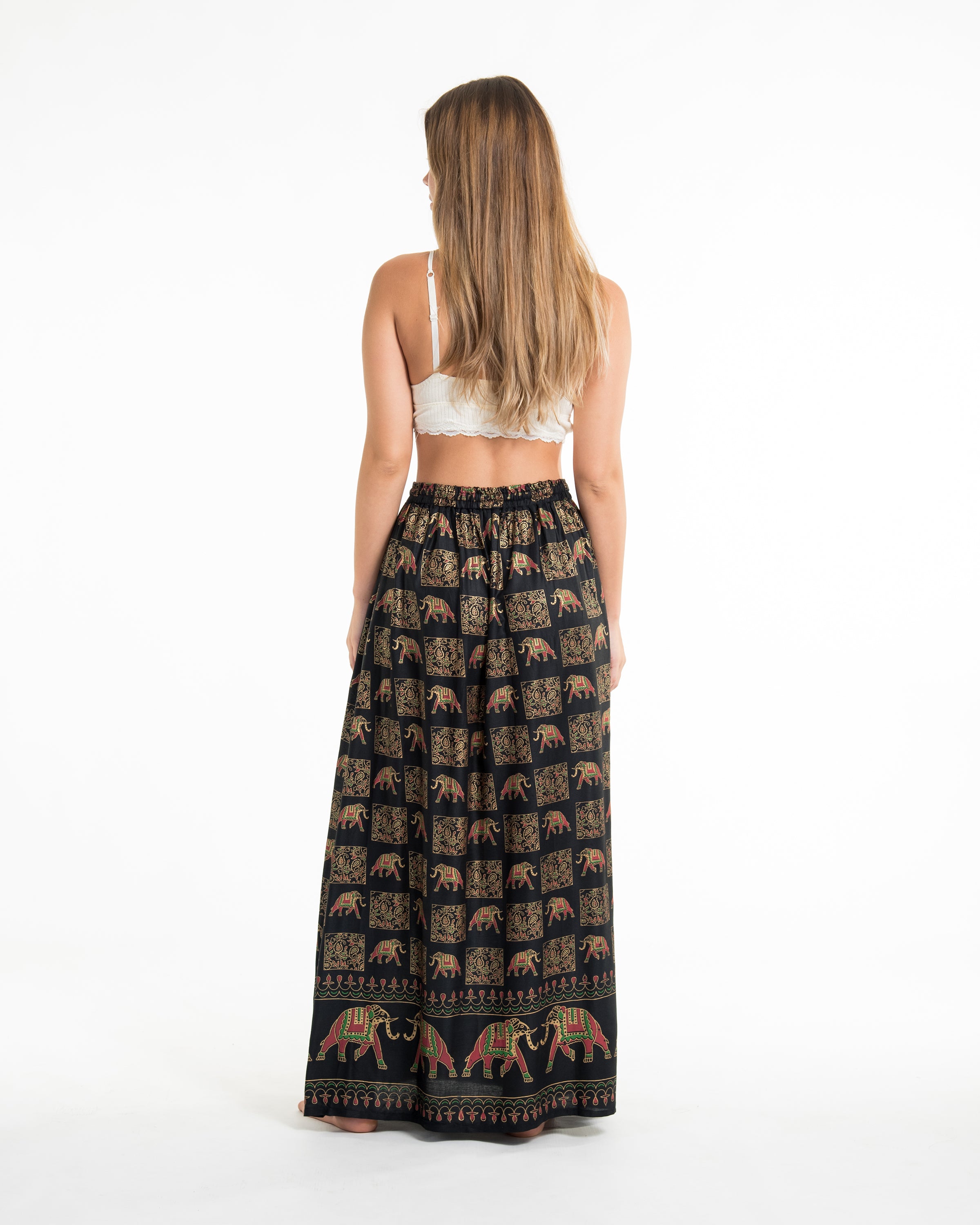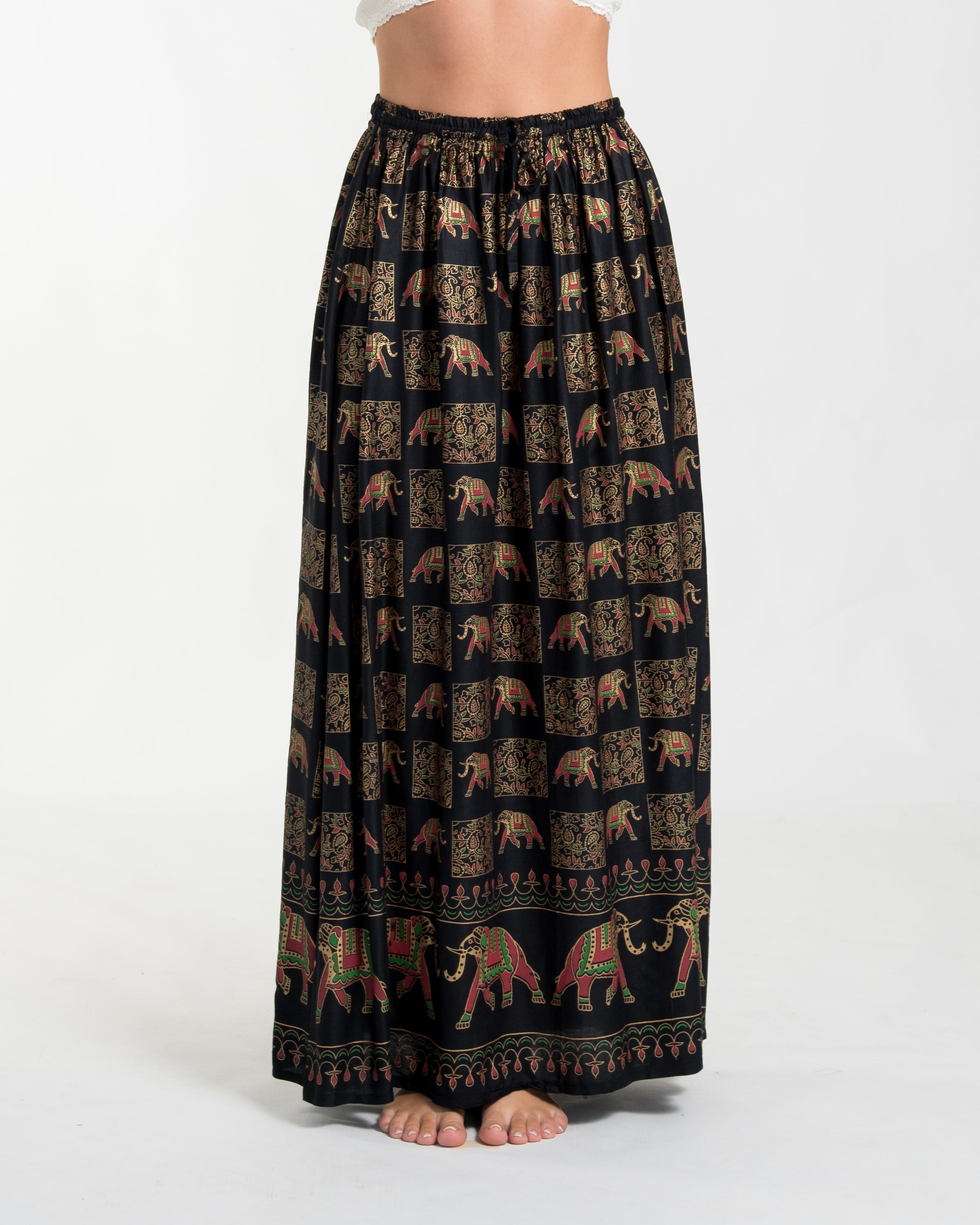 This gorgeous golden elephant print on rayon is lightweight, and comfortable.
