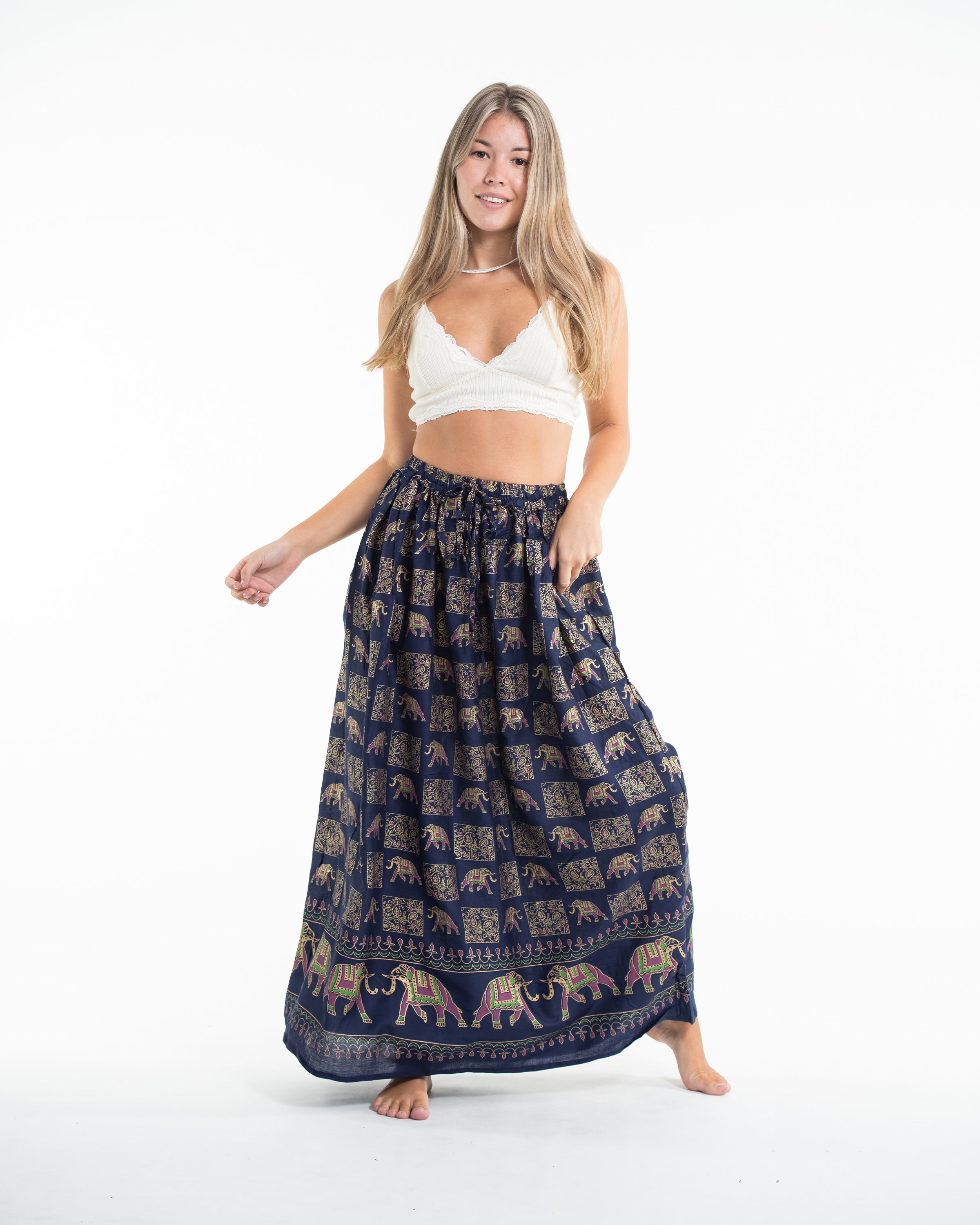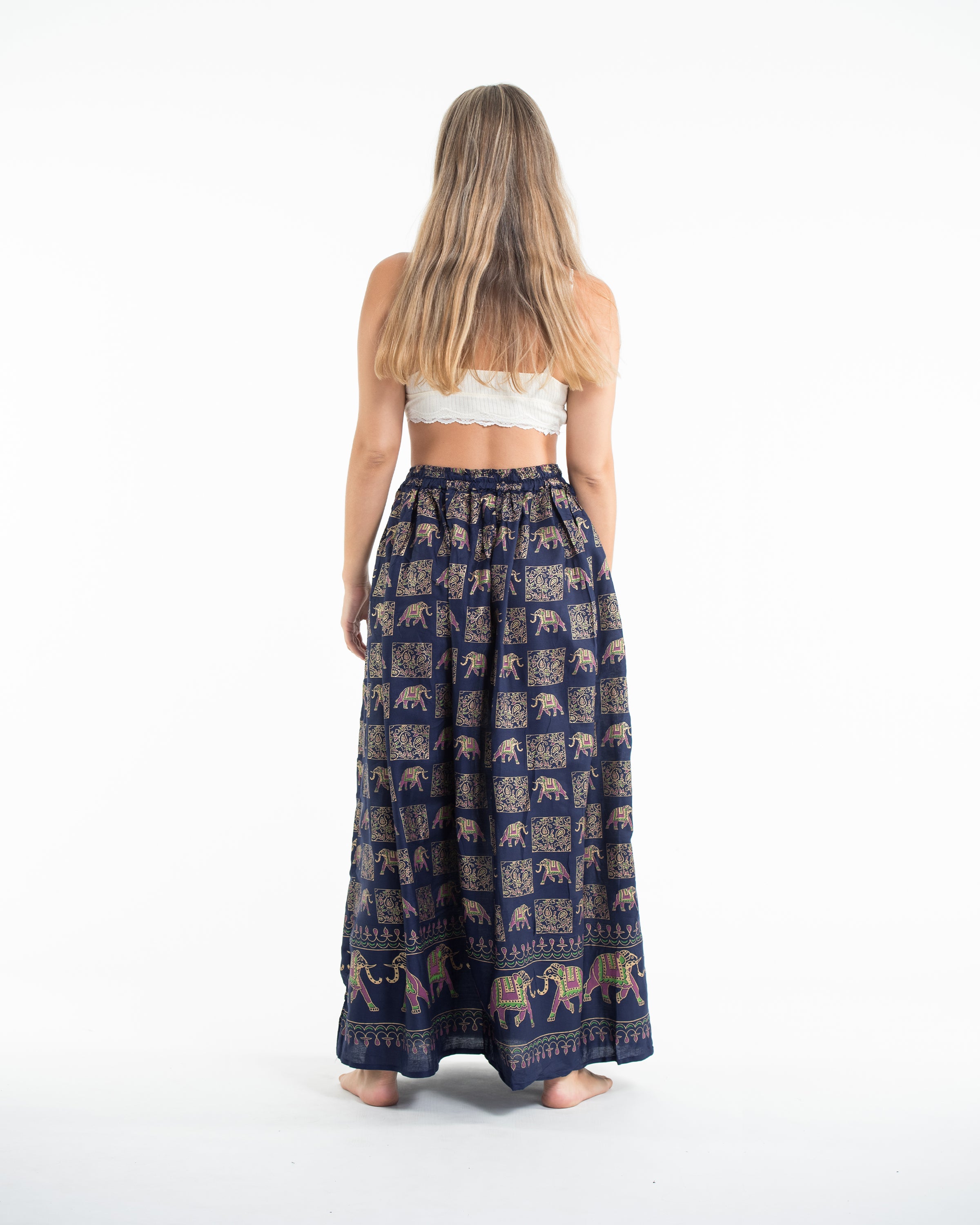 Elephant Print Midi Skirt in Navy
