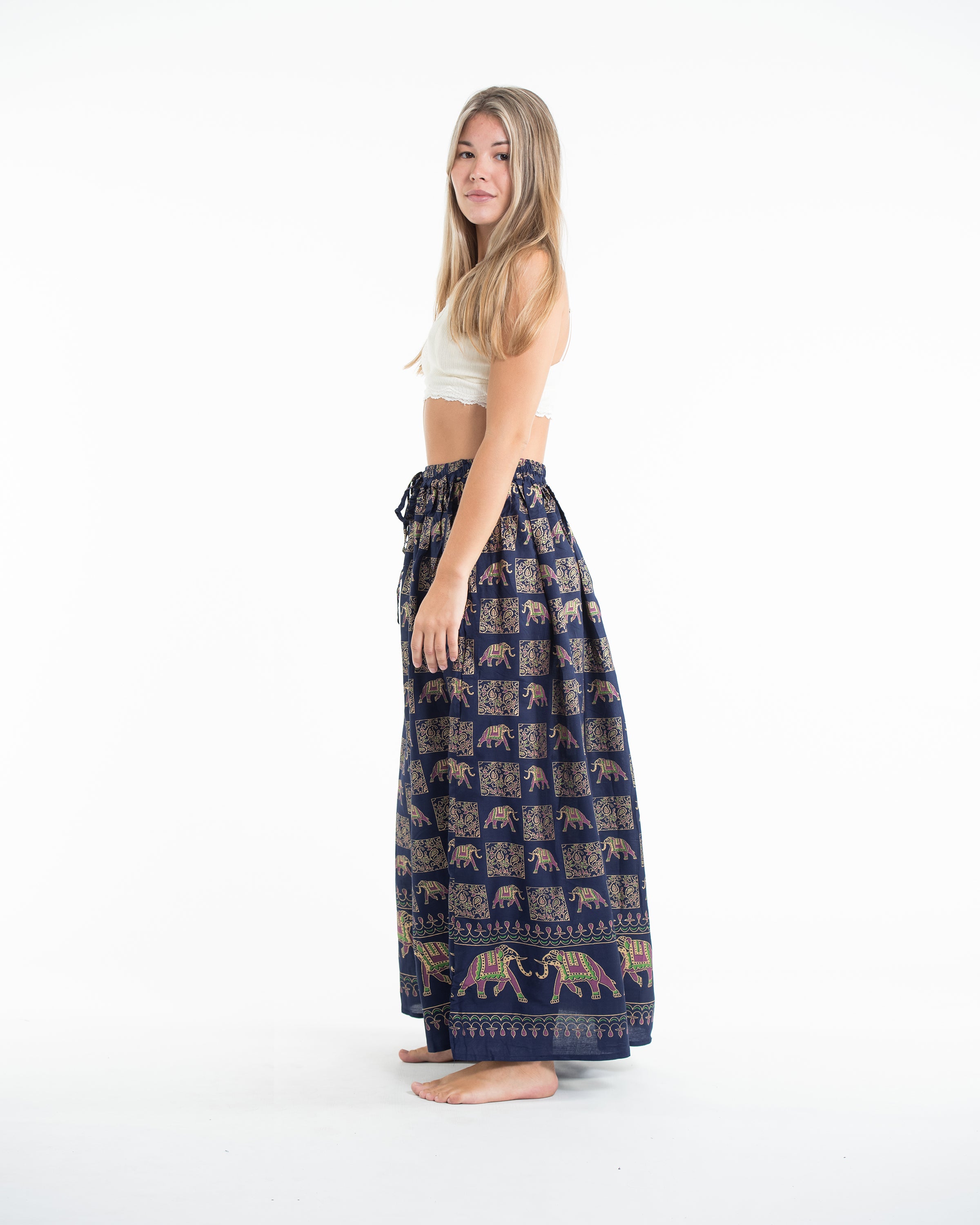This gorgeous golden elephant print on rayon is lightweight, and comfortable.