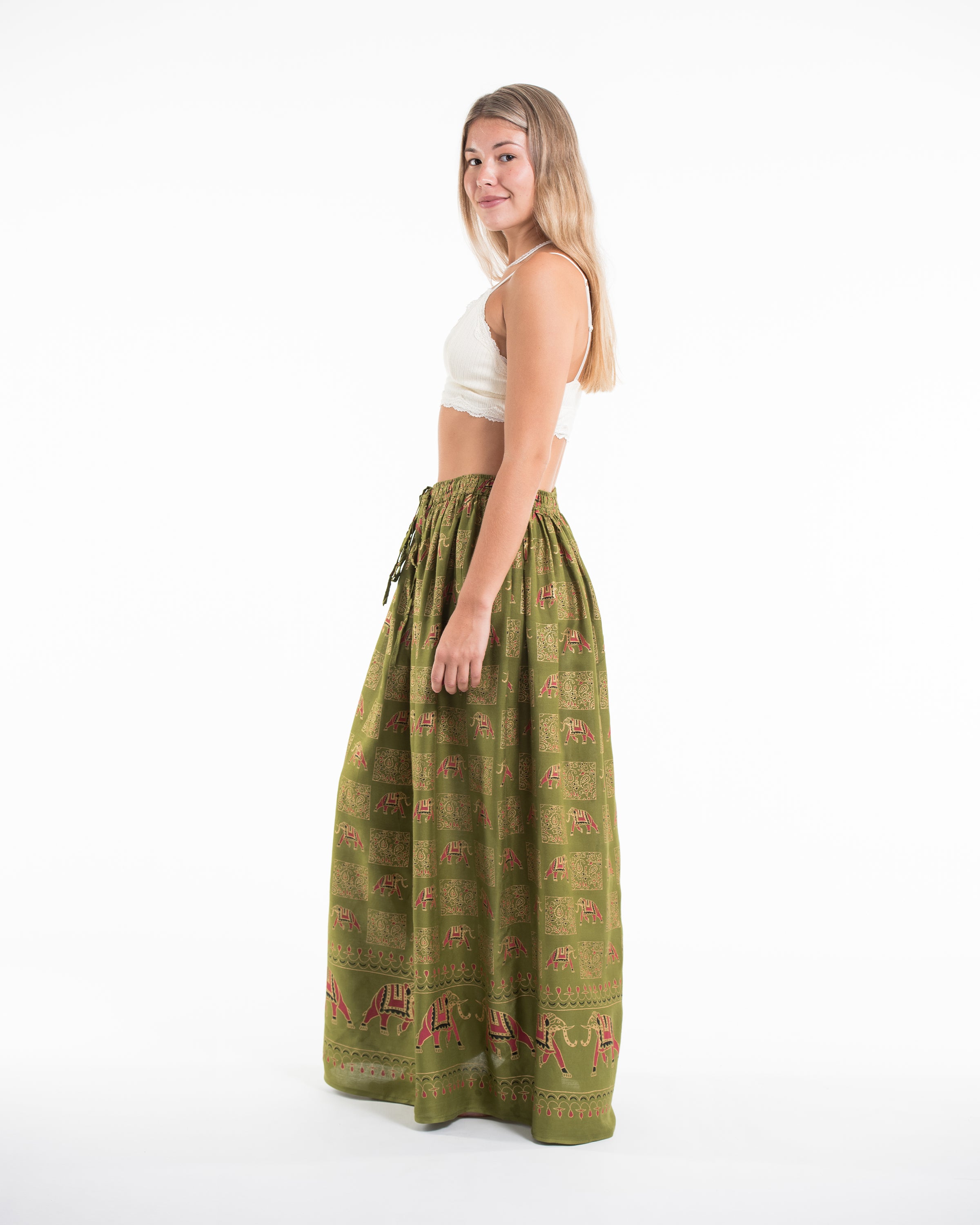 This gorgeous golden elephant print on rayon is lightweight, and comfortable.
