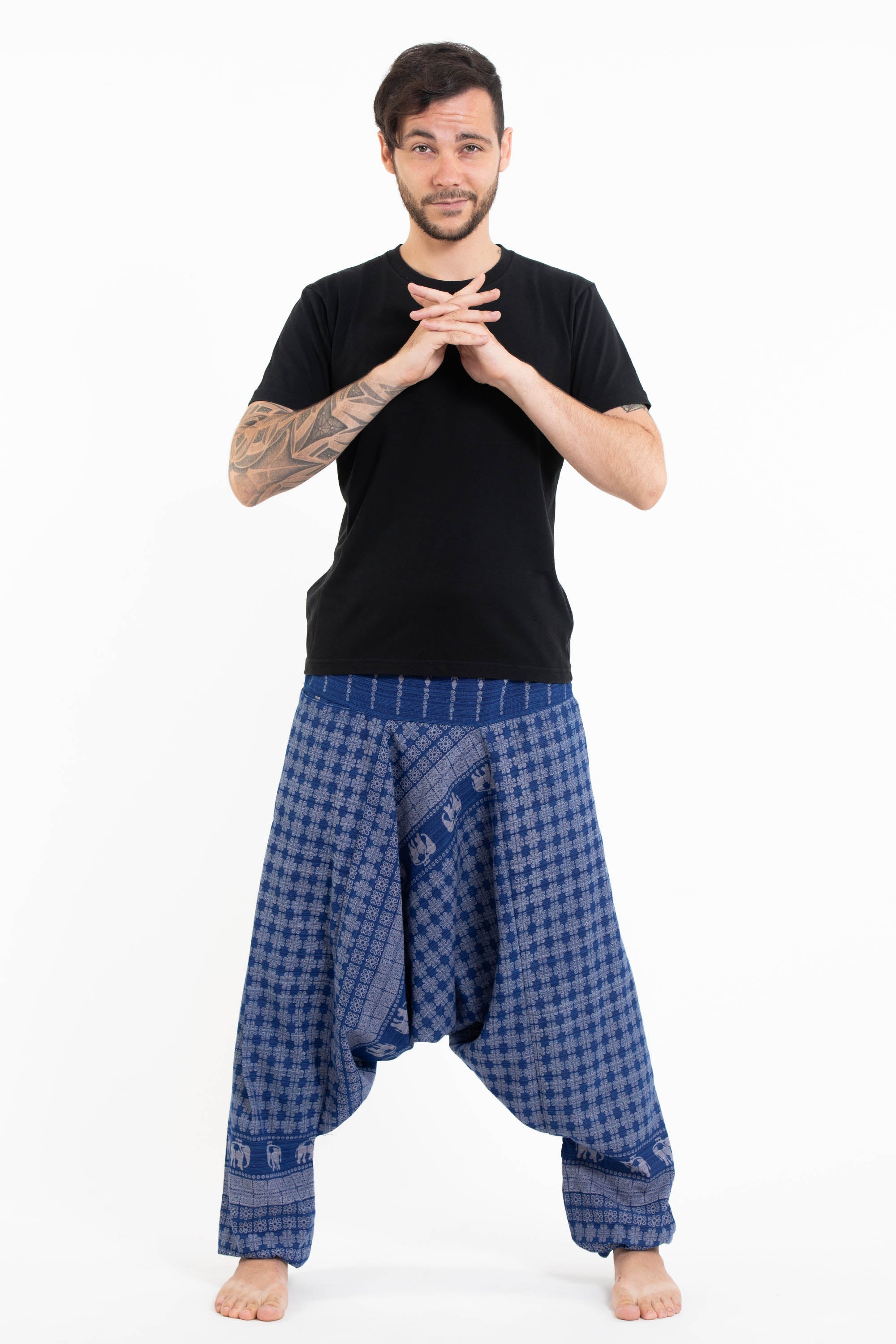 Hill Tribe Elephant Men's Elephant Pants in Blue