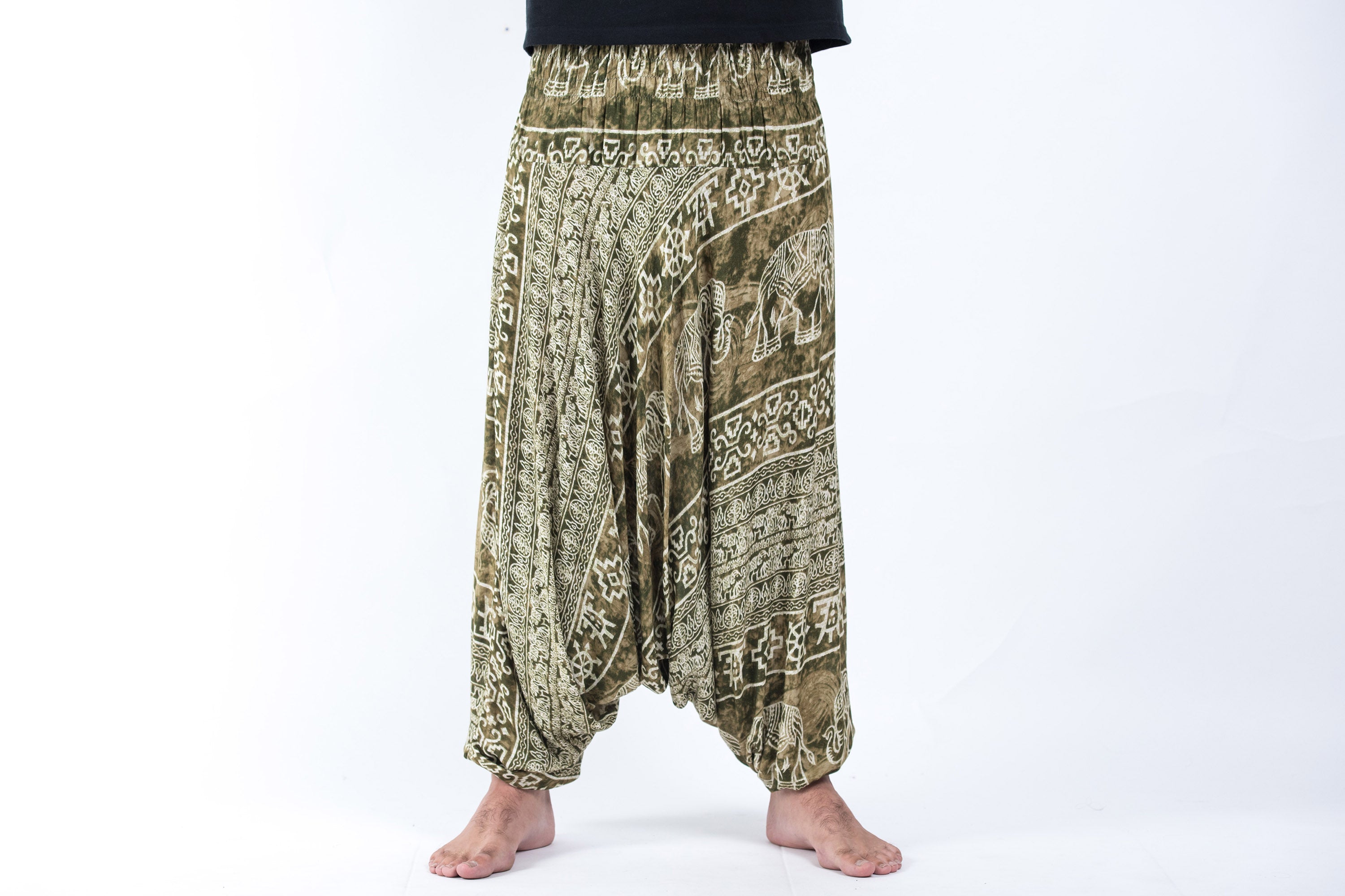 Marble Elephant Drop Crotch Men's Elephant Pants in Olive