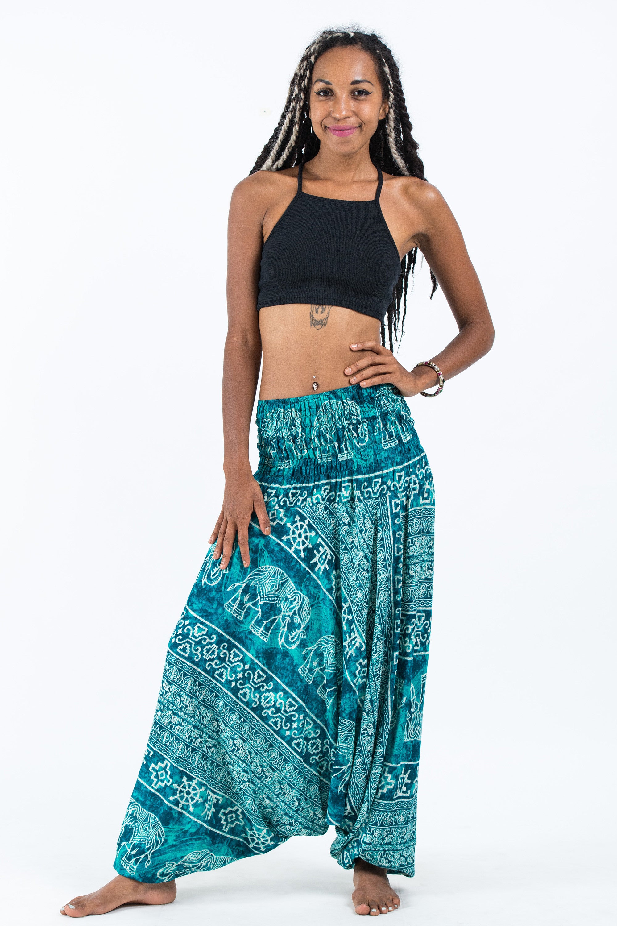 Marble Elephant 2-in-1 Jumpsuit Elephant Pants in Turquoise