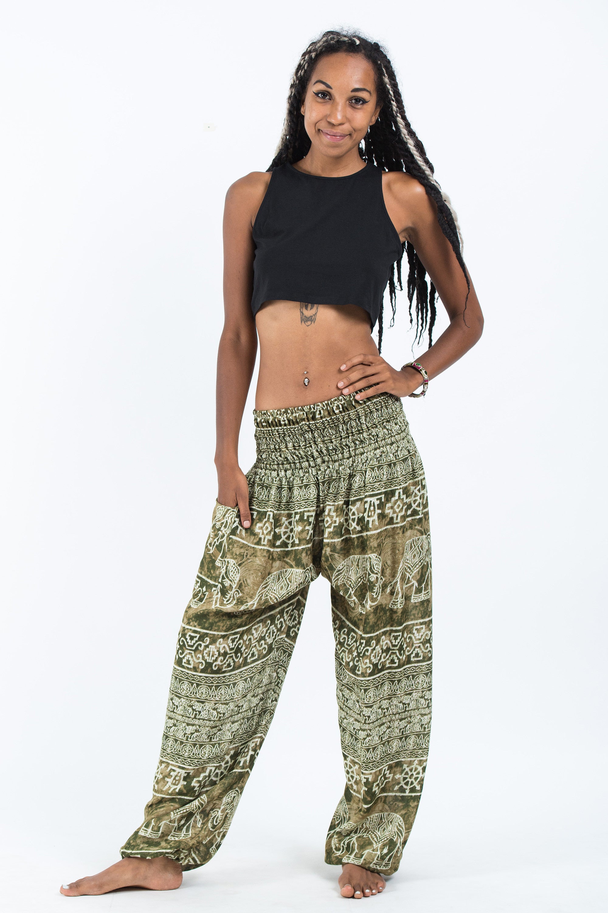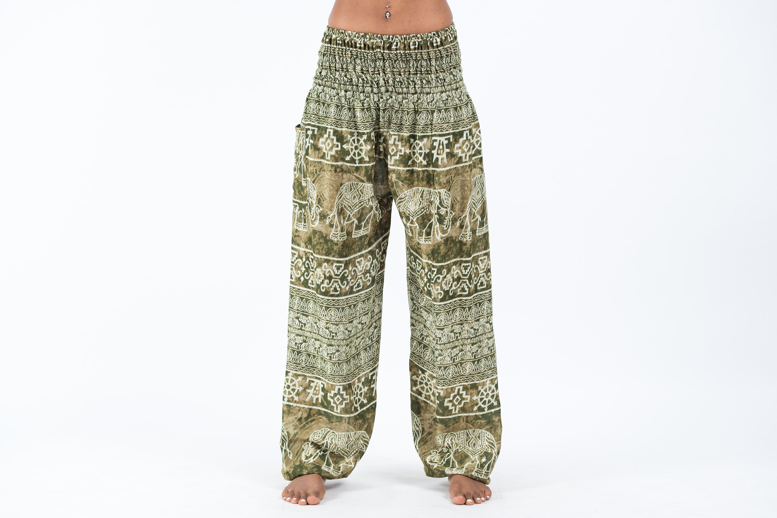 All these high cut gender neutral Elephant Pants have comfy smocked waist and one side-pocket.