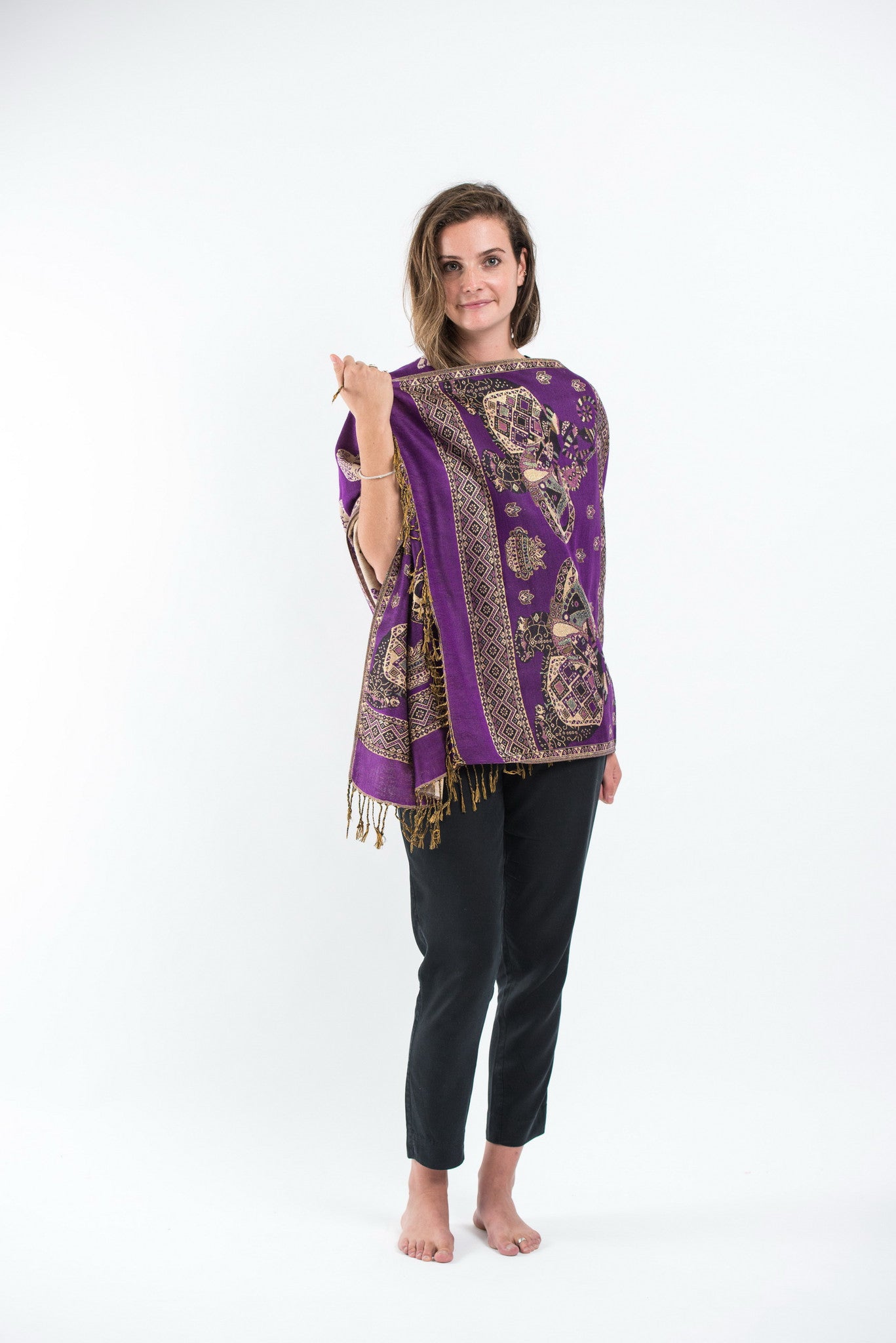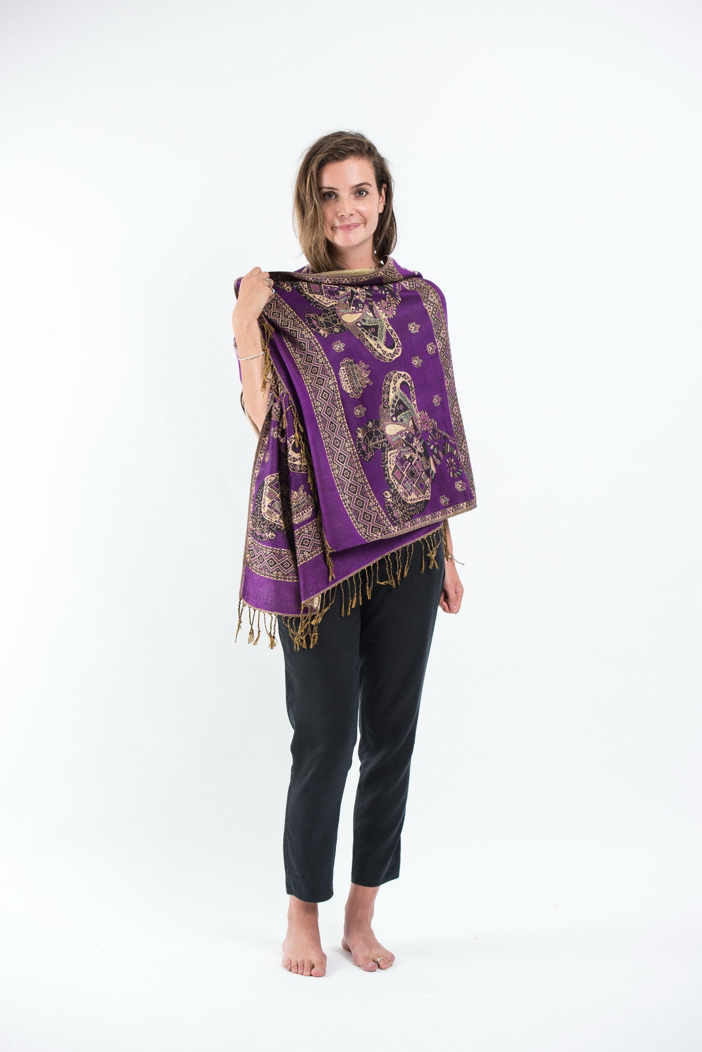 Nepal Elephant Pashmina Shawl Scarf in Purple