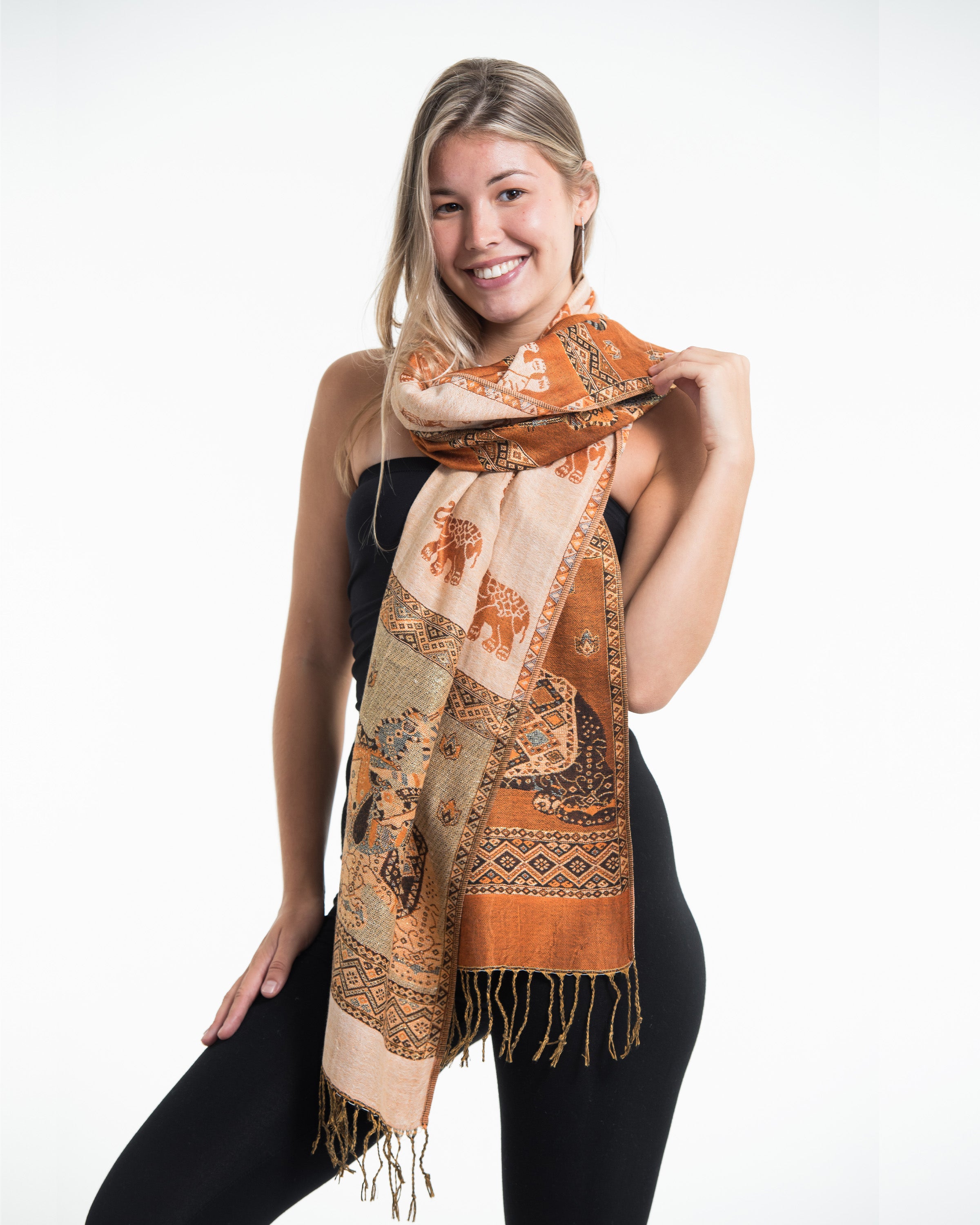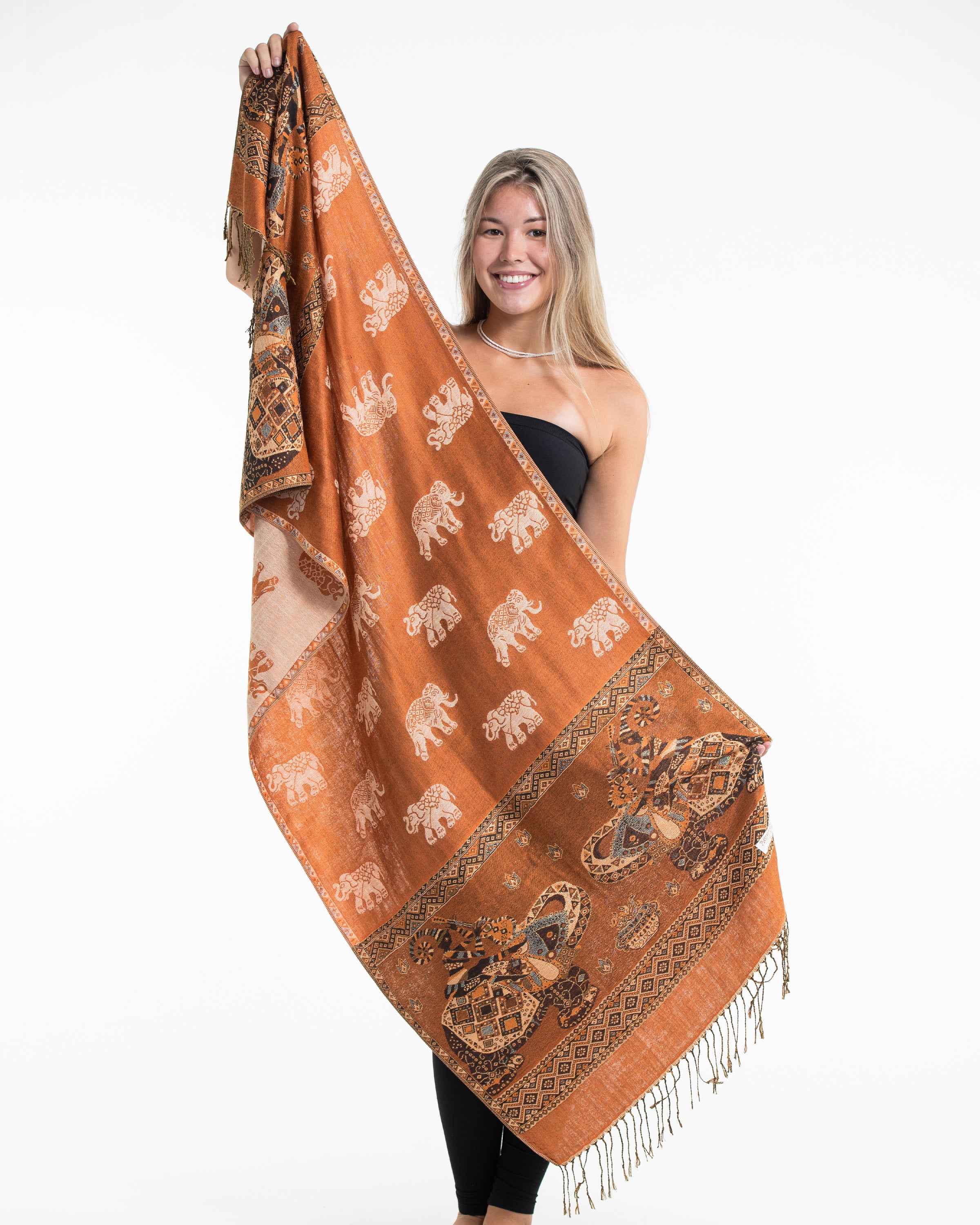 Nepal Elephant Pashmina Shawl Scarf in Rust
