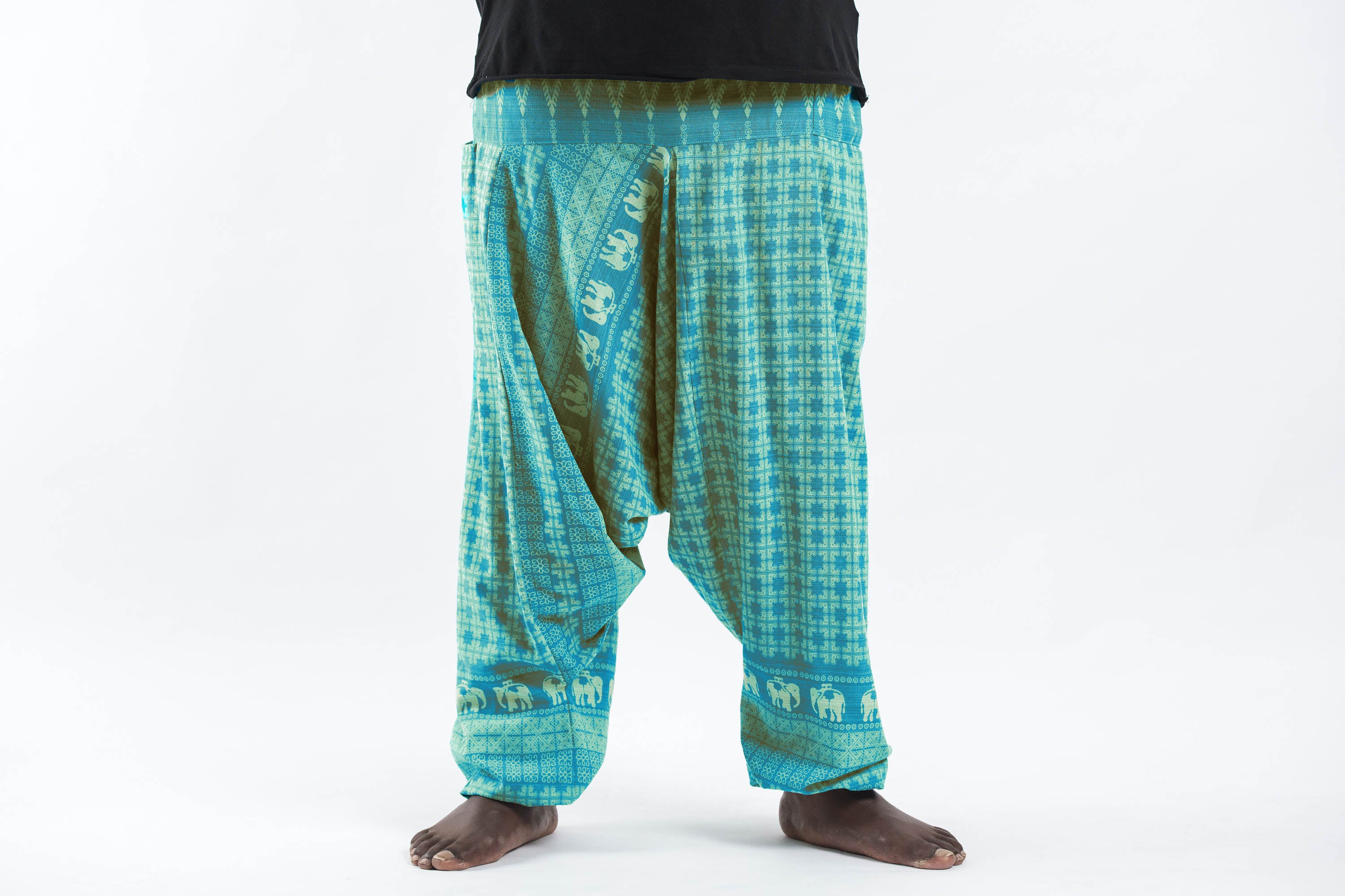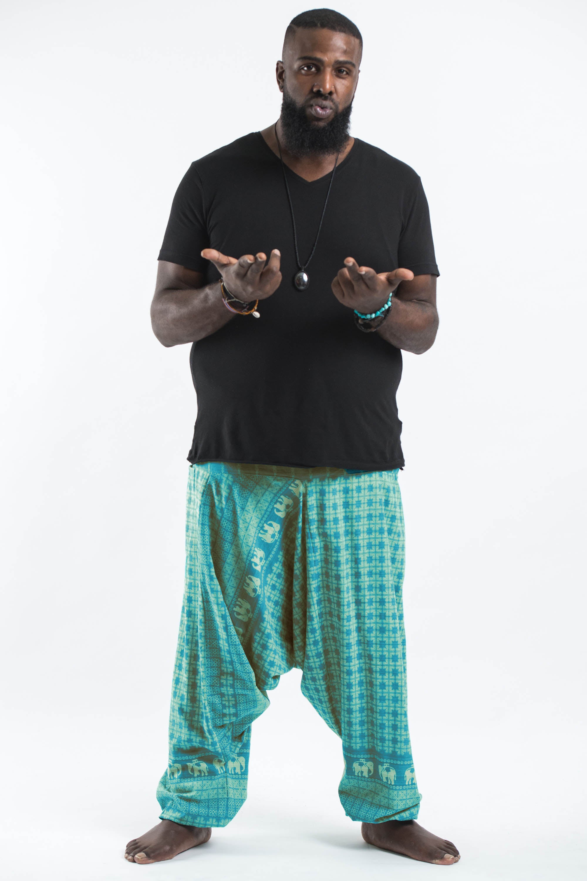 Plus Size Hill Tribe Elephant Men's Elephant Pants in Turquoise
