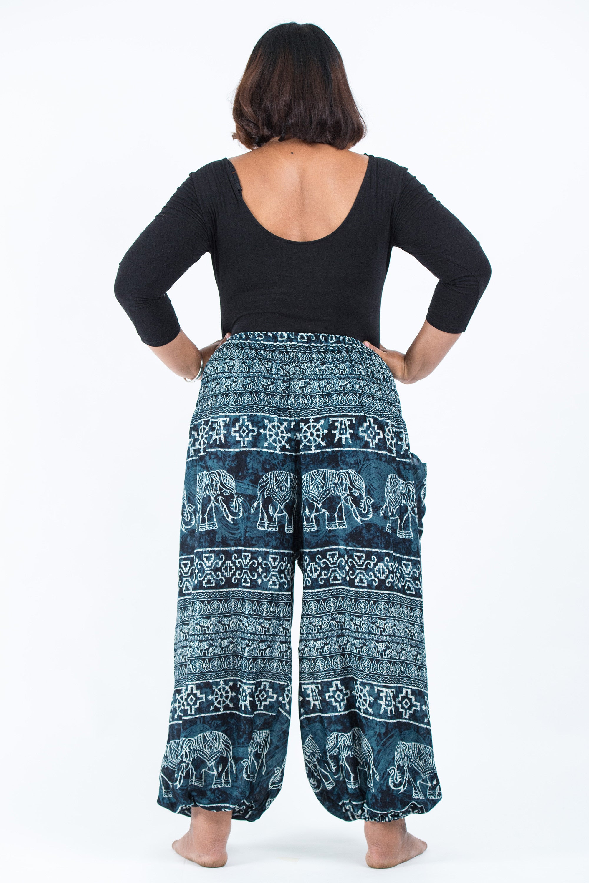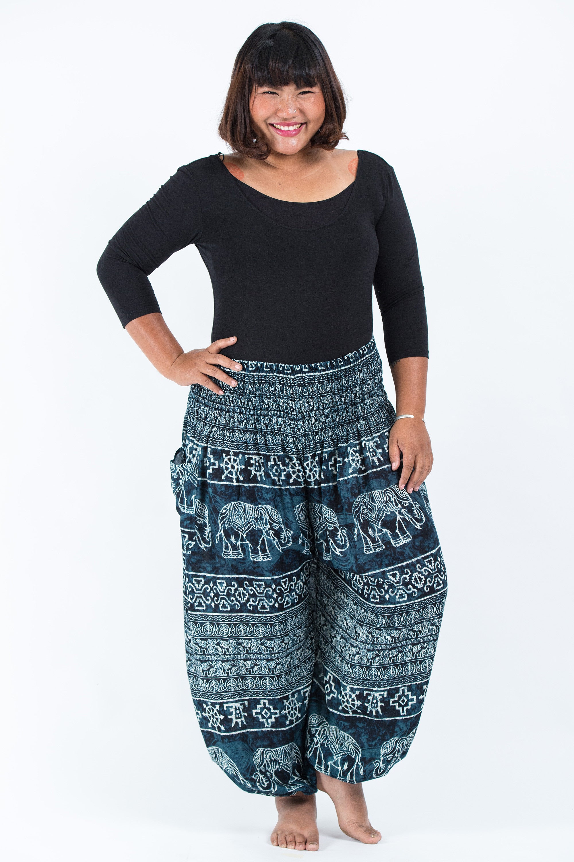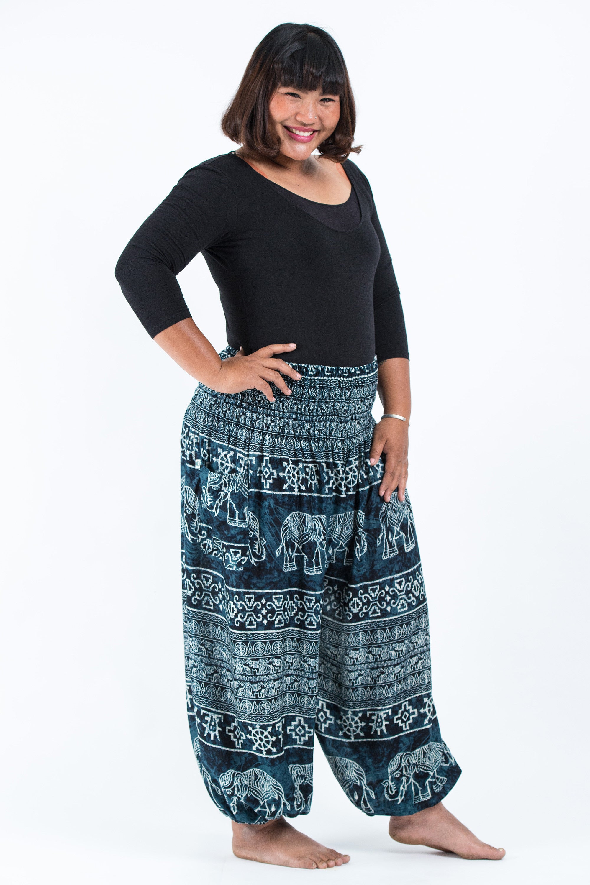 This is my fourth pair of harempants.com. They are well made and sewn for plus sizes. The sizing is correct for everyone. My only problem is that the harem pants pictured are blue, but they are described in the details as black. A customer representative explained that the pants were blue and black. To me they are blue with black highlighting. I would not have bought these pants if the customer service representative hadn't cleared up my confusion. Hey! Harempants, change the description. I think you may be losing customers.