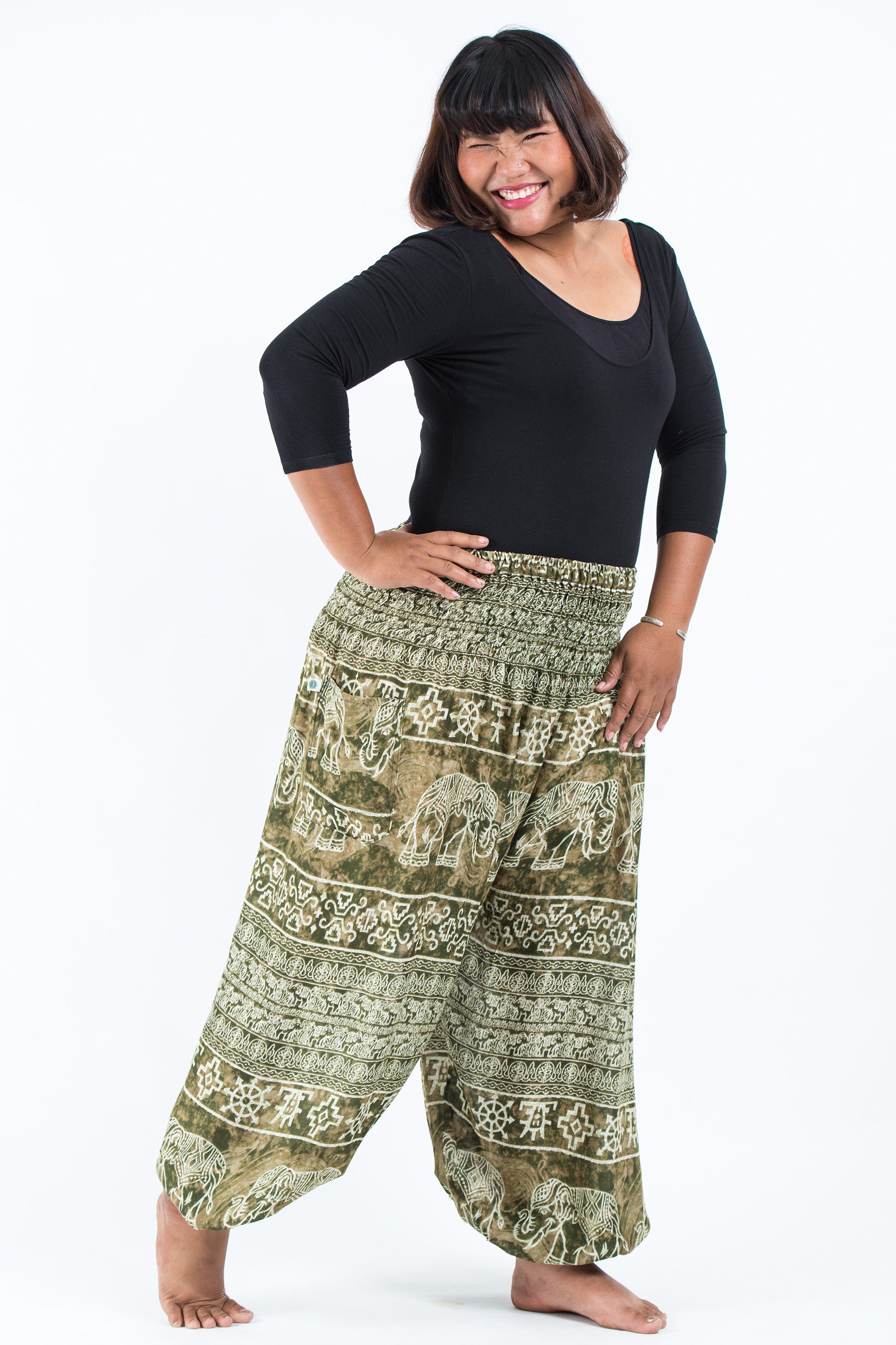I originally ordered these in regular but wanted more space and flow in the legs, so I gave them to a friend and bought these instead. I love the big poofy legs, like genie pants. Not to mention the pattern and color are gorgeous! They are maybe a bit darker/deeper in color in real life, but I like that.