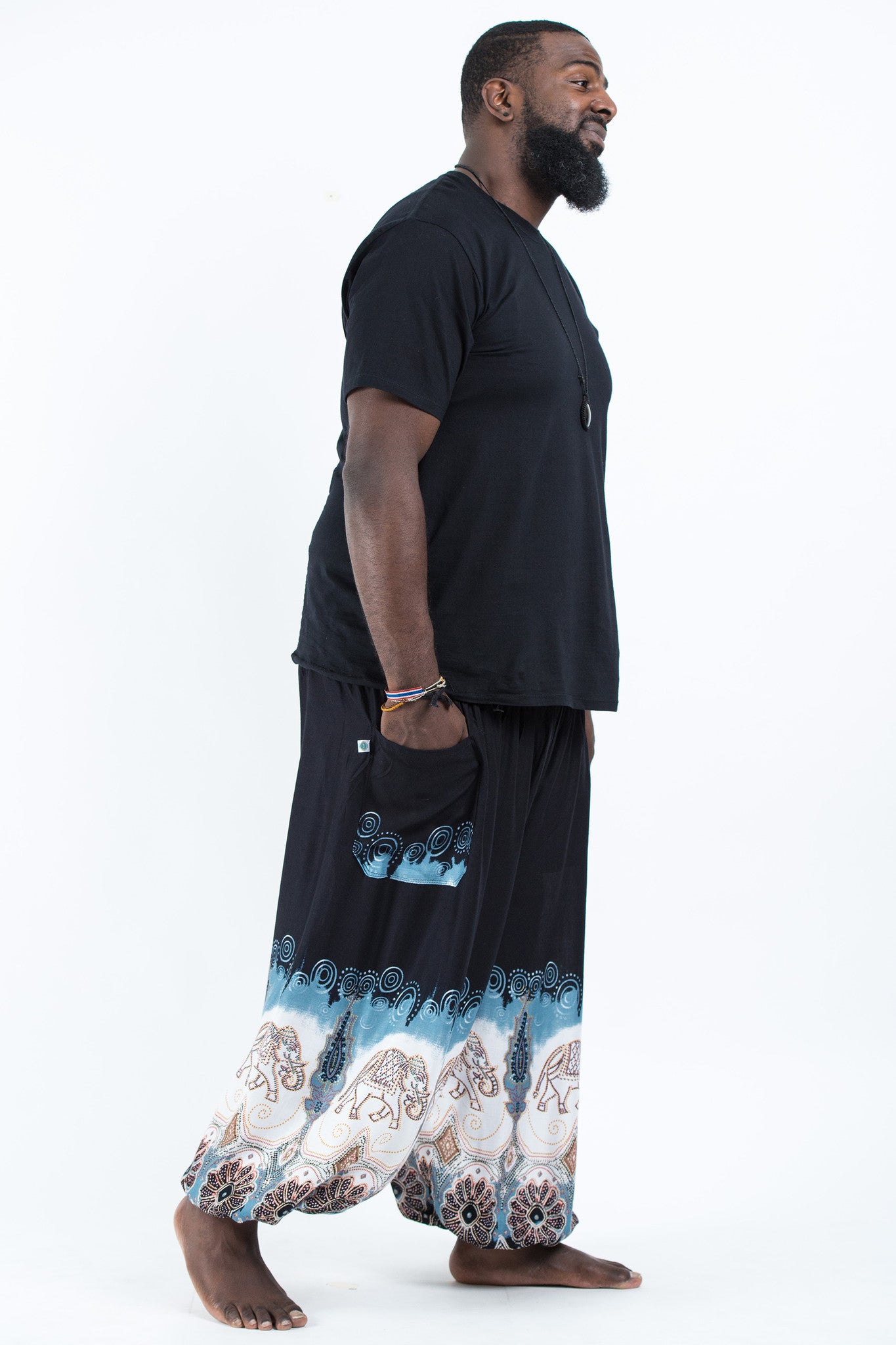 Plus Size Solid Top Elephant Men's Elephant Pants in Black