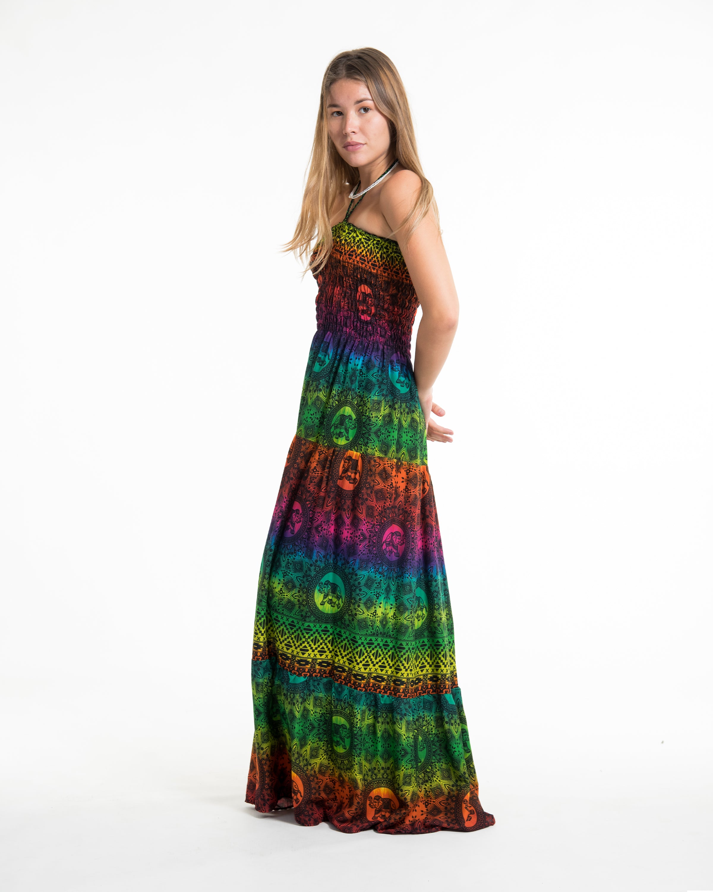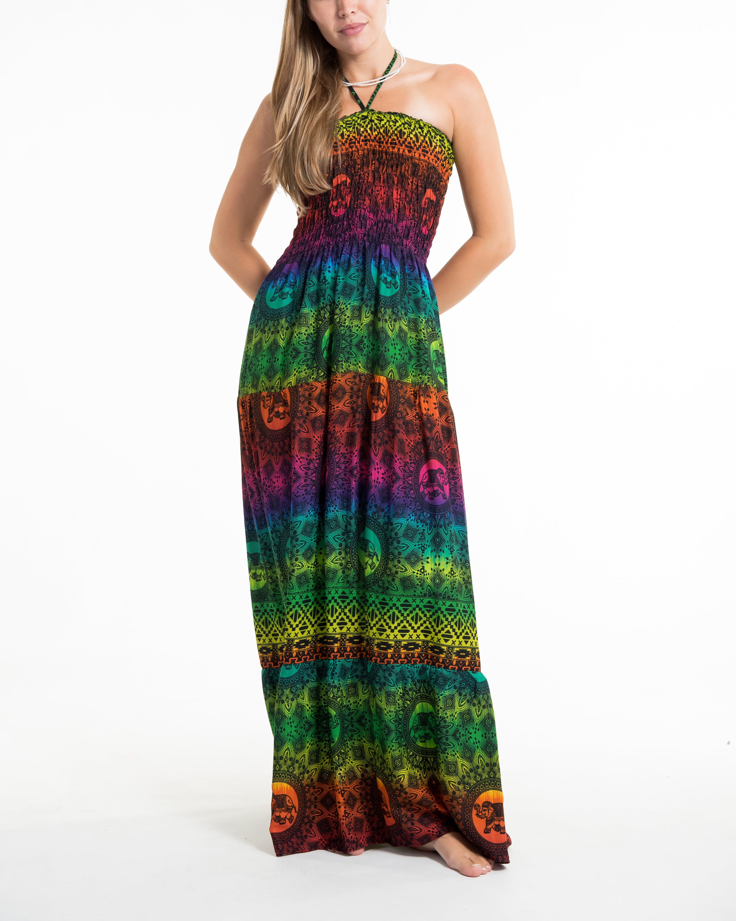 Have a beautiful look with our bohemian design bandeau dress with a smocked top and removable halter straps, made with Thai rayon fabric – best for summer beach time from sunbathing to sightseeing.