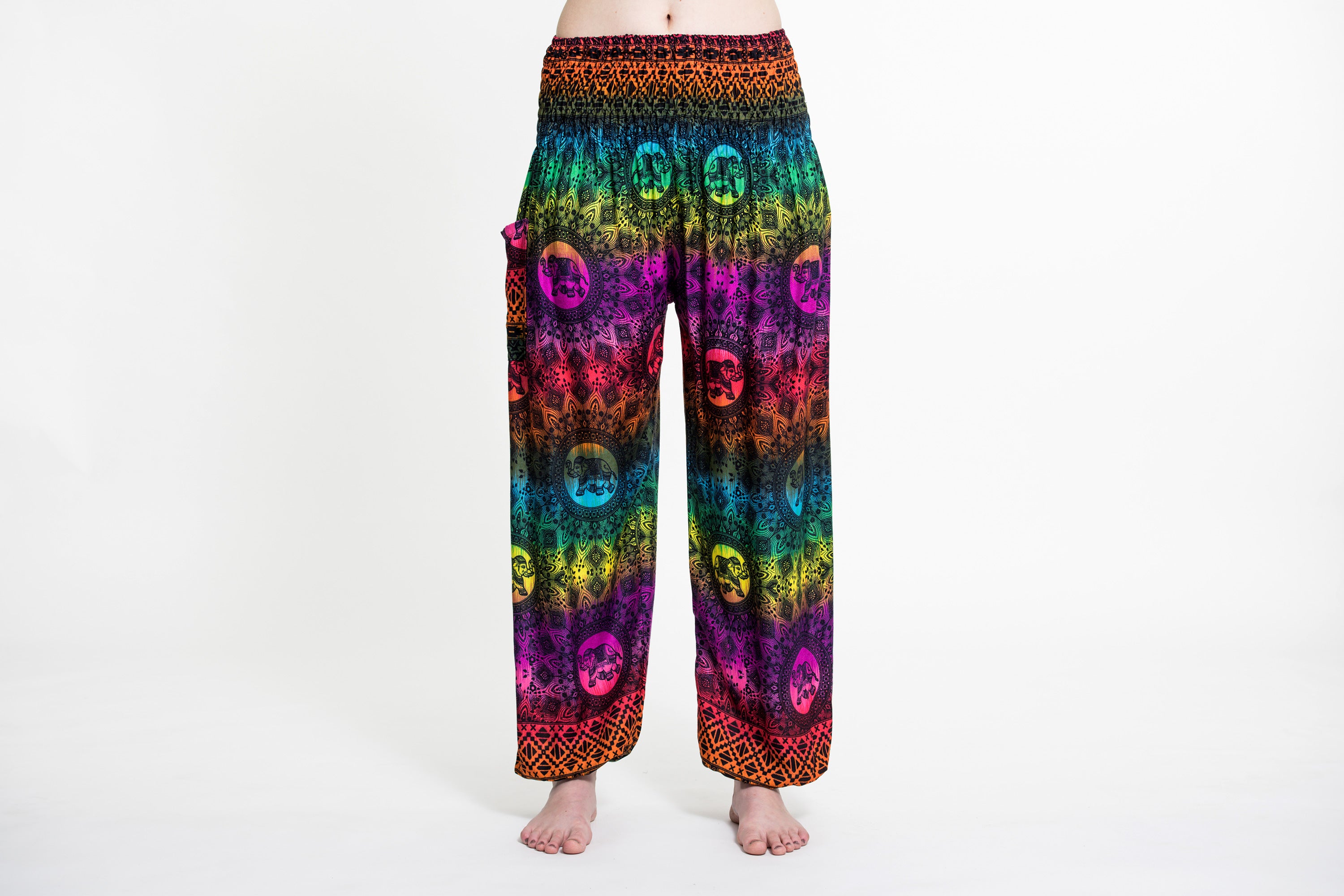 Super soft and lightweight Rainbow Elephant Elephant Pants made with Thai rayon fabric.
