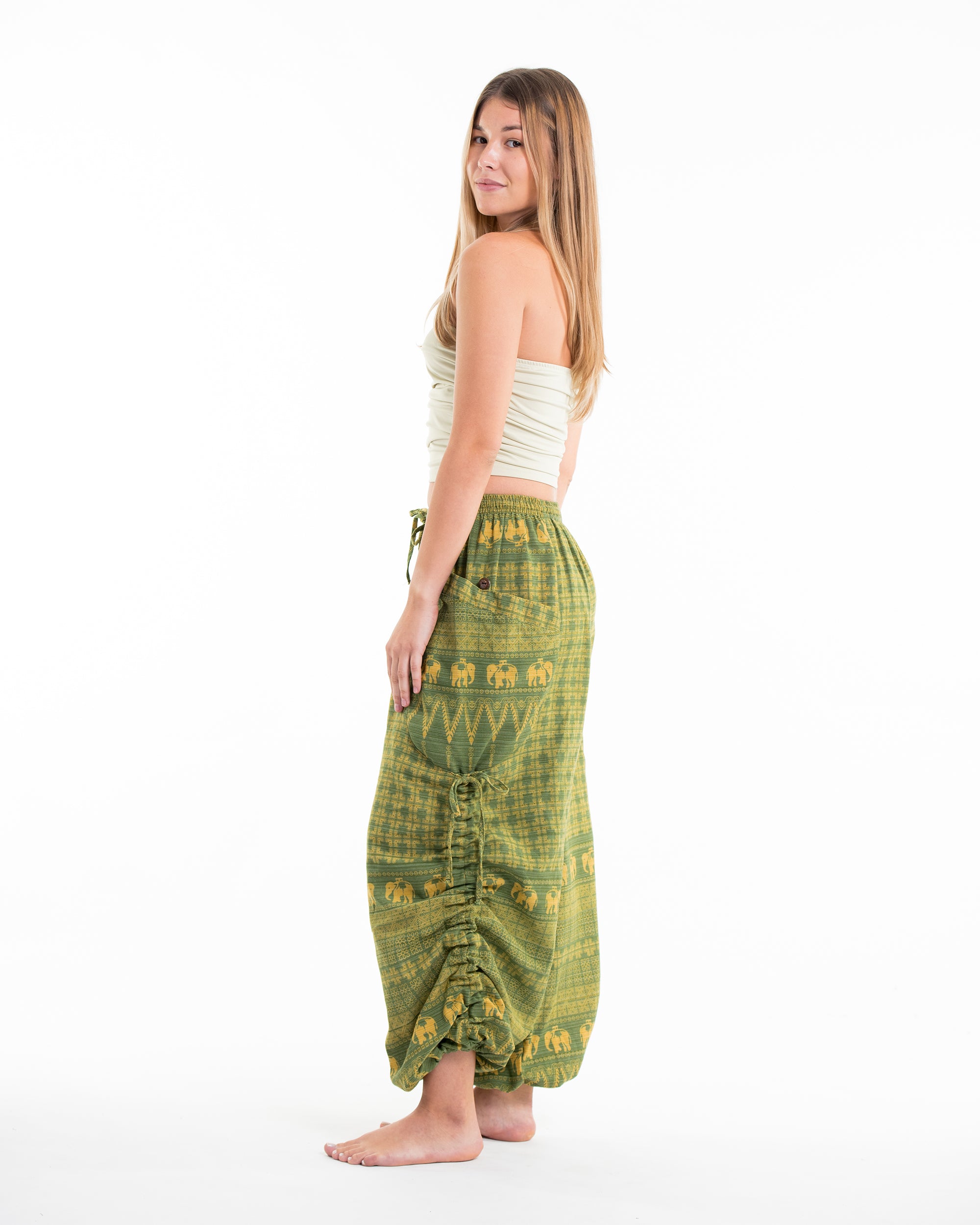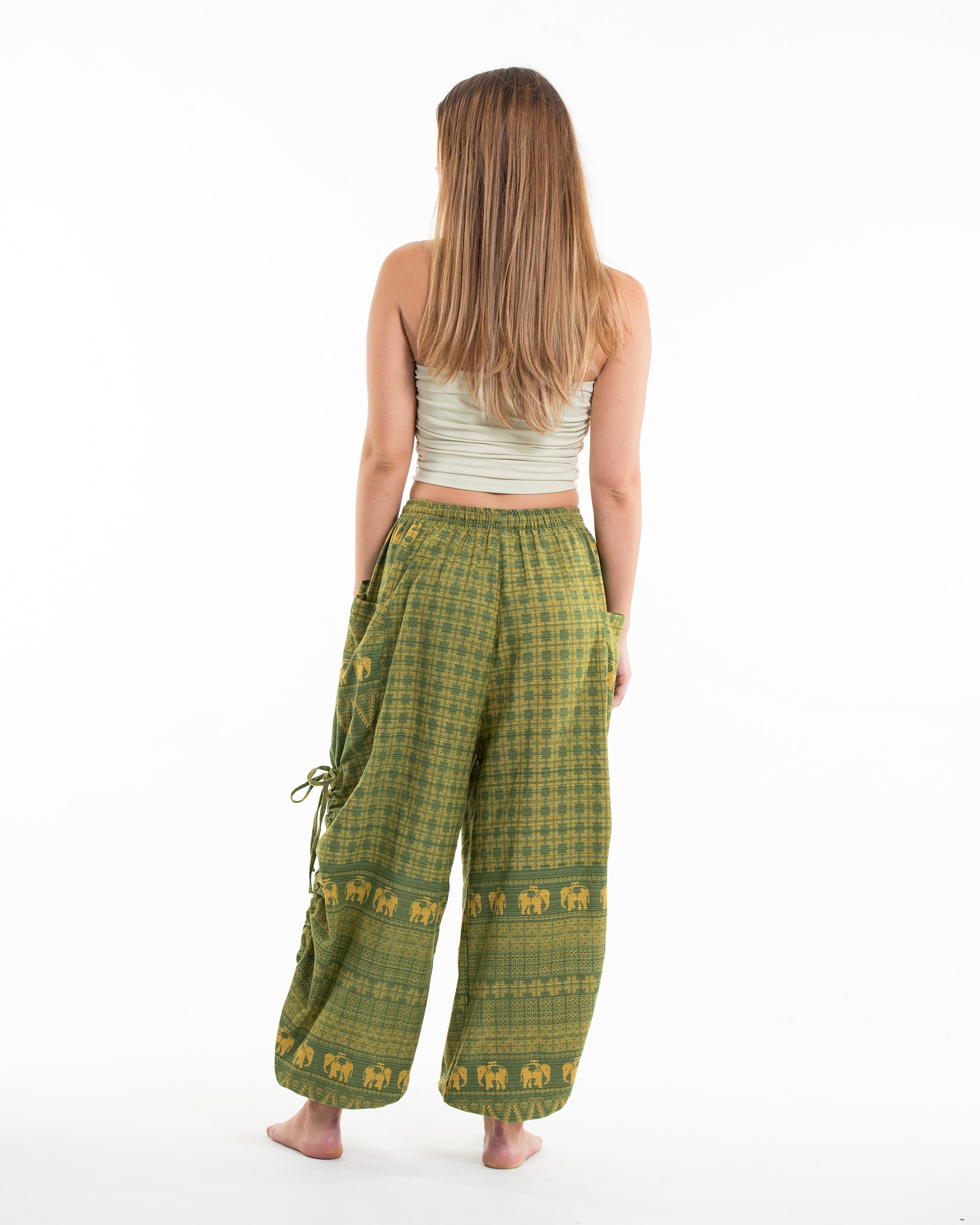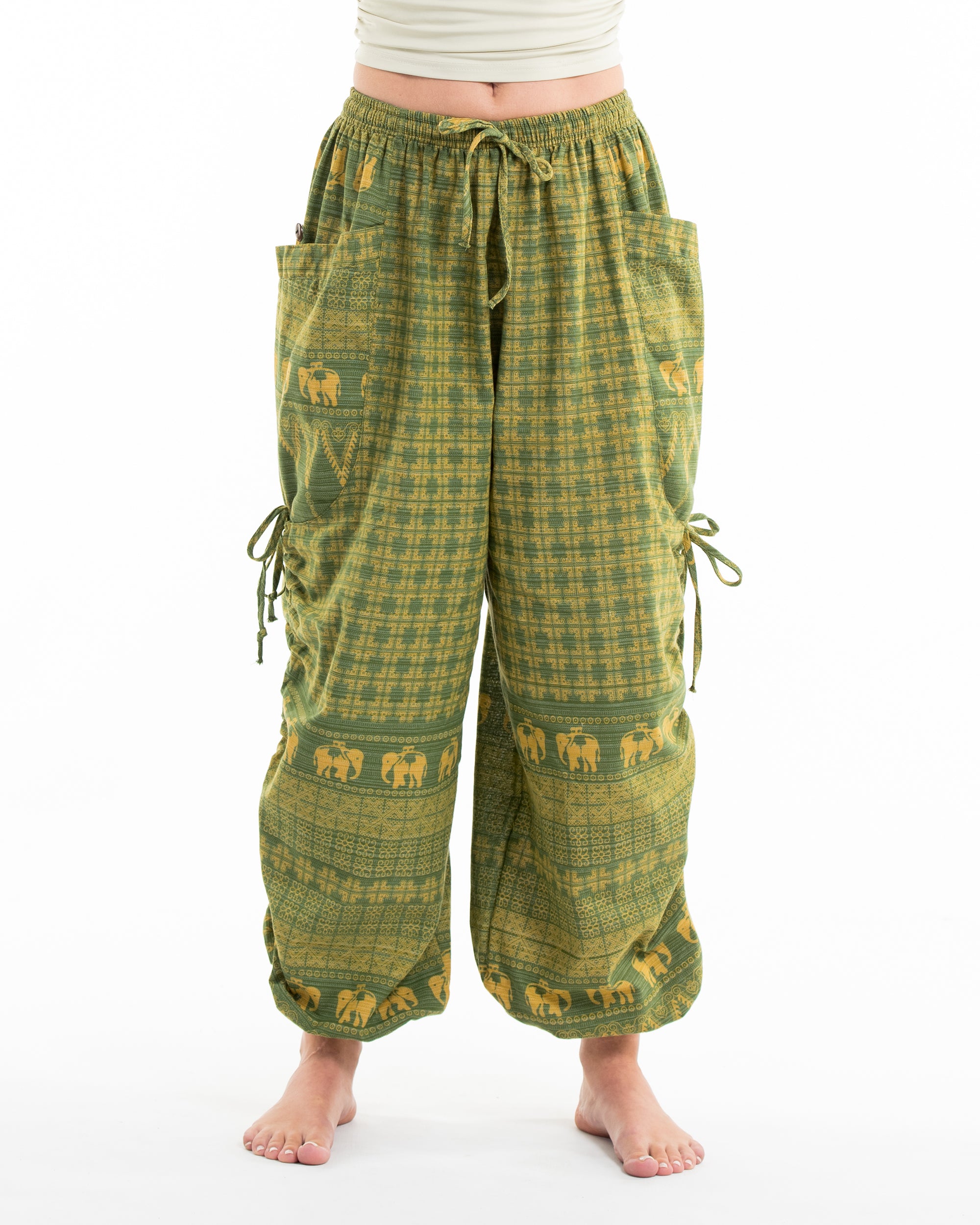 Women's Hill Tribe Cotton Elephant Pants in Green