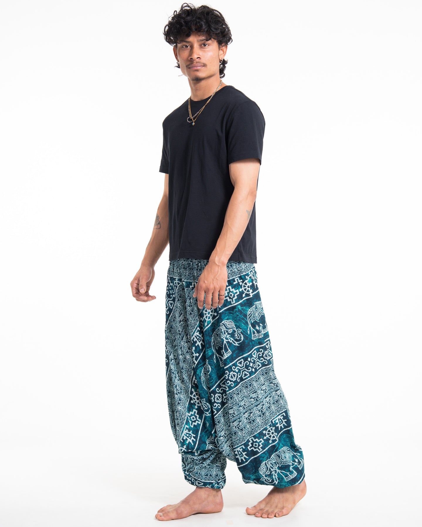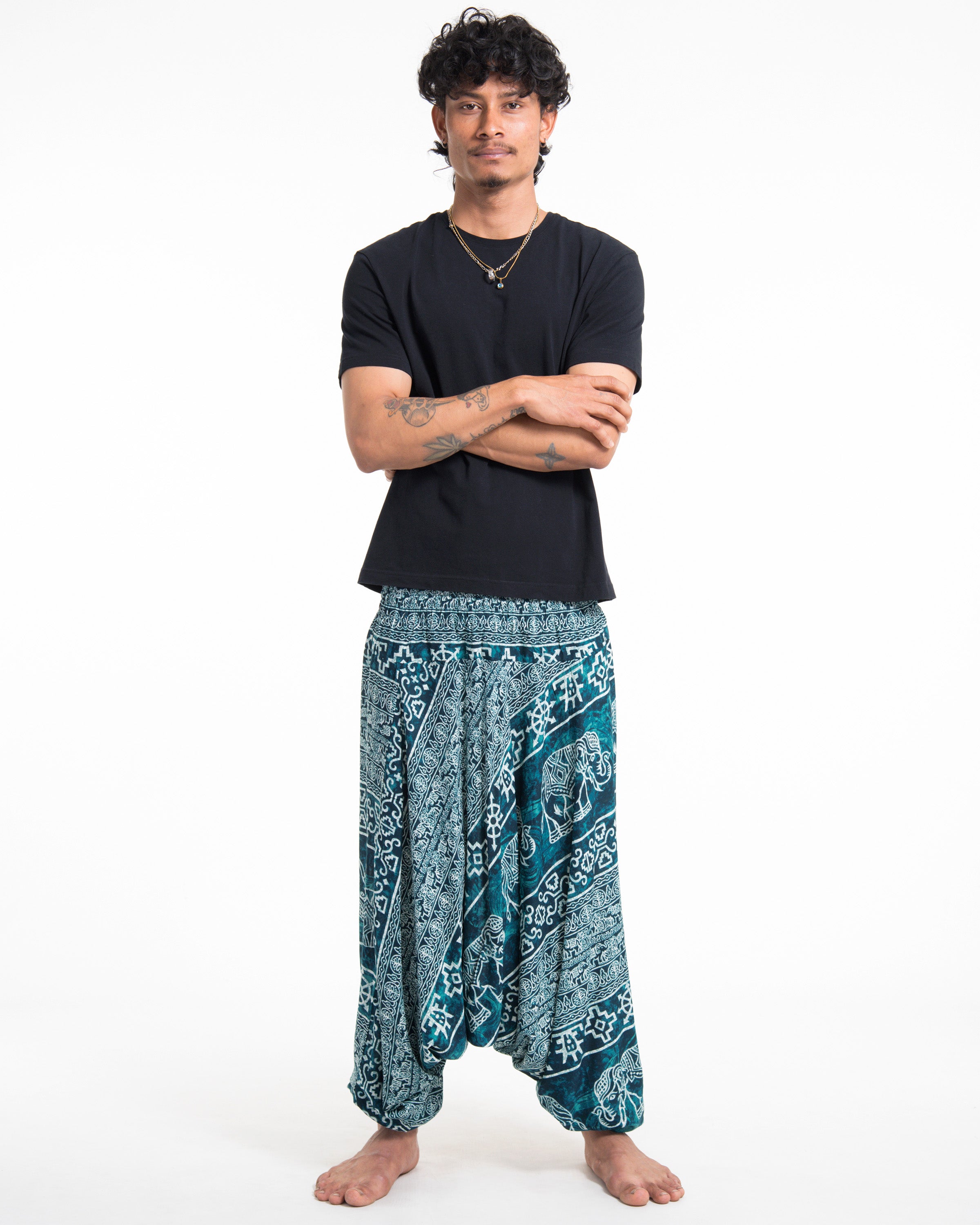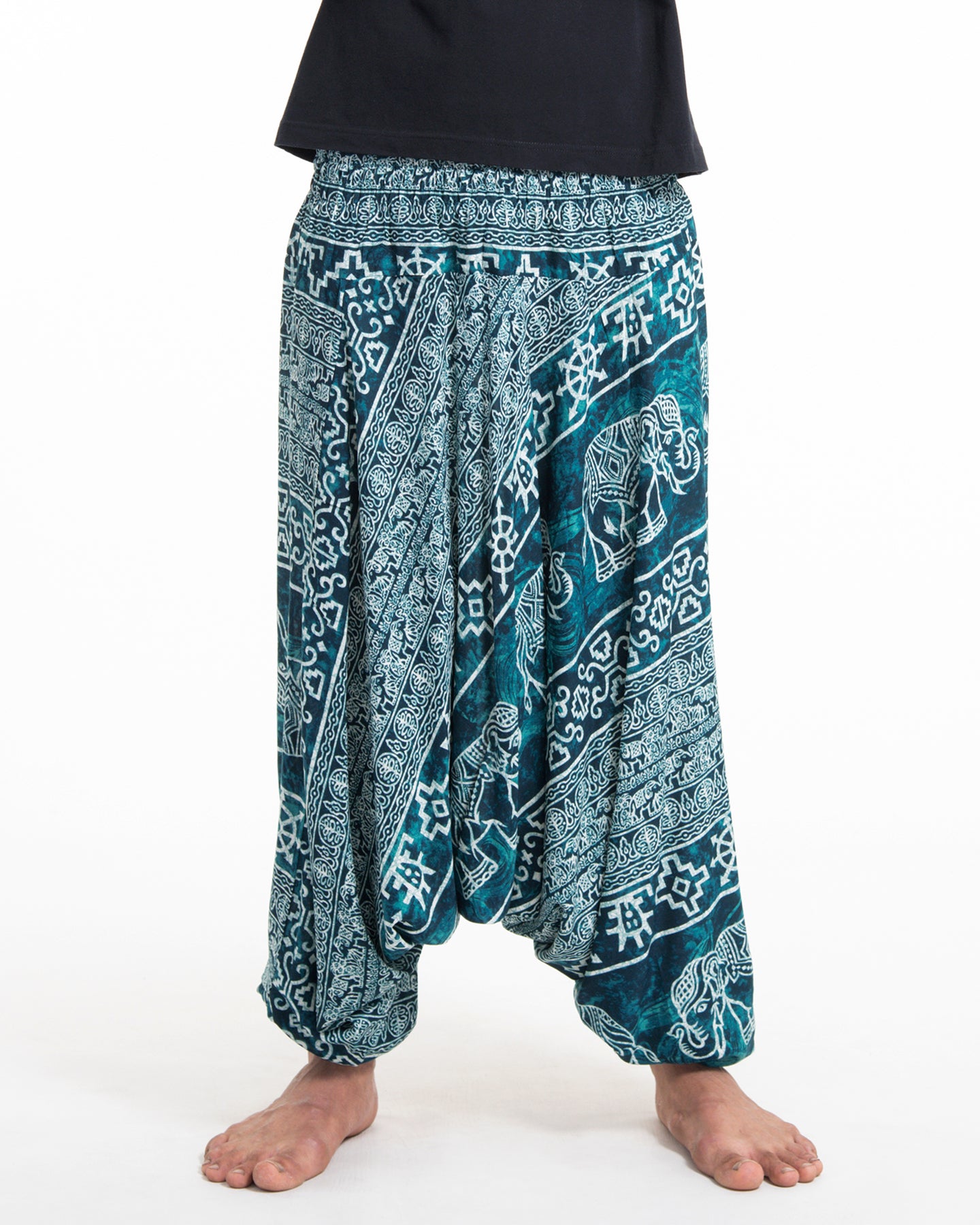 Marble Elephant Drop Crotch Men's Elephant Pants in Turquoise