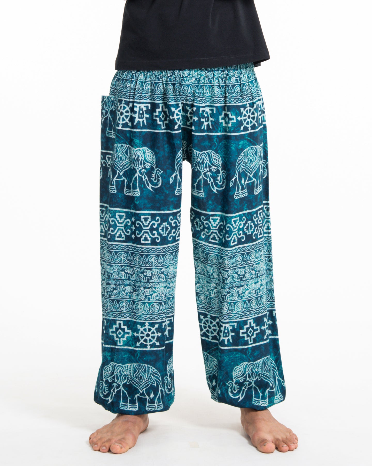 All these high cut gender neutral Elephant Pants have comfy smocked waist and one side-pocket.