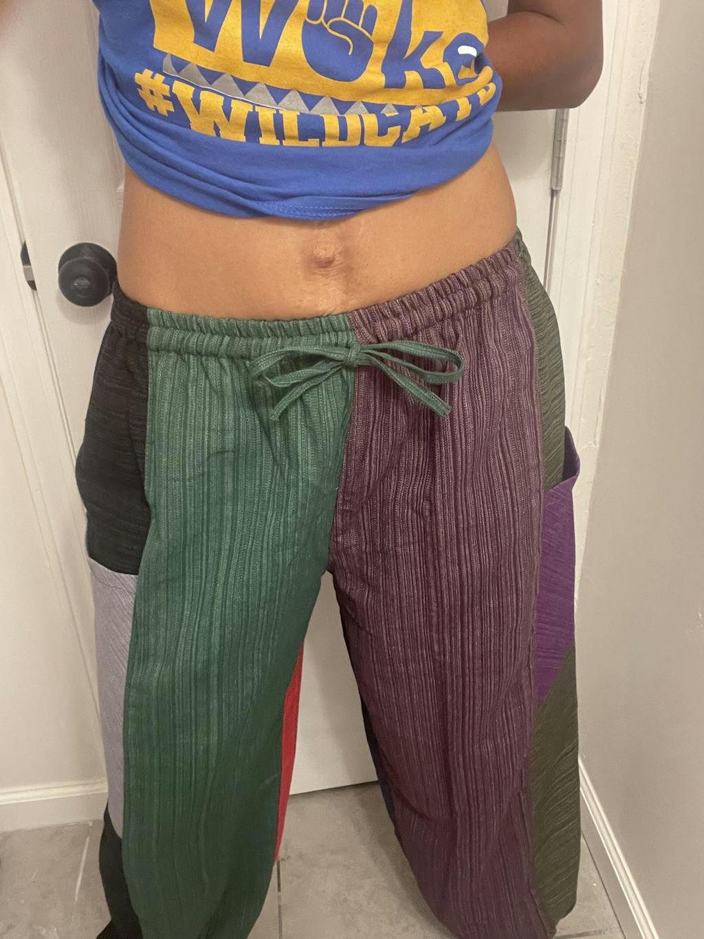 The waist elastic actually works for my waist, but everything else looks way too big. I am 5’3 and 110 lbs., and they swallow me. The legs are wider than I thought, and I will have to hem the bottoms. I do like the fabric and color. The legs are just so wide.