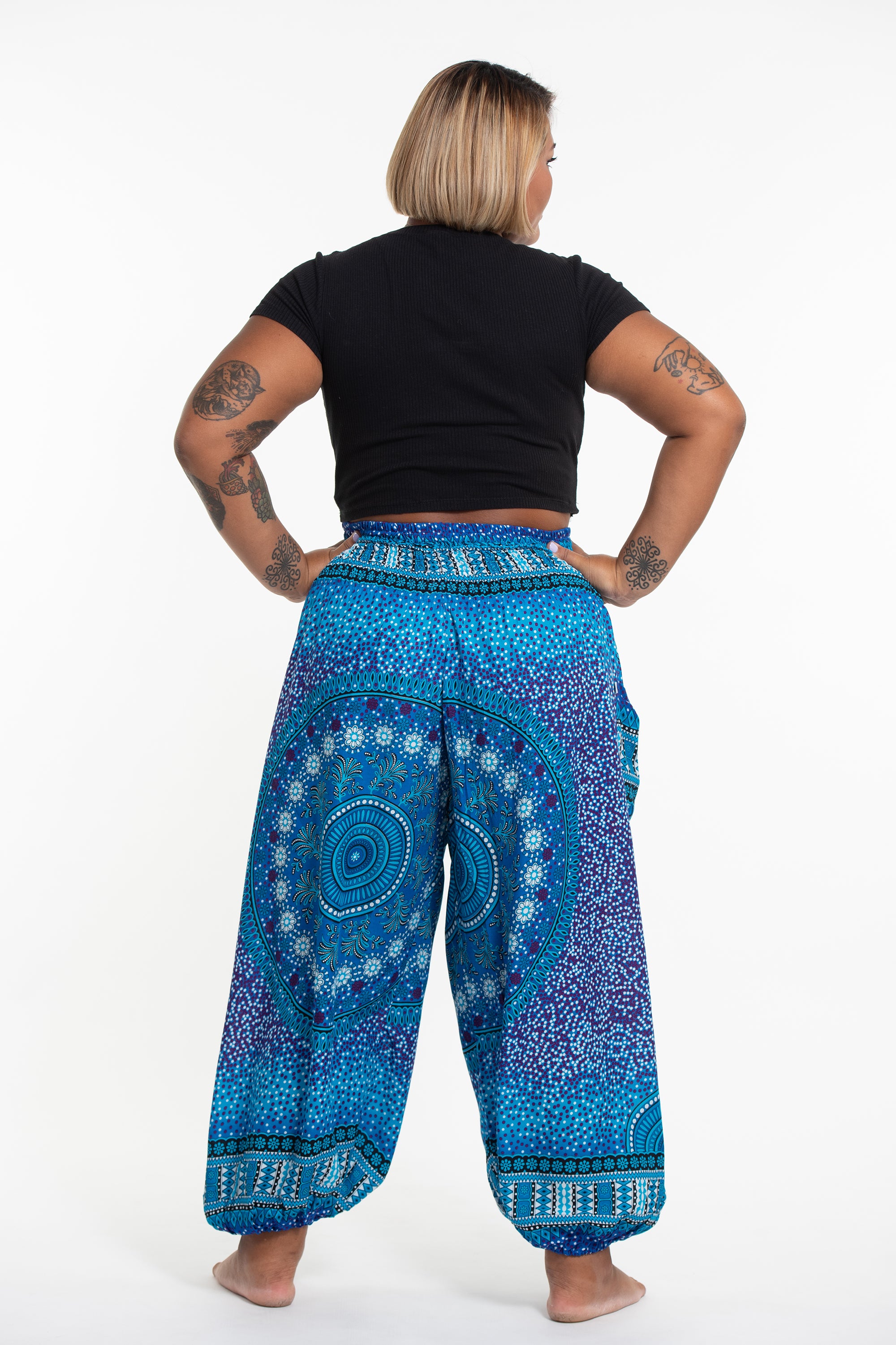 Plus Size Tribal Chakras Women's Harem Pants in Blue