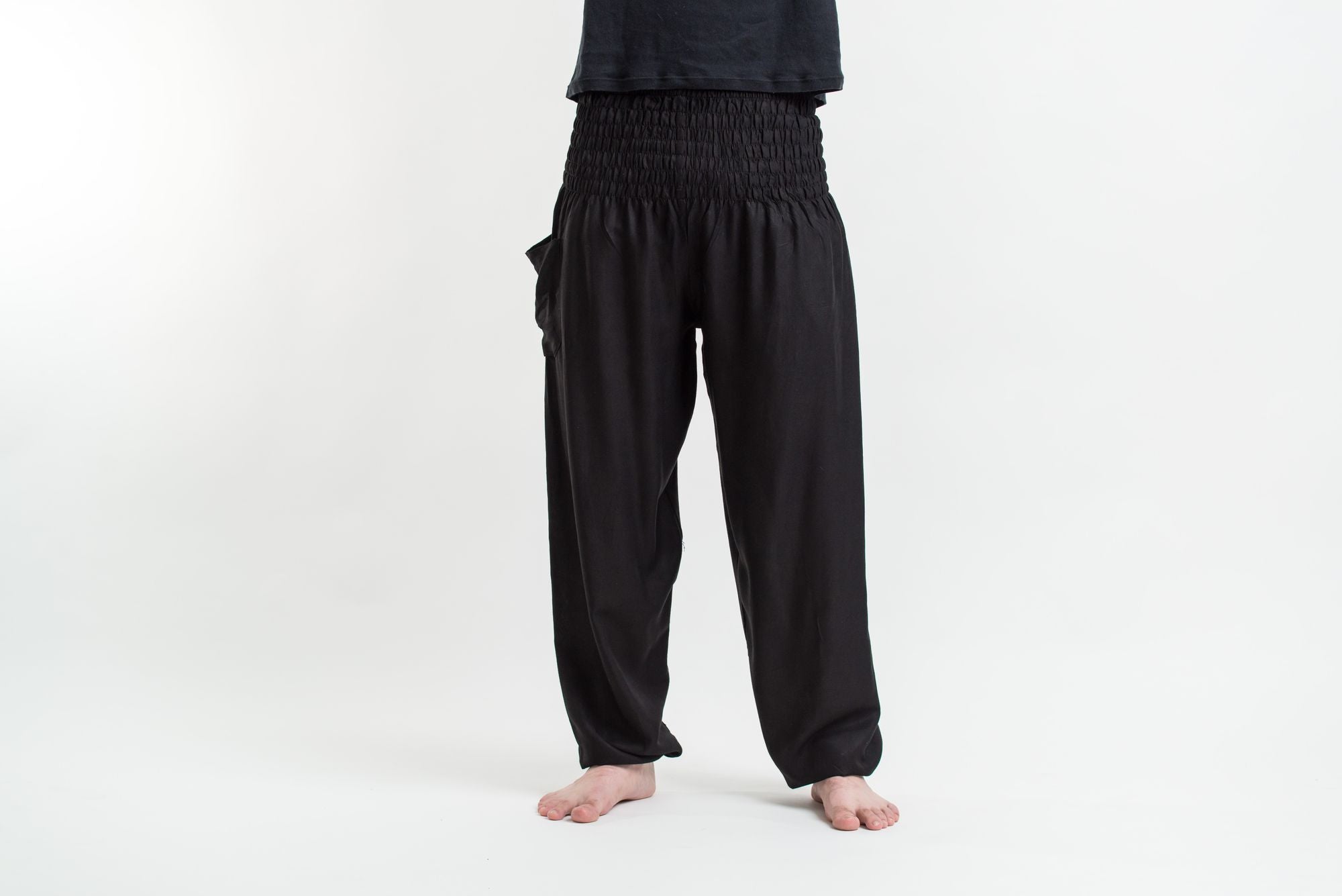 All these high cut gender neutral harem pants have comfy smocked waist and one side-pocket.