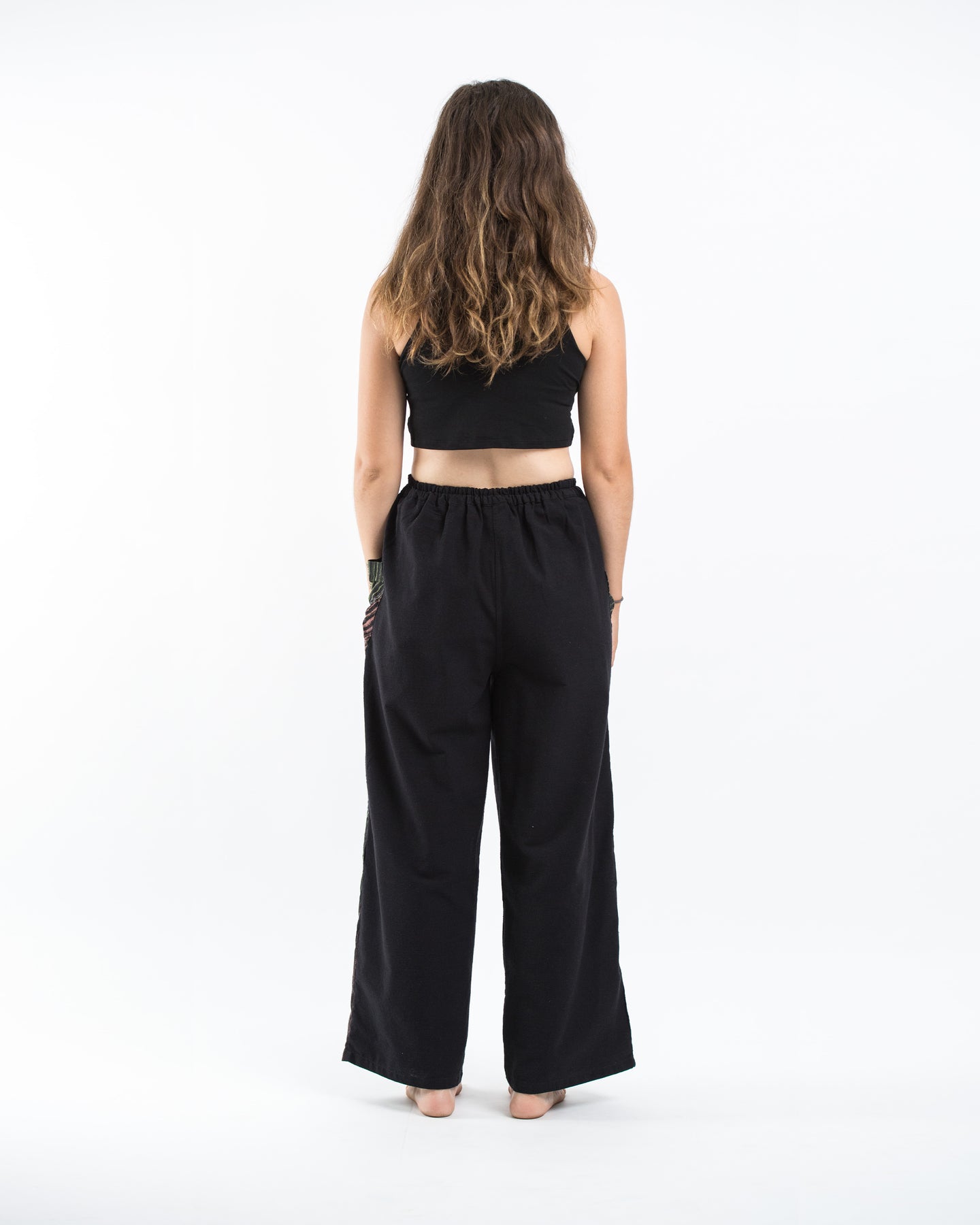 Thai Cotton Women's Pants With Hill Tribe Trim in Black