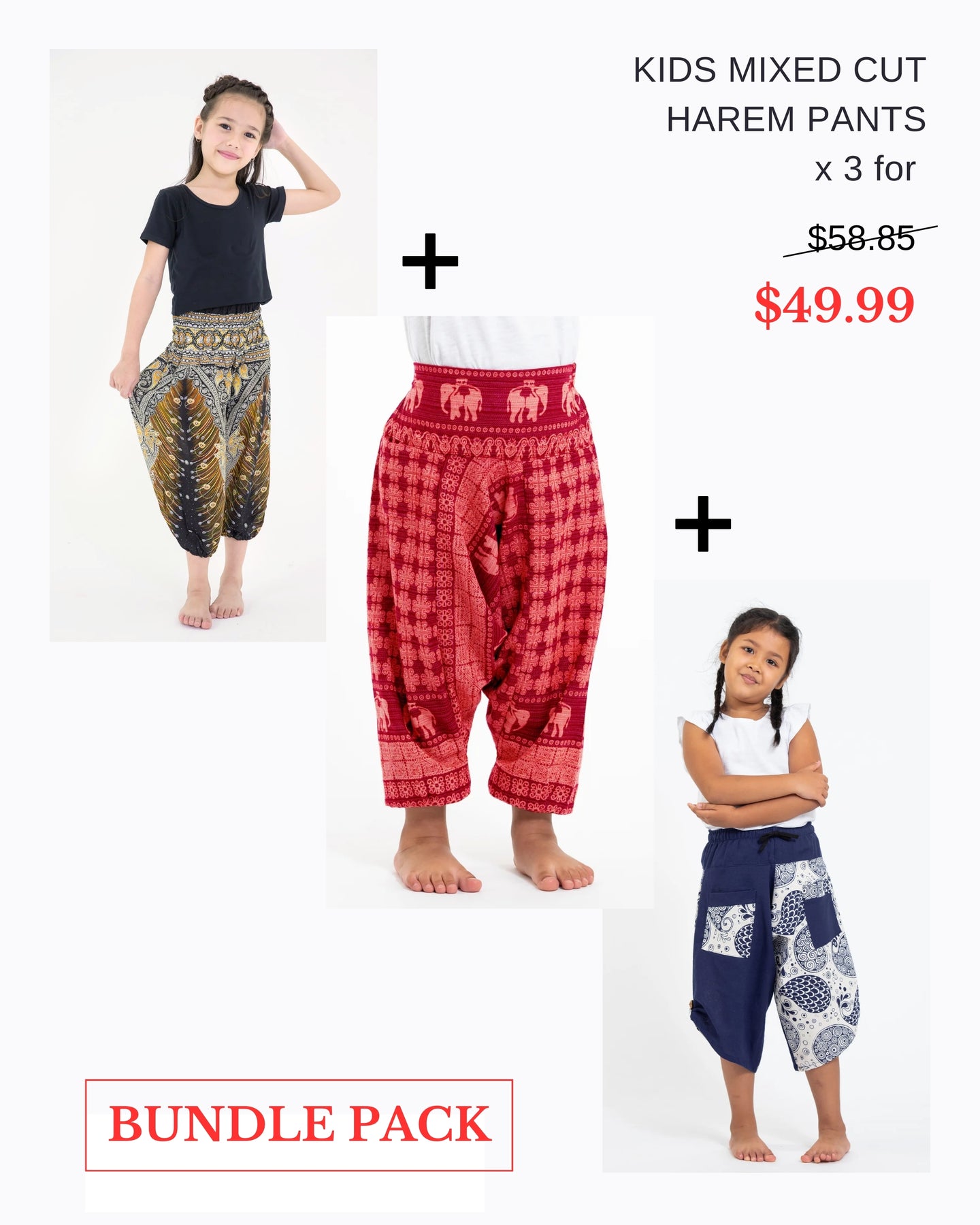 Pack of 3 - Kids Unisex Mixed Cut Harem Pants 04