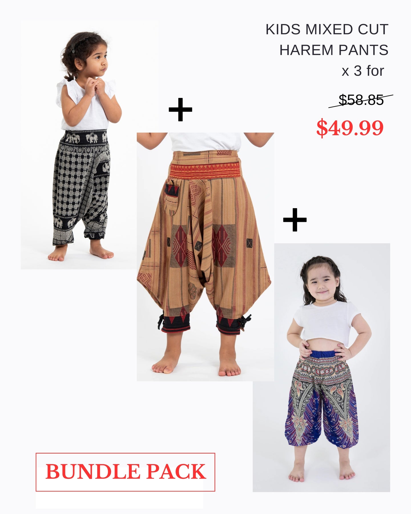 Pack of 3 - Kids Unisex Mixed Cut Harem Pants 05