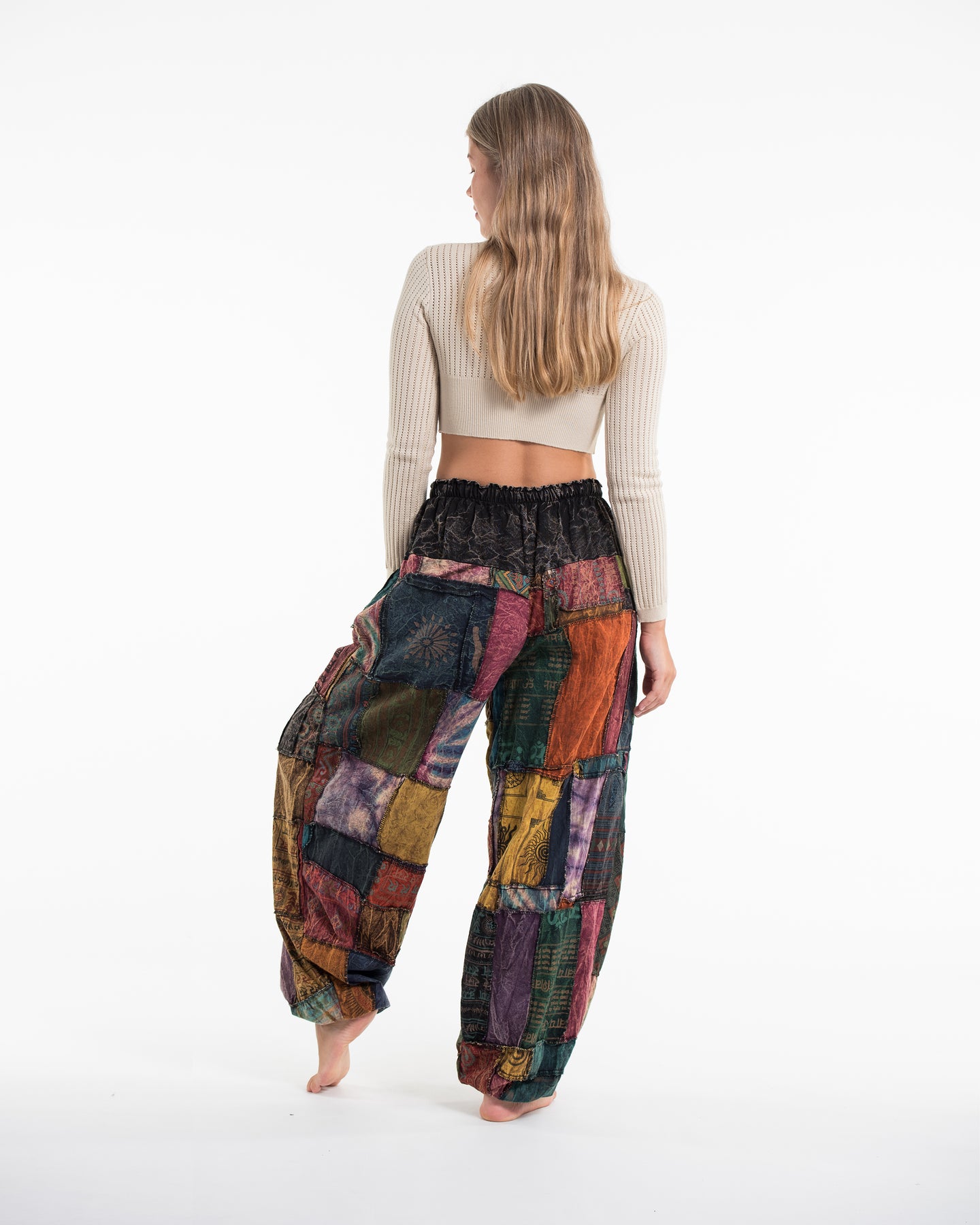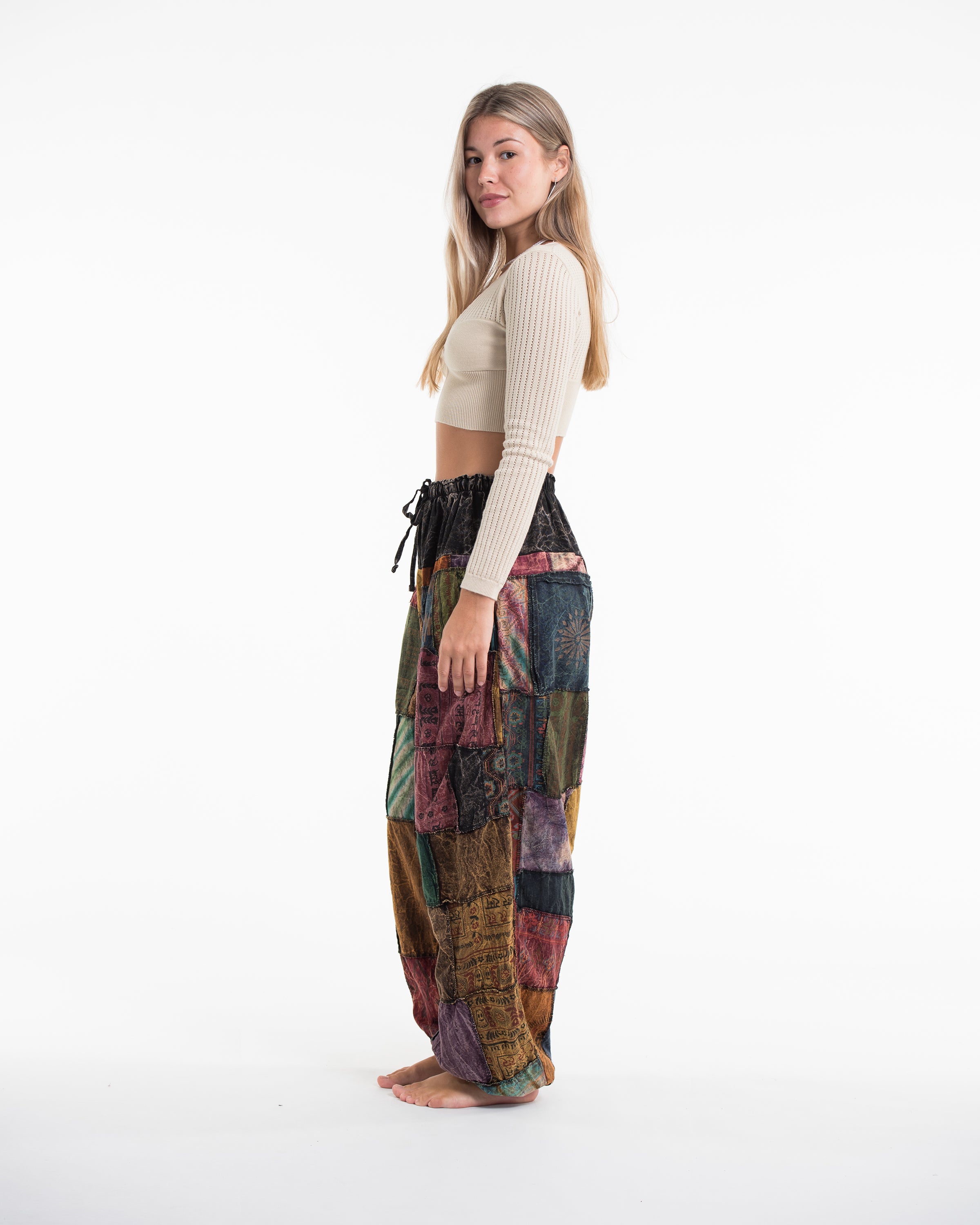 Step into ultimate comfort and creativity with these genie-style patchwork pants. Each pair is handcrafted from stonewashed cotton patches featuring traditional patterns and colorful tones. With a voluminous silhouette and elasticated ankles, they bring freedom of movement and laid-back vibes to any outfit.