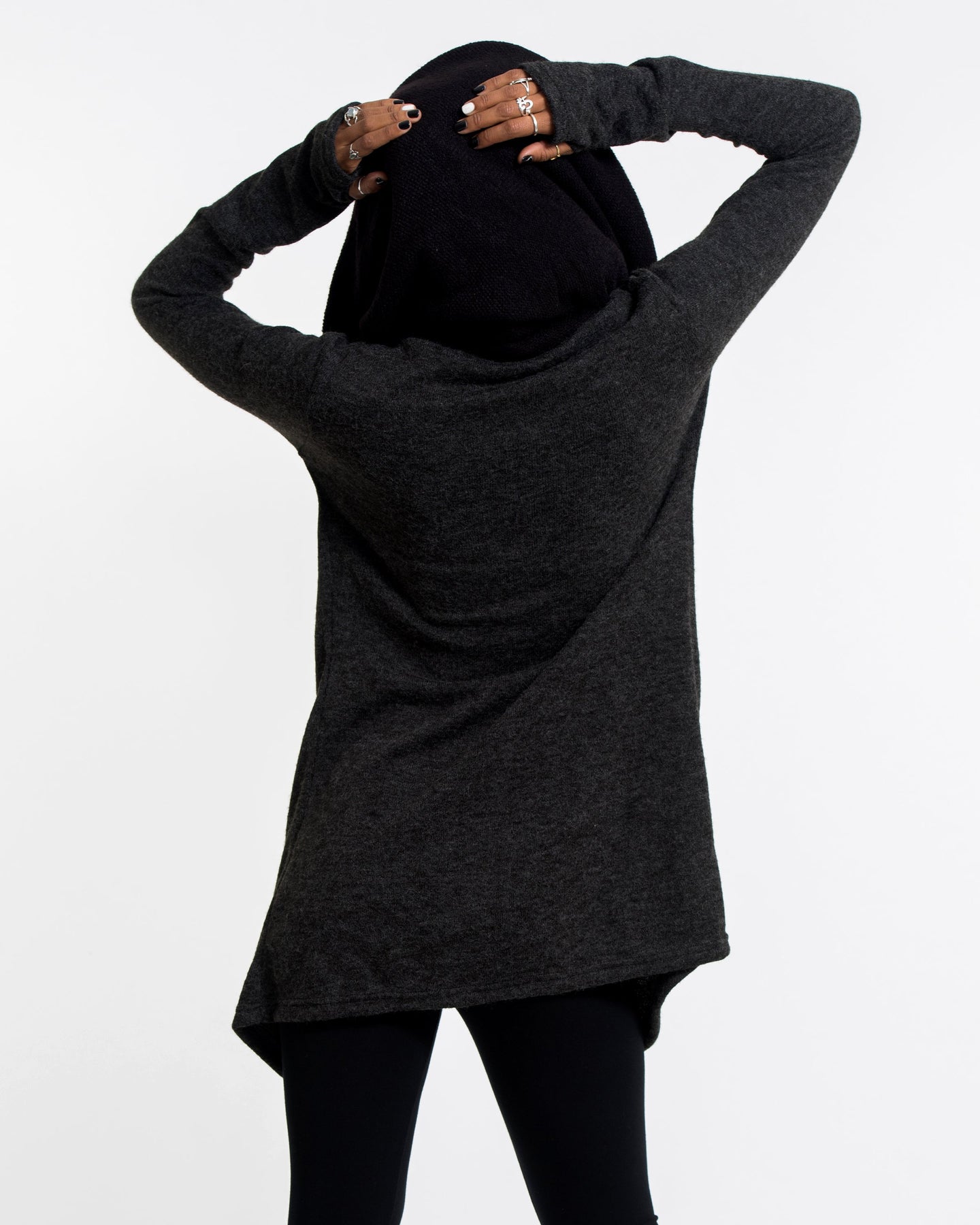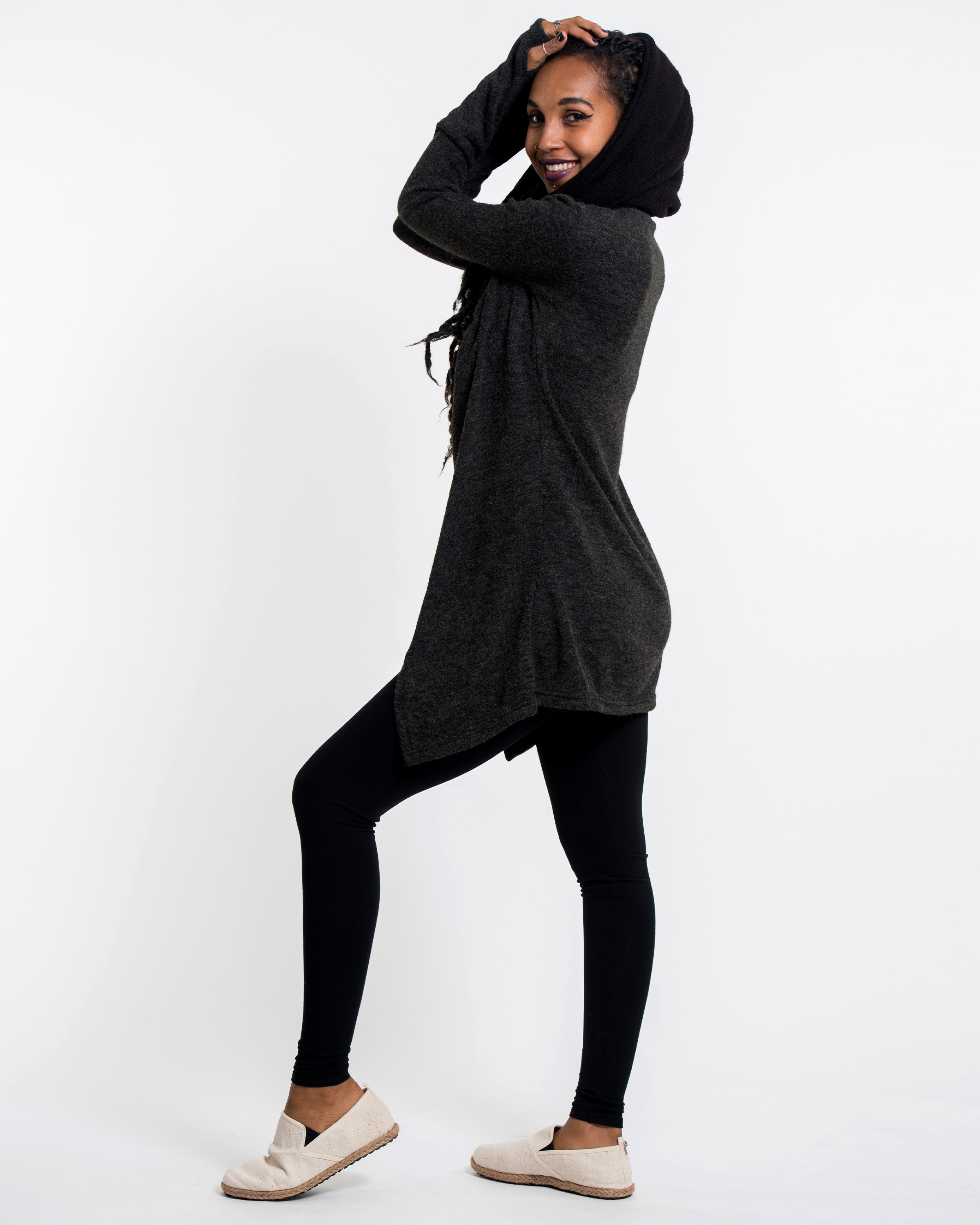 Hoodie Shawl Jacket with Metal Clasp in Black