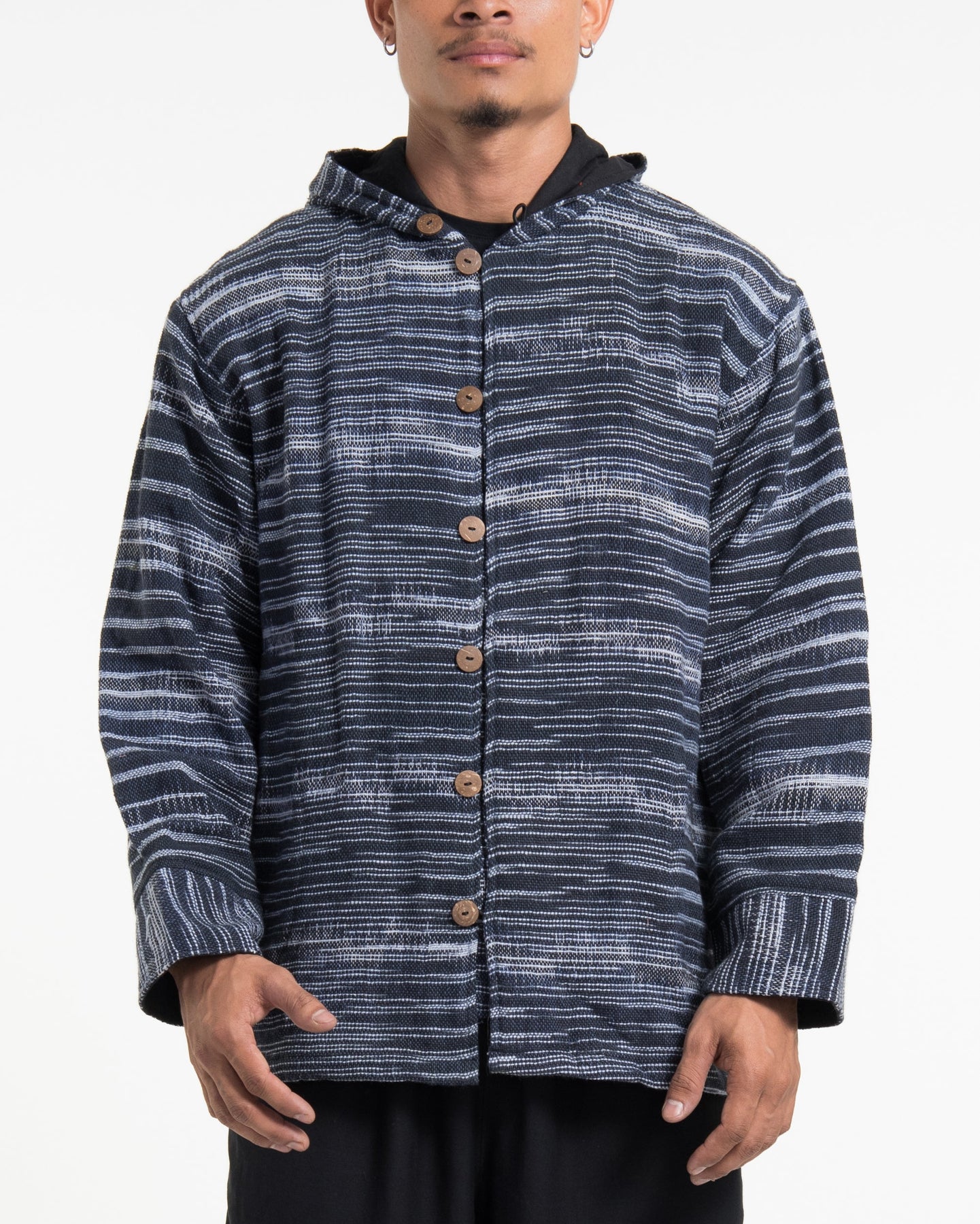 Exclusive light hooded button up jacket made with Thai hand-woven cotton.