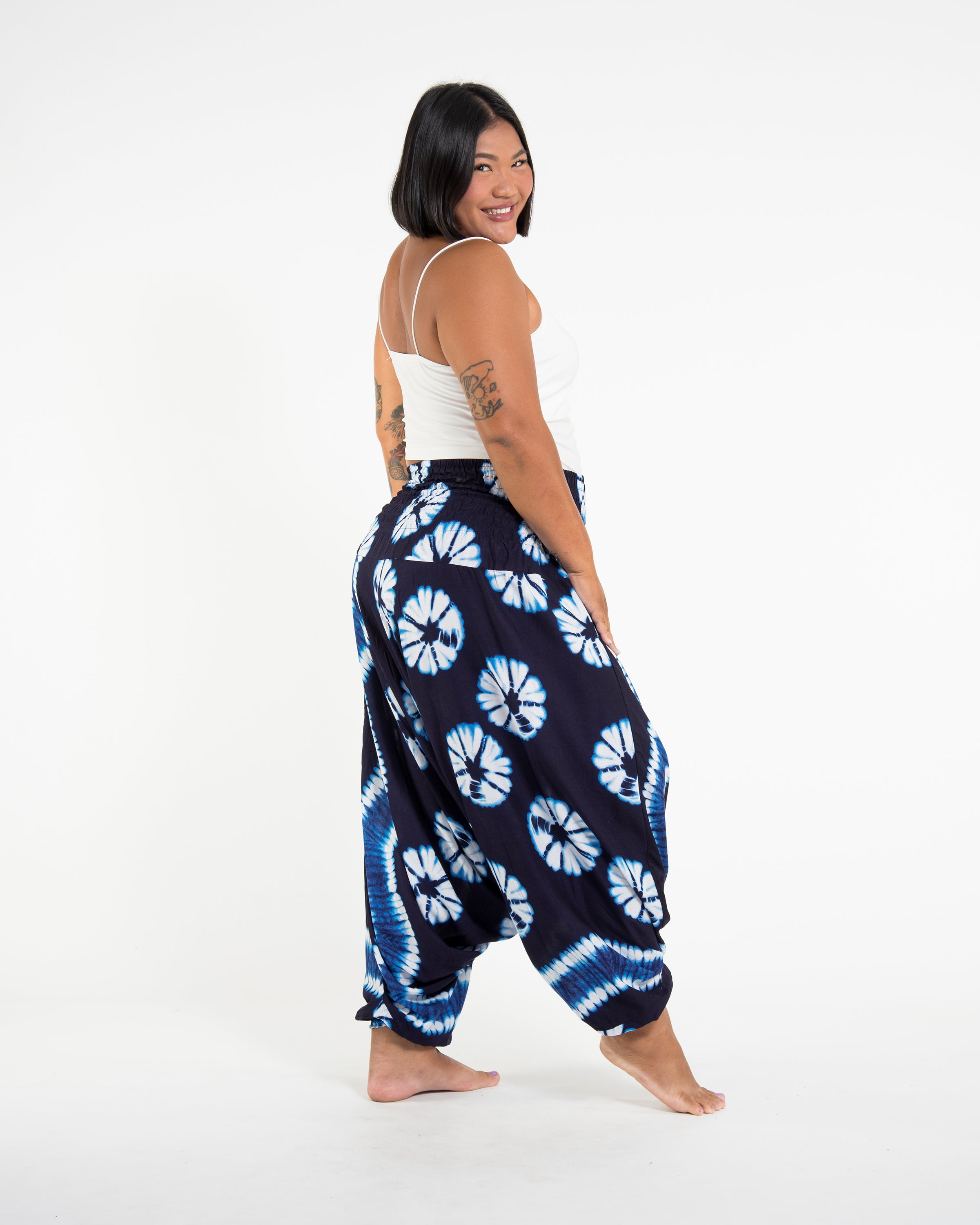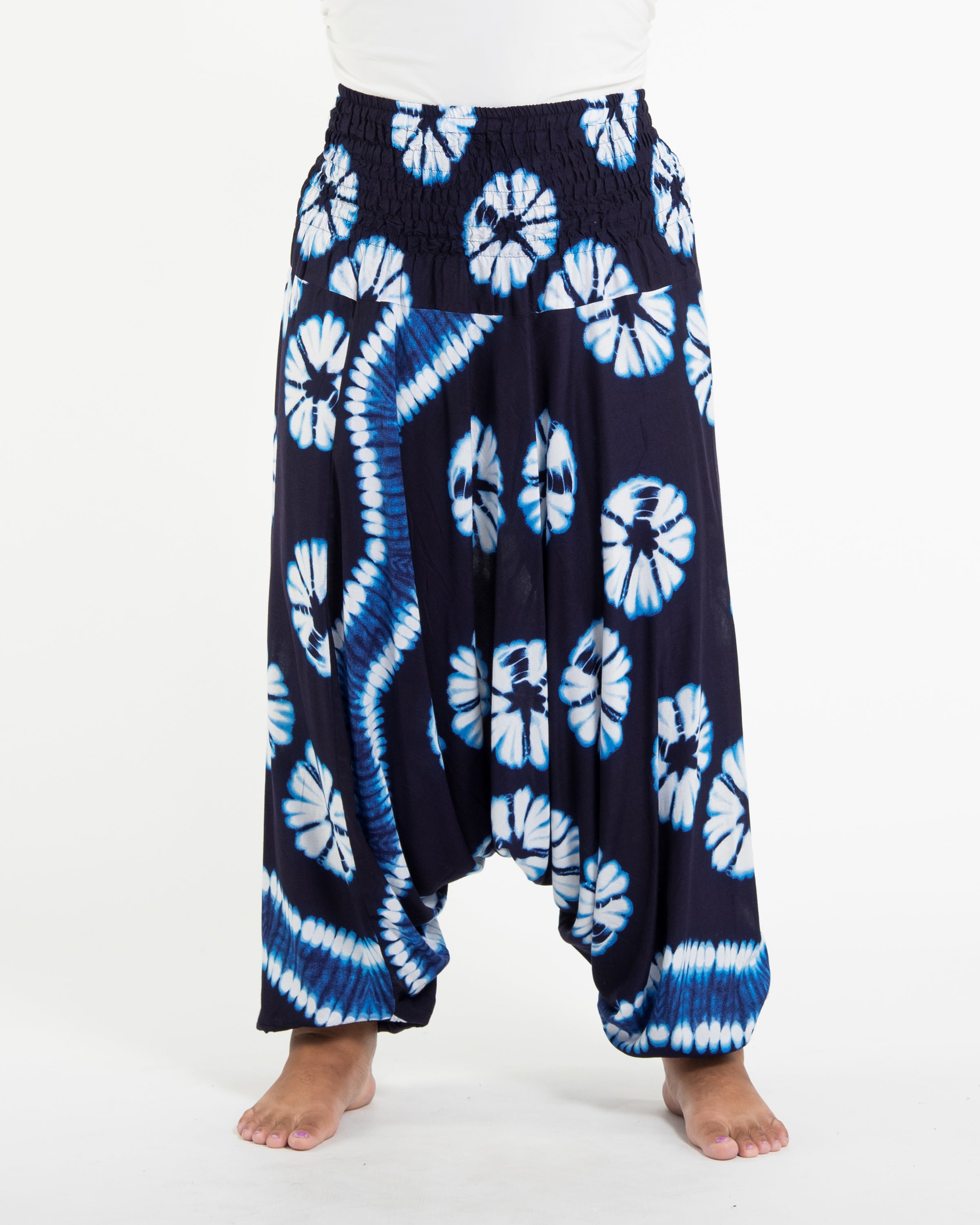 Plus Size Tie Dye 2-in-1 Jumpsuit Harem Pants in Indigo