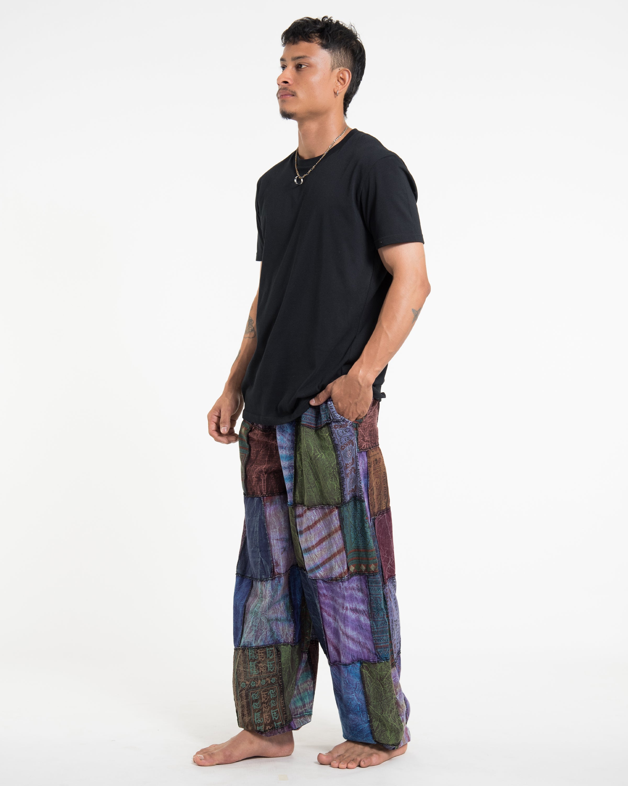 Men's Patchwork Stone Washed Balloon Cotton Pants in Purple