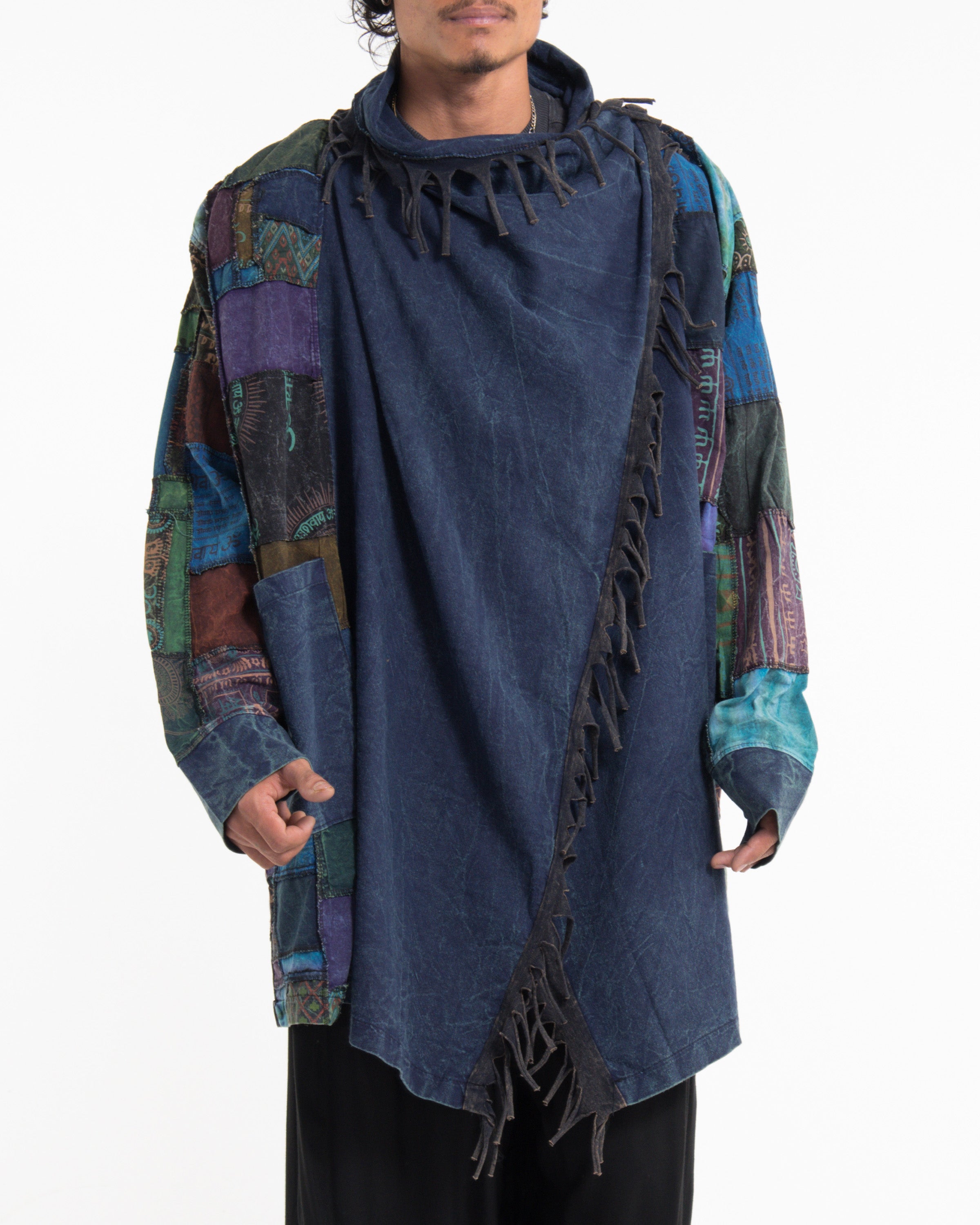 Patchwork Cloak Jacket | Stonewash Drape in Blue